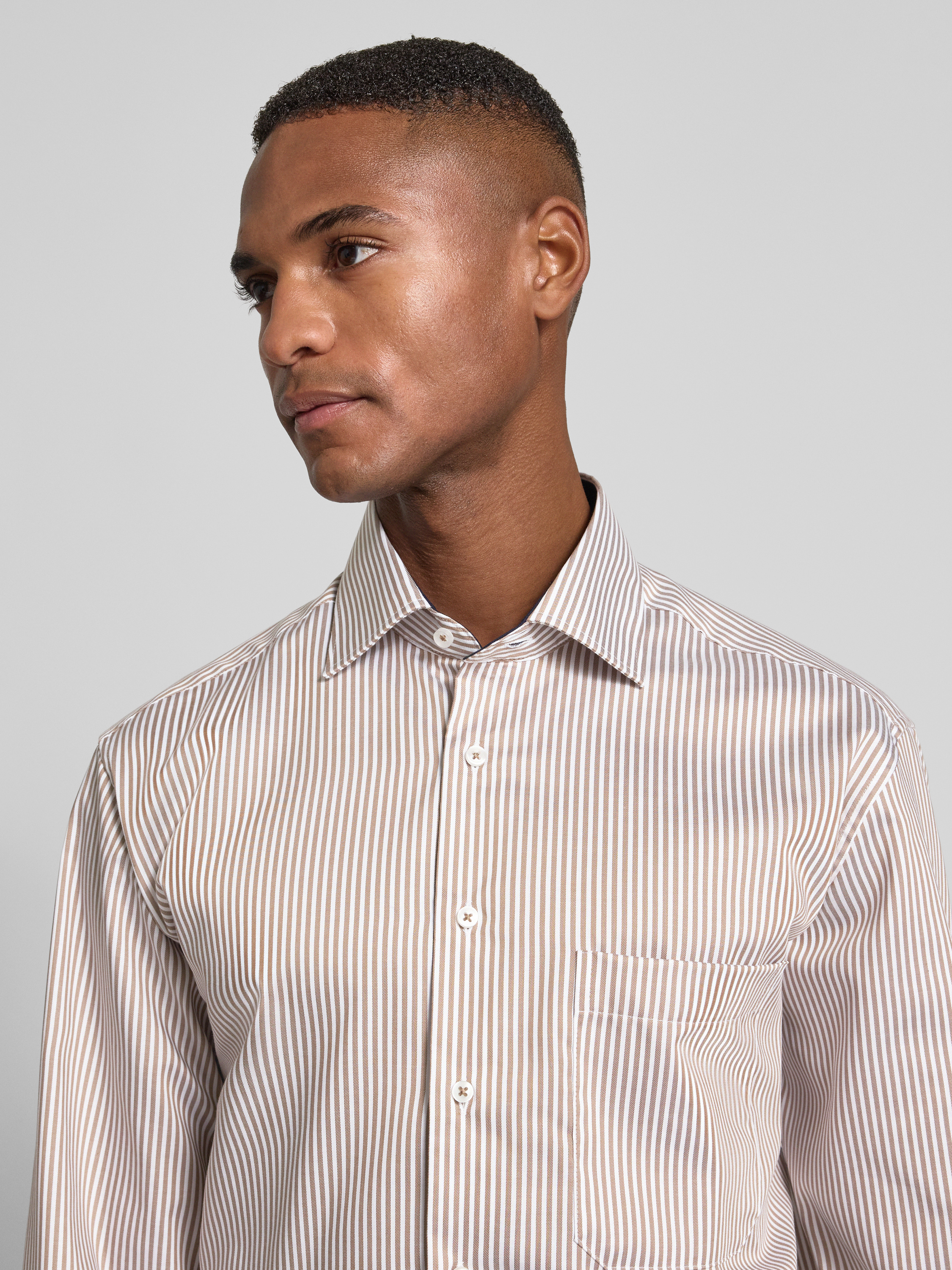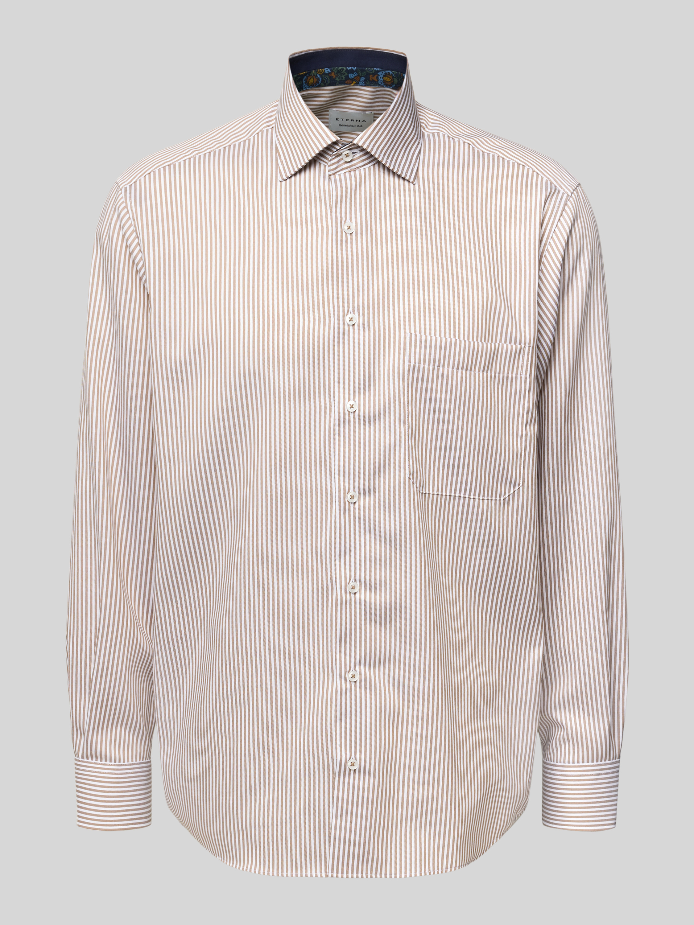 Das Herren Businesshemd von ETERNA aus reiner Baumwolle zeichnet sich durch einen angenehm weiten Comfort Fit aus, der Bewegungsfreiheit im Alltag ermöglicht. Der klassische Kentkragen und die praktische Knopfleiste sorgen für einen gepflegten Look, während die Brusttasche kleine Dinge griffbereit hält. Durch den lockeren Schnitt eignet sich das Hemd für vielfältige Situationen und bietet angenehmen Tragekomfort.