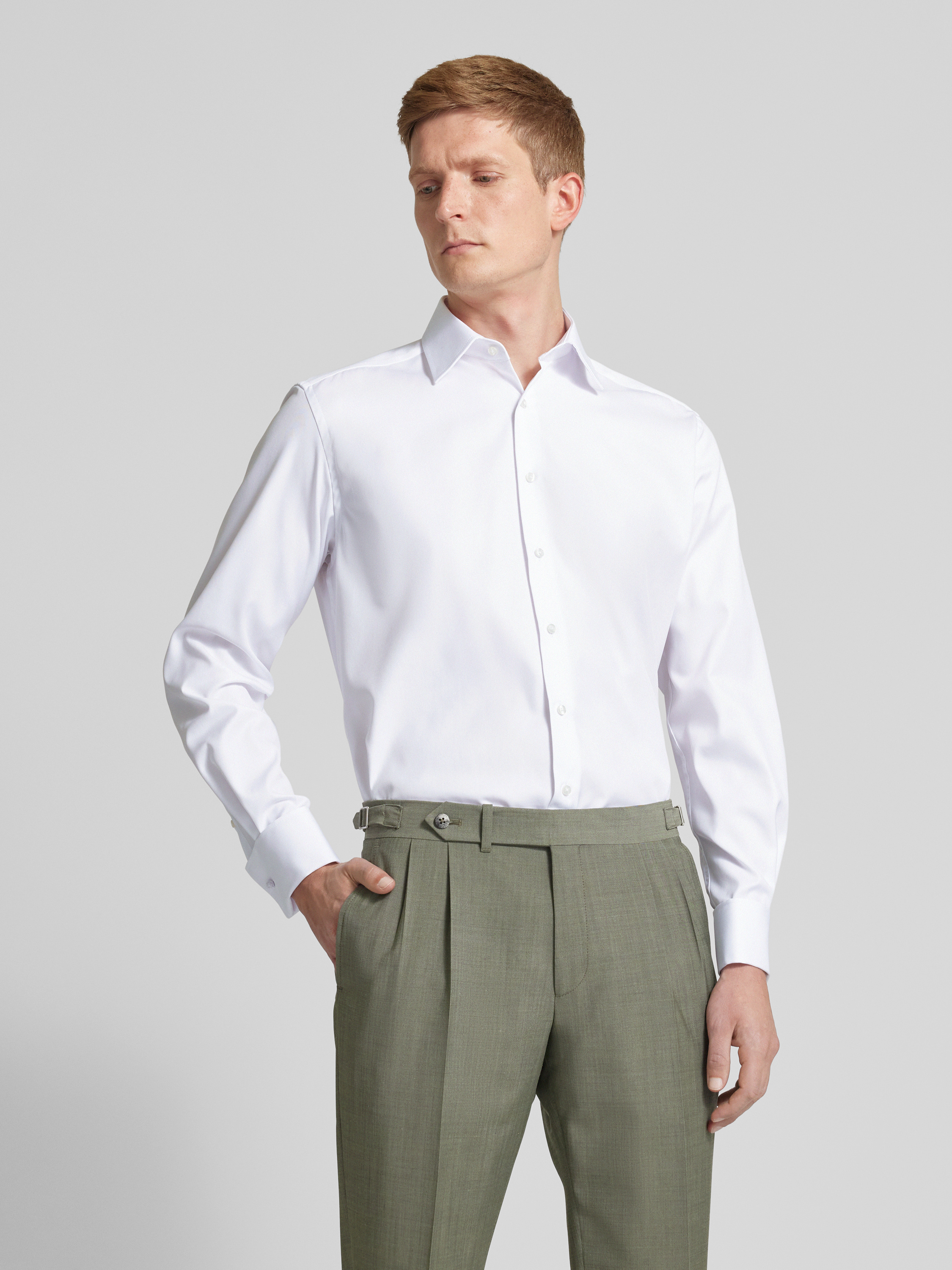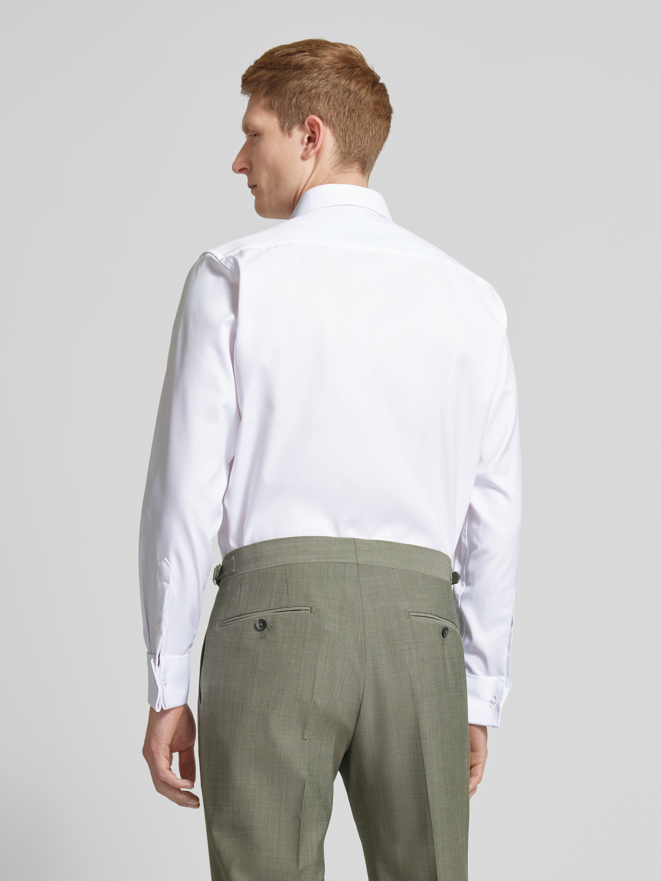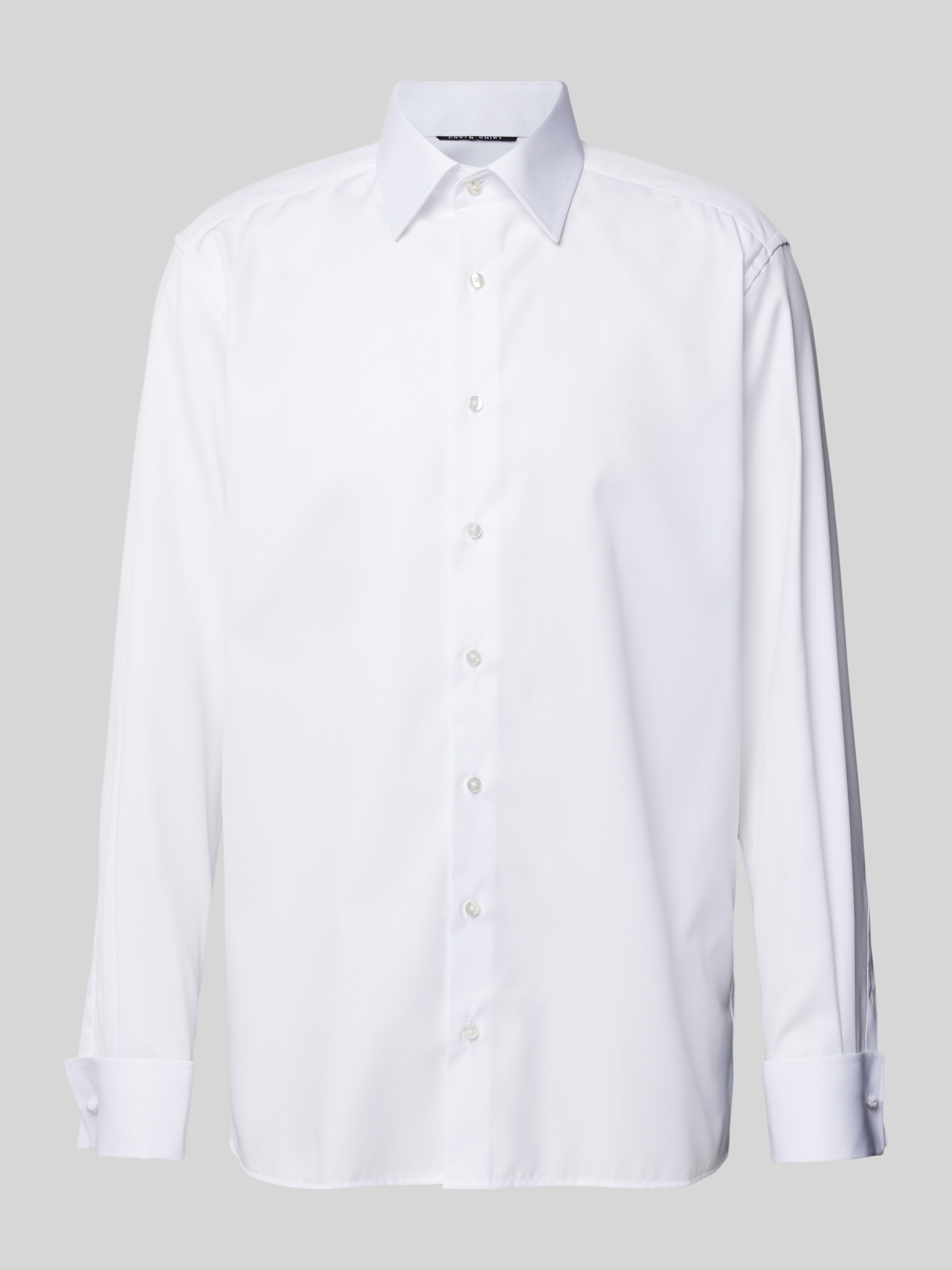 Das ETERNA Comfort Fit Smokinghemd aus Twill eignet sich hervorragend für formelle Anlässe. Dank der reinen Baumwolle fühlt es sich angenehm auf der Haut an und bleibt bügelfrei stets gepflegt. Der Kentkragen und die Sportmanschetten verleihen dem Hemd einen klassischen Touch.