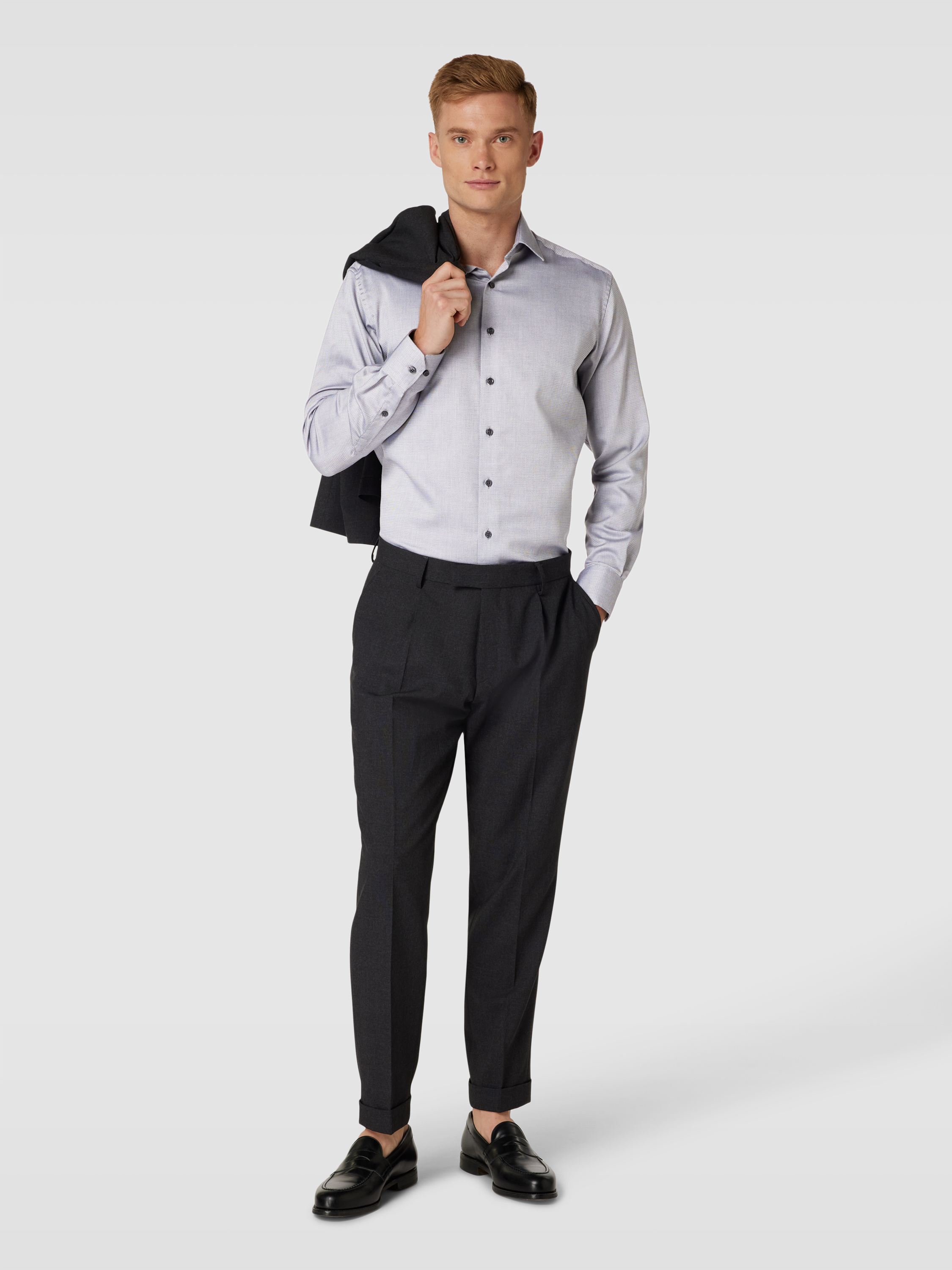 ETERNAModern Fit Business-Hemd mit Allover-Muster in anthrazit