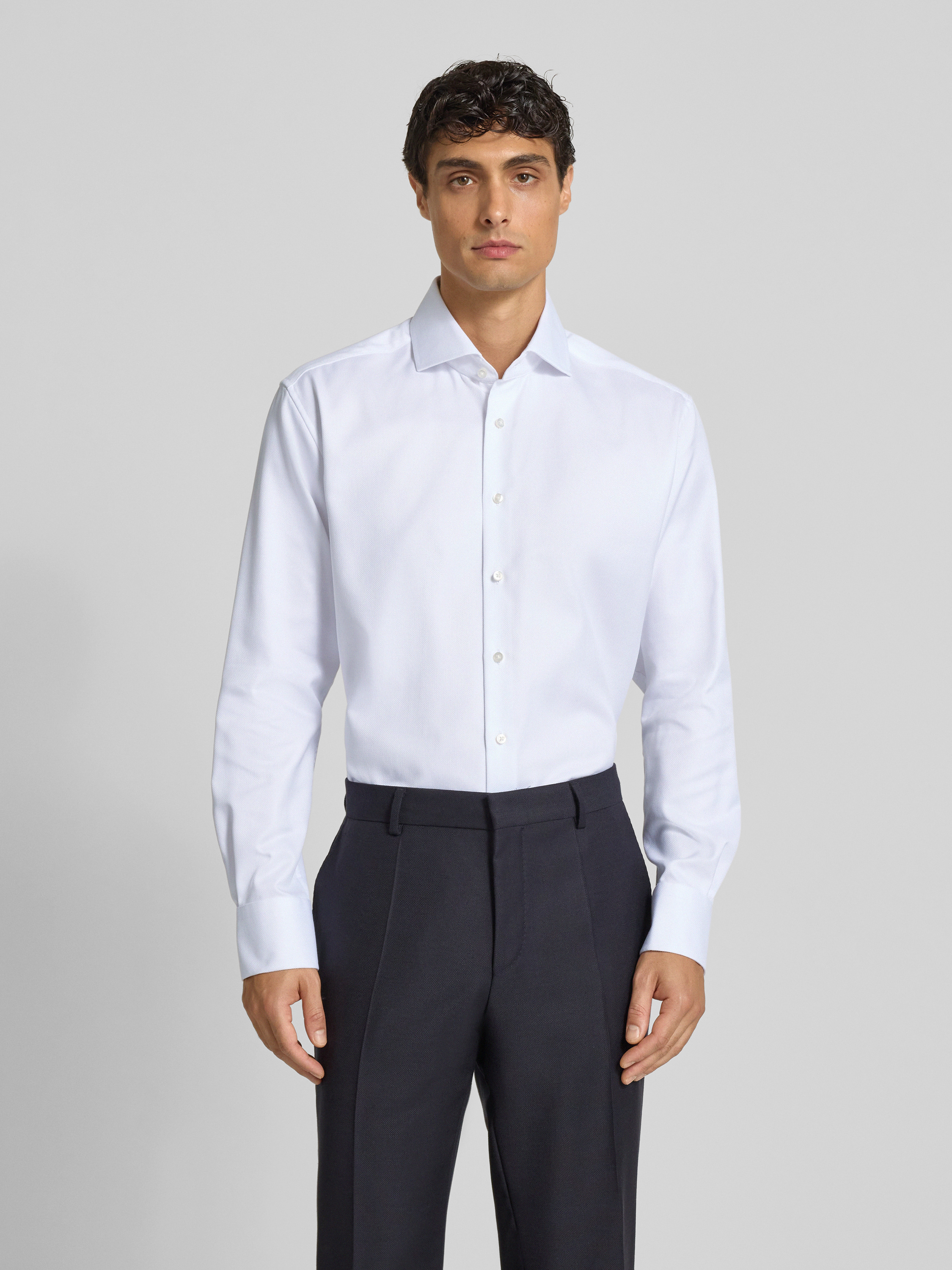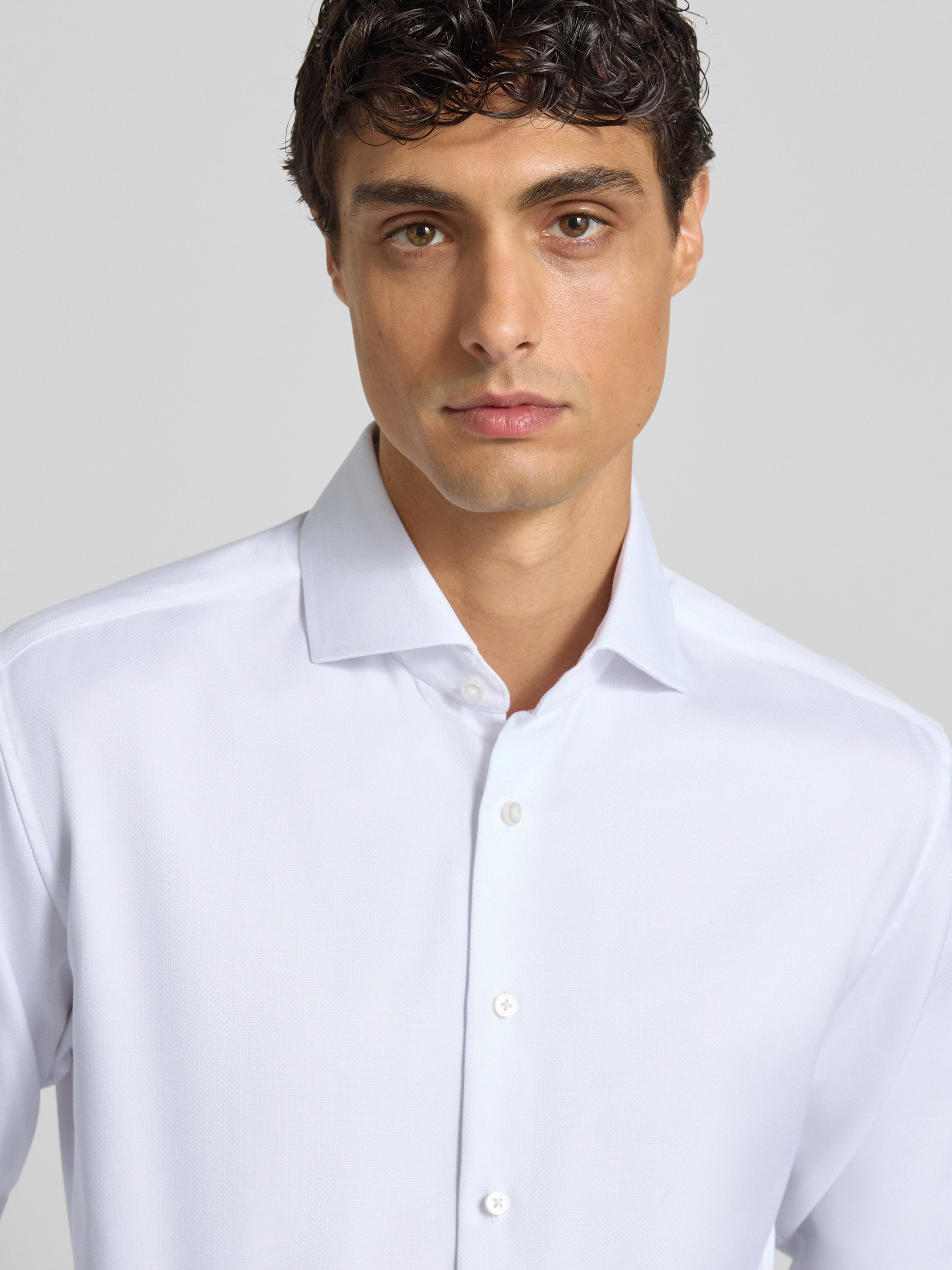 Das Herrenhemd von ETERNA in modernem Schnitt aus reiner Baumwolle sorgt für angenehmen Tragekomfort, während der Haifischkragen dem Look eine klare Linie verleiht. Sportmanschetten unterstreichen die zeitlose Optik. So eignet sich das Modern Fit Business-Hemd mit Haifischkragen für vielseitige Anlässe.