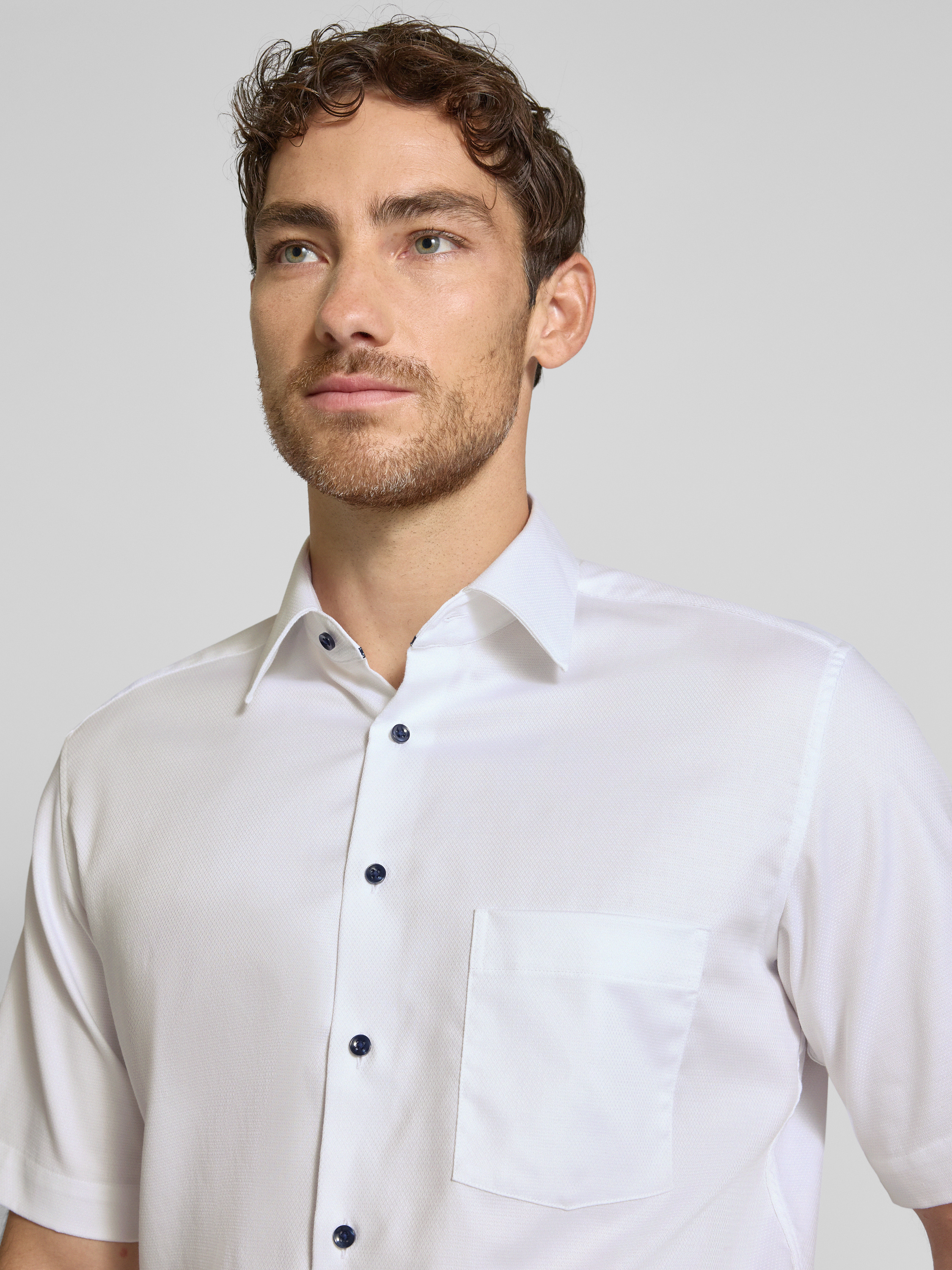 ETERNAModern Fit Kurzarmhemd mit Knopfleiste in weiss