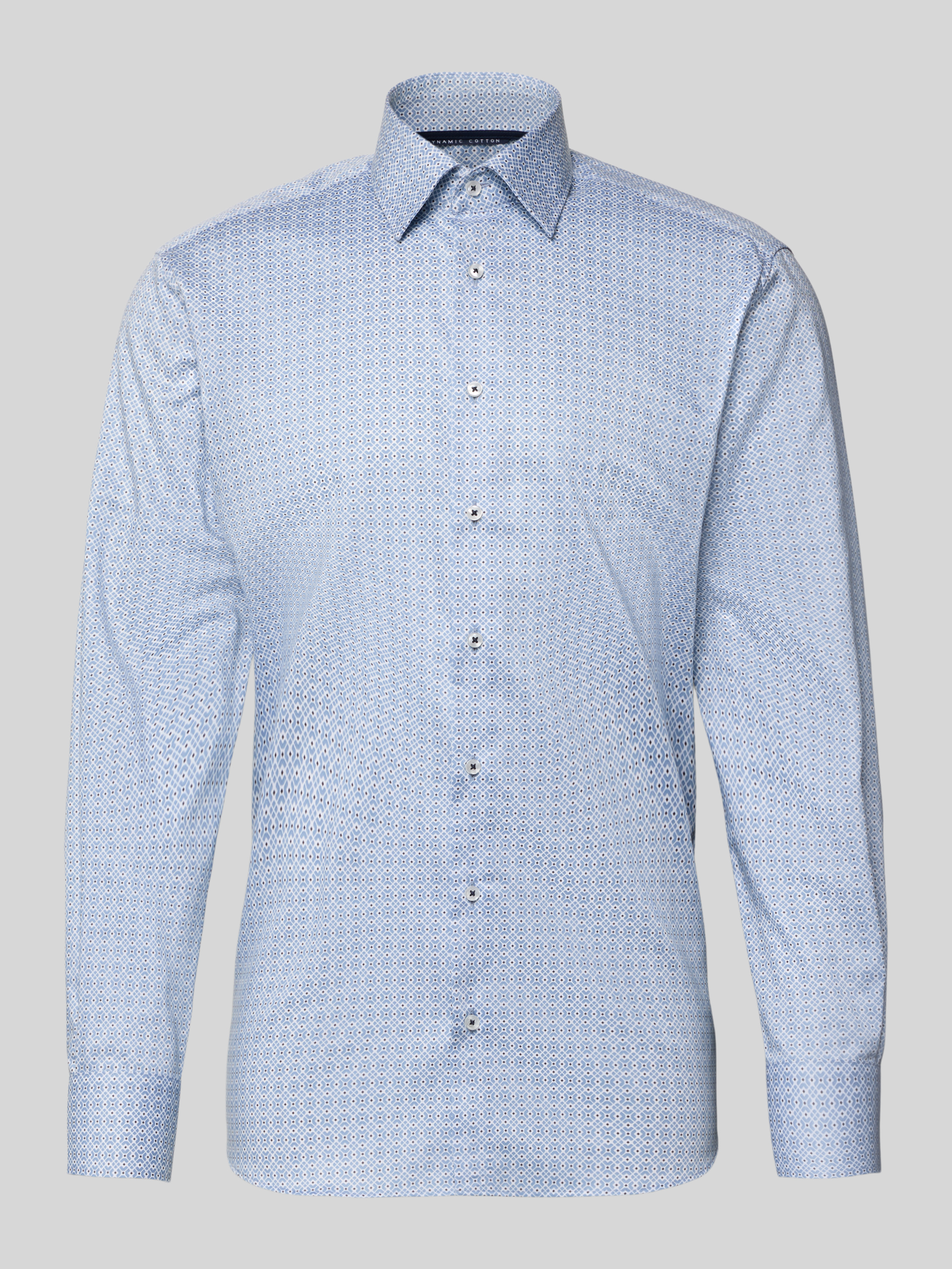 Das Herren Business-Hemd von ETERNA besteht aus reiner Baumwolle und trägt sich angenehm auf der Haut. Durch seinen Regular Fit sitzt das Hemd bequem, während der klassische Kentkragen dem Look eine dezente Eleganz verleiht. So eignet es sich für verschiedenste Anlässe im Alltag.