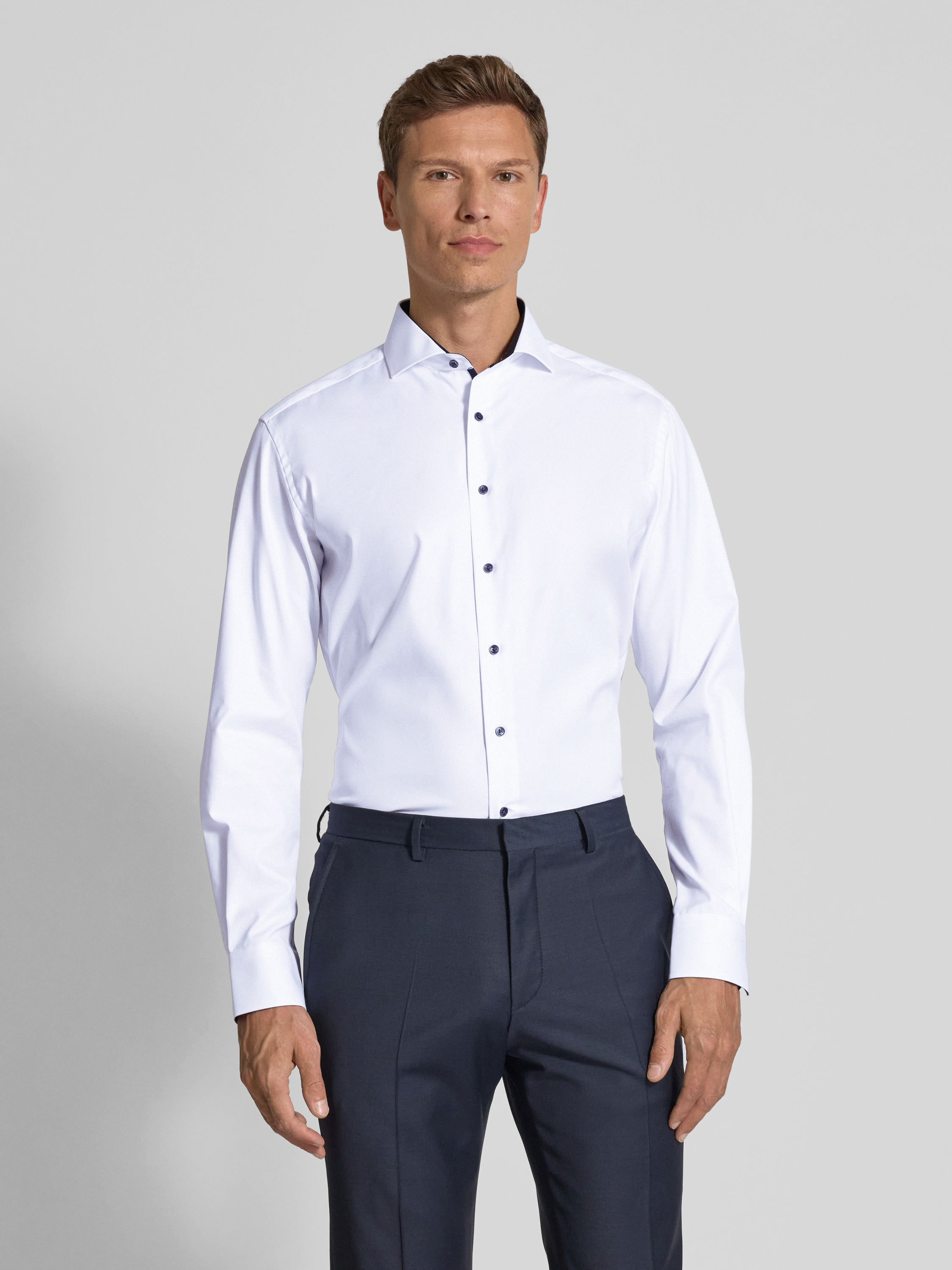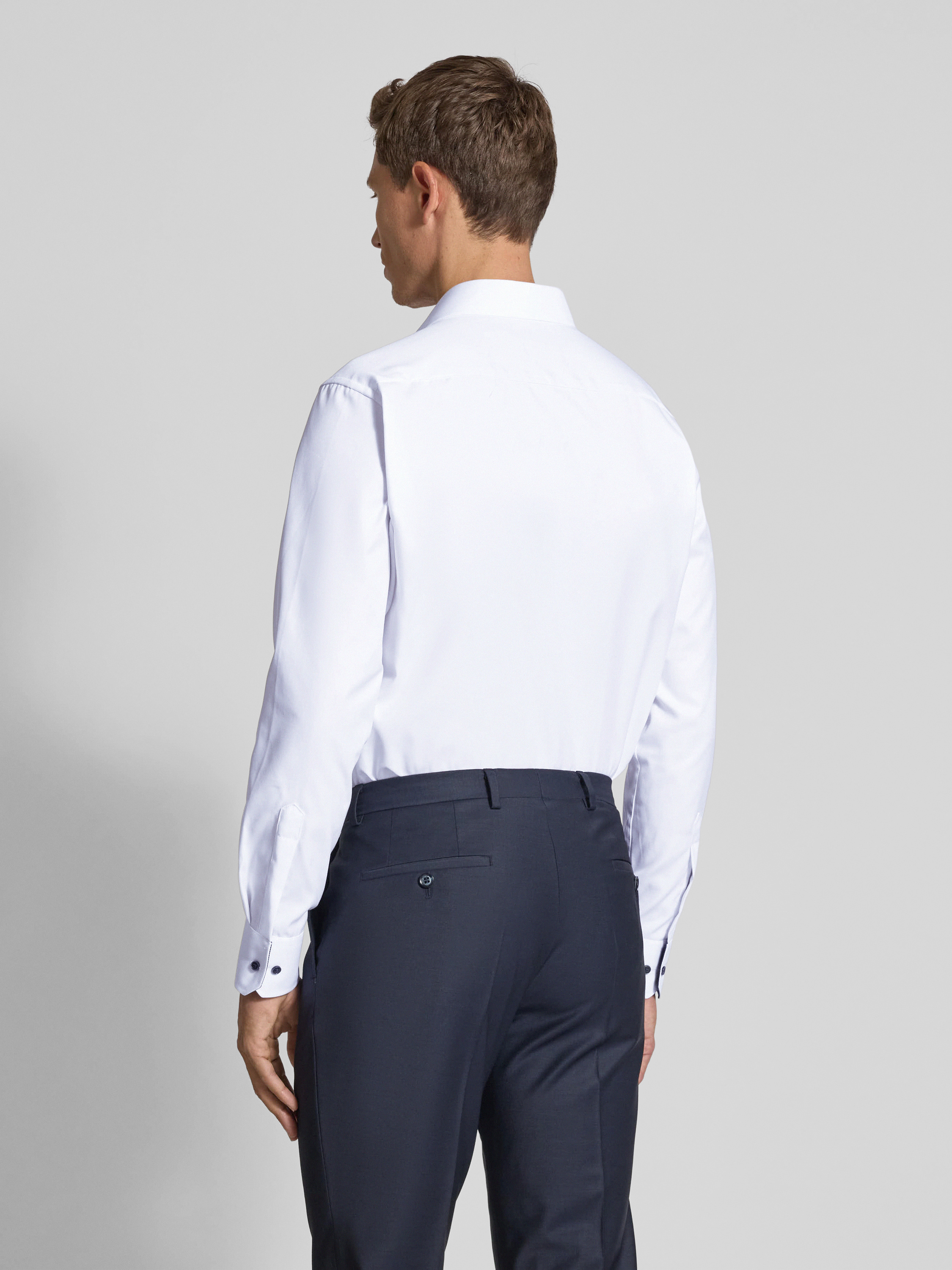 Das Herren Businesshemd von ETERNA im Regular Fit zeichnet sich durch reine Baumwolle aus, wodurch ein angenehmes Tragegefühl entsteht. Der klassische Kentkragen sorgt gemeinsam mit der ausgewogenen Passform für einen gepflegten Eindruck im Büroalltag. Dank der sorgfältigen Verarbeitung trägt man es vielseitig zu verschiedenen Anlässen.