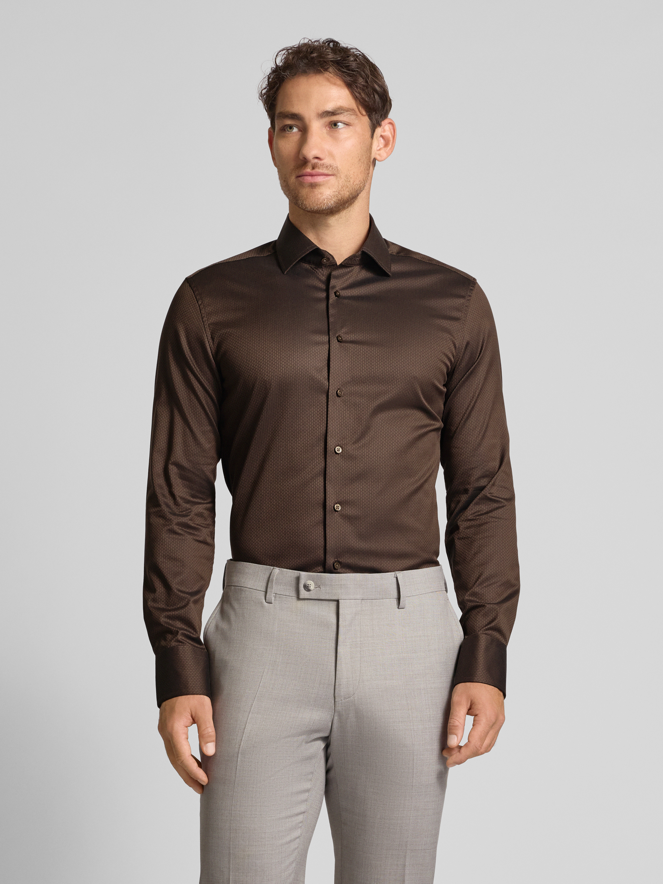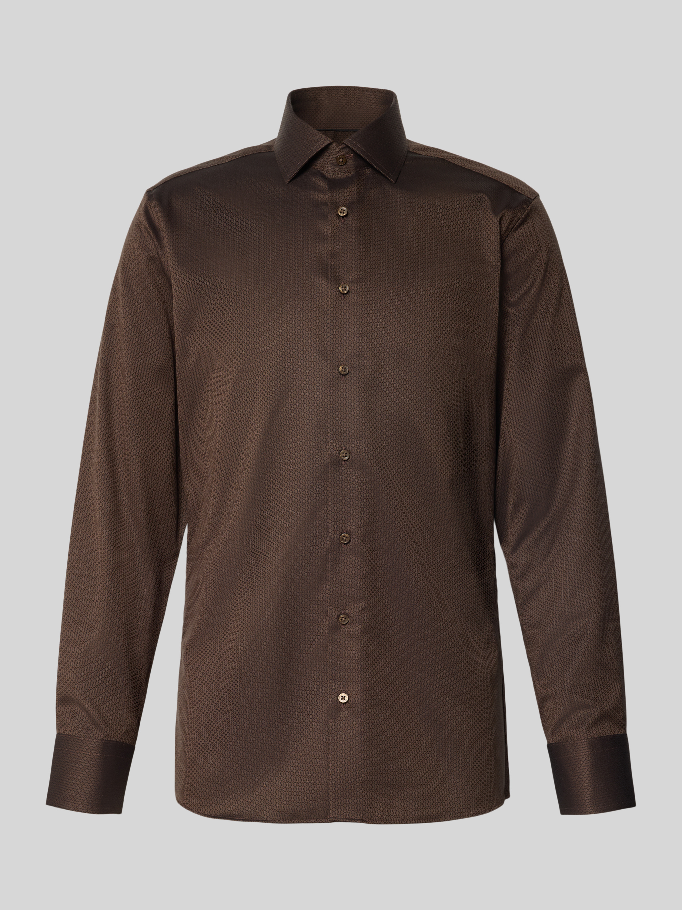 Das Herrenhemd Slim Fit von ETERNA aus reiner Baumwolle liegt angenehm auf der Haut und sorgt durch seinen körpernahen Schnitt für eine moderne Silhouette. Ein Kentkragen und die klassische Knopfleiste runden den Hemd-Look zeitlos ab. So eignet sich dieses Businesshemd für vielfältige Büro-Outfits.