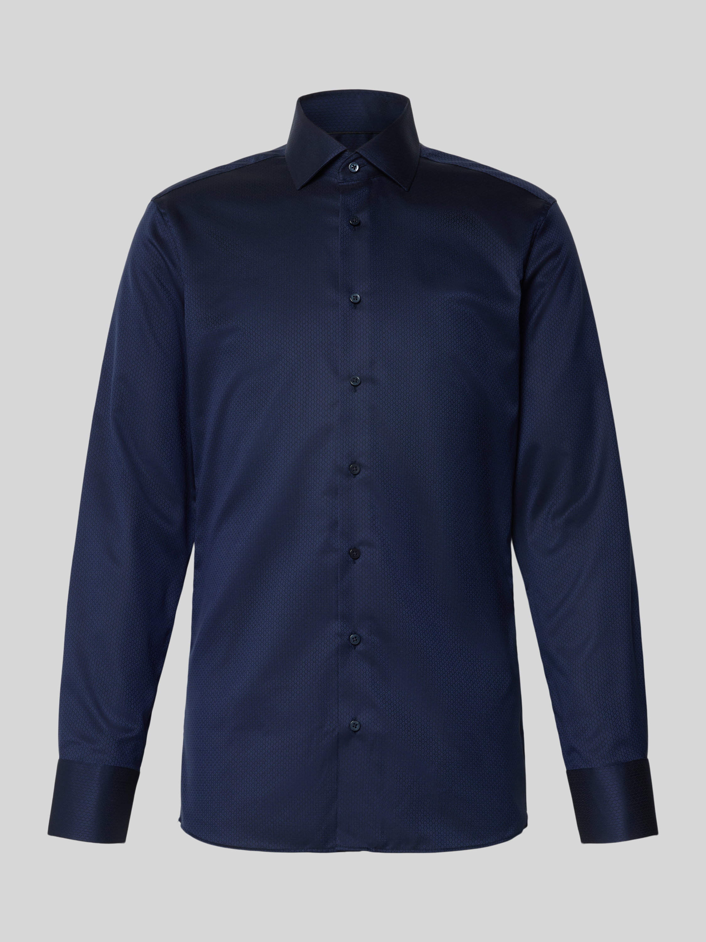 Das Herrenhemd Slim Fit von ETERNA aus reiner Baumwolle liegt angenehm auf der Haut und sorgt durch seinen körpernahen Schnitt für eine moderne Silhouette. Ein Kentkragen und die klassische Knopfleiste runden den Hemd-Look zeitlos ab. So eignet sich dieses Businesshemd für vielfältige Büro-Outfits.