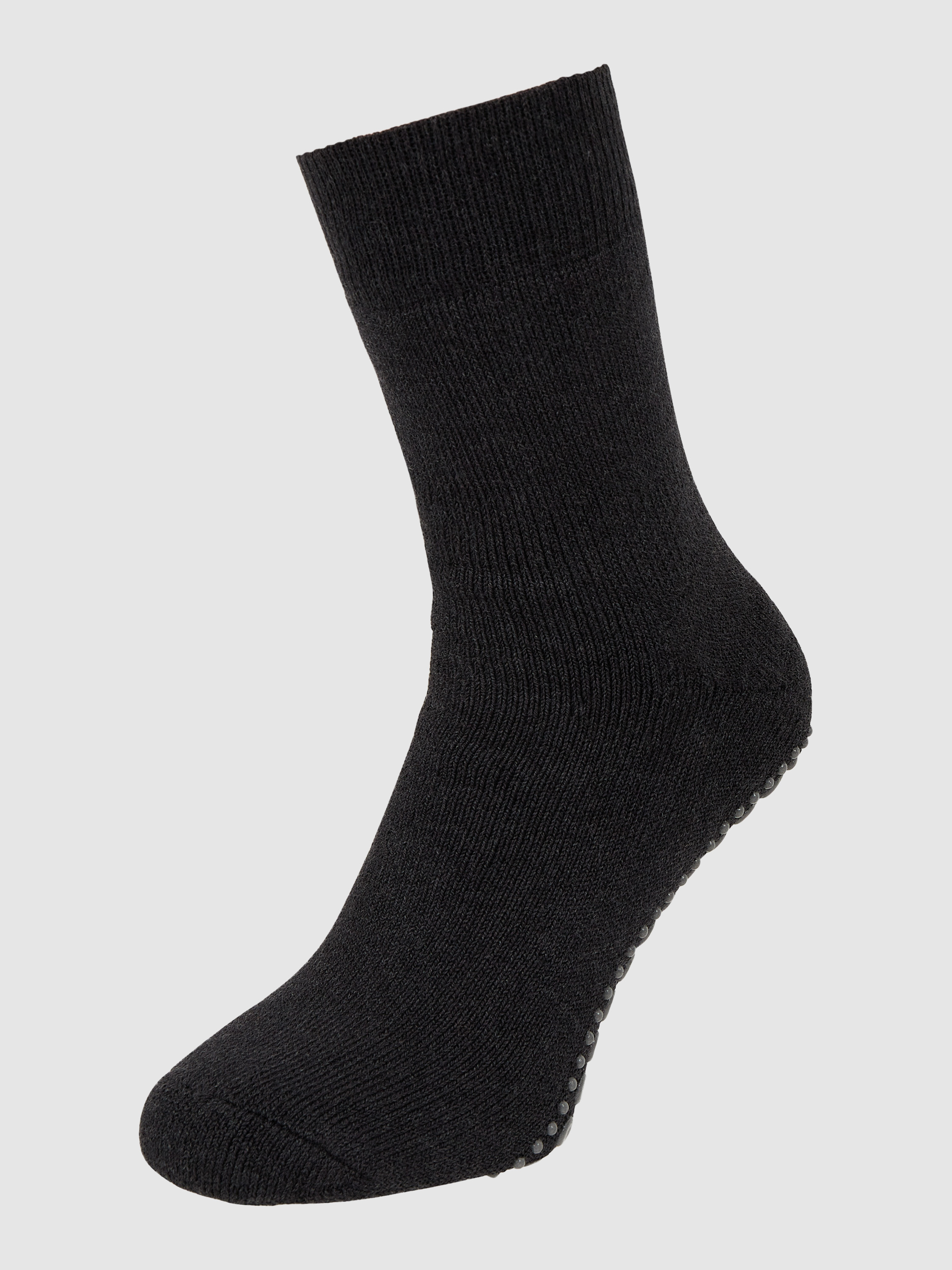Die Herren Socken von Falke bestehen aus einem angenehmen Baumwoll-Woll-Mix mit Stretch-Anteil und schmiegen sich dank körpernahem Schnitt komfortabel an den Fuß. Durch den gerippten Abschluss bleibt der Sitz auch bei Bewegung zuverlässig erhalten. Ein Anti-Rutsch-Besatz sorgt dafür, dass man auf glatten Böden sicheren Halt bewahrt.