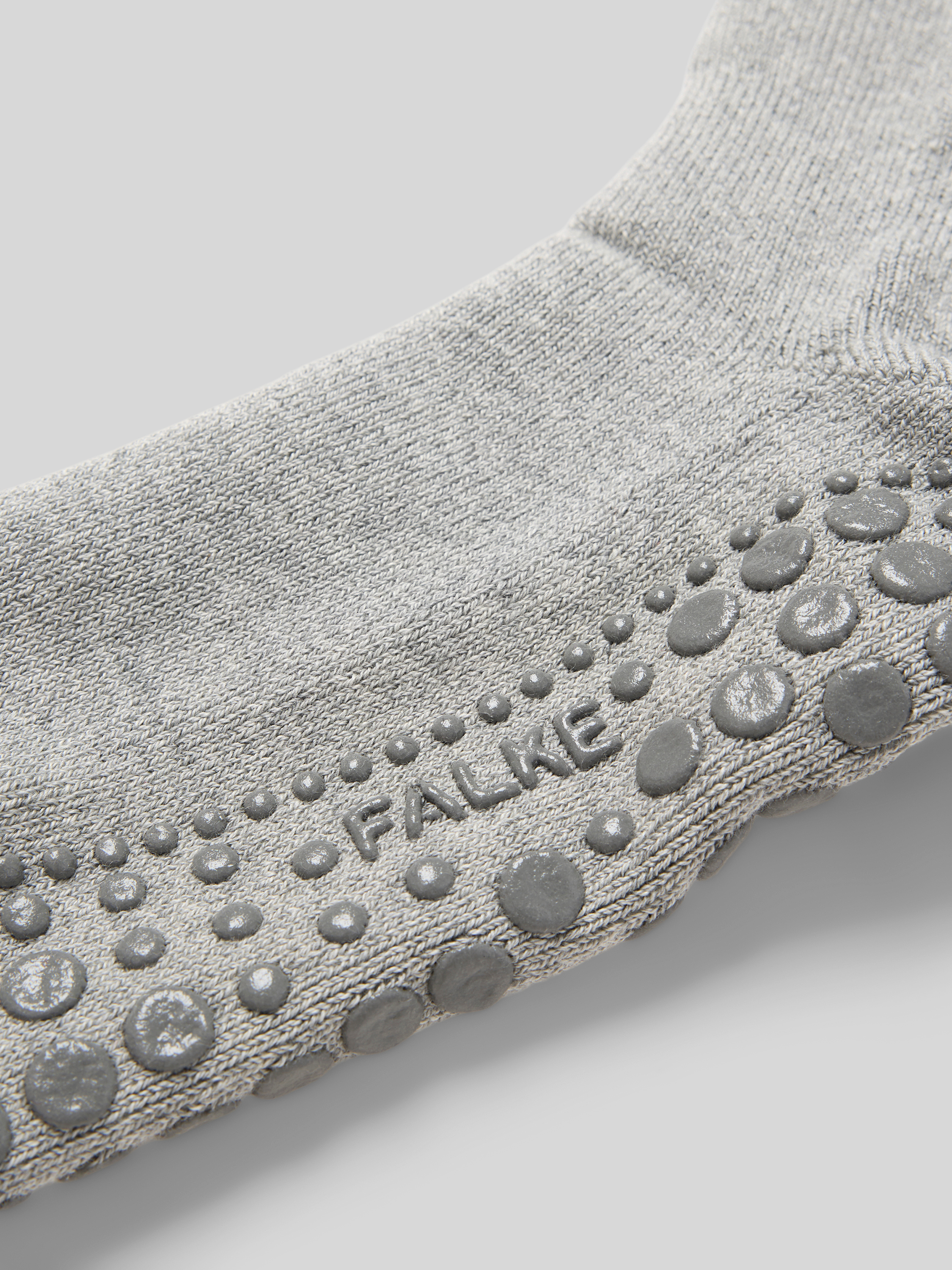 Die Herren Socken von Falke bestehen aus einem angenehmen Baumwoll-Woll-Mix mit Stretch-Anteil und schmiegen sich dank körpernahem Schnitt komfortabel an den Fuß. Durch den gerippten Abschluss bleibt der Sitz auch bei Bewegung zuverlässig erhalten. Ein Anti-Rutsch-Besatz sorgt dafür, dass man auf glatten Böden sicheren Halt bewahrt.