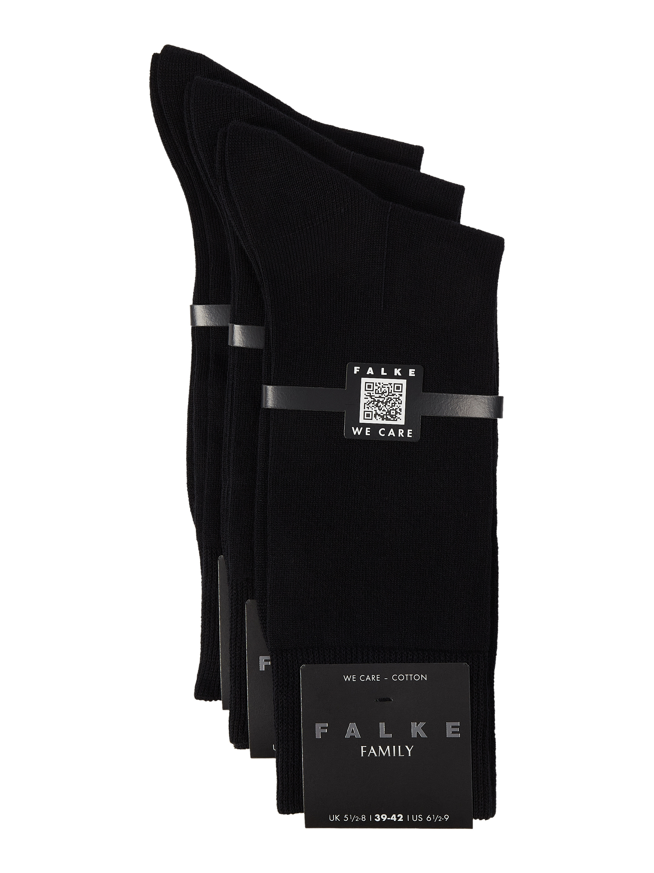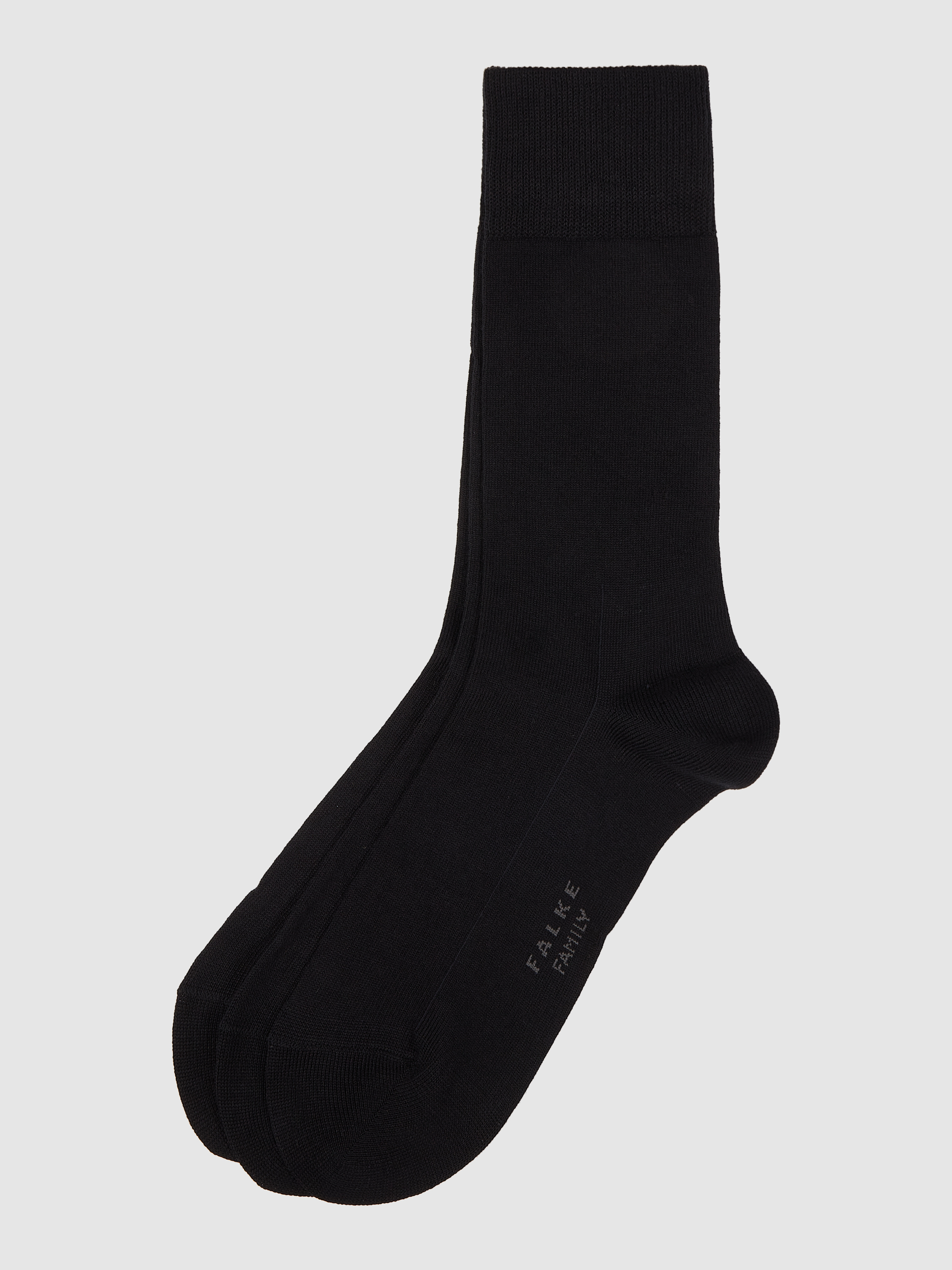 Die Socken von FALKE, Modell 'Family', bieten mit ihrer Baumwollmischung und dem Stretch-Anteil einen angenehmen Tragekomfort. Dank der verstärkten Belastungszonen sind sie robust und langlebig. Im praktischen 3er-Pack erhältlich, eignen sie sich ideal für den täglichen Gebrauch.