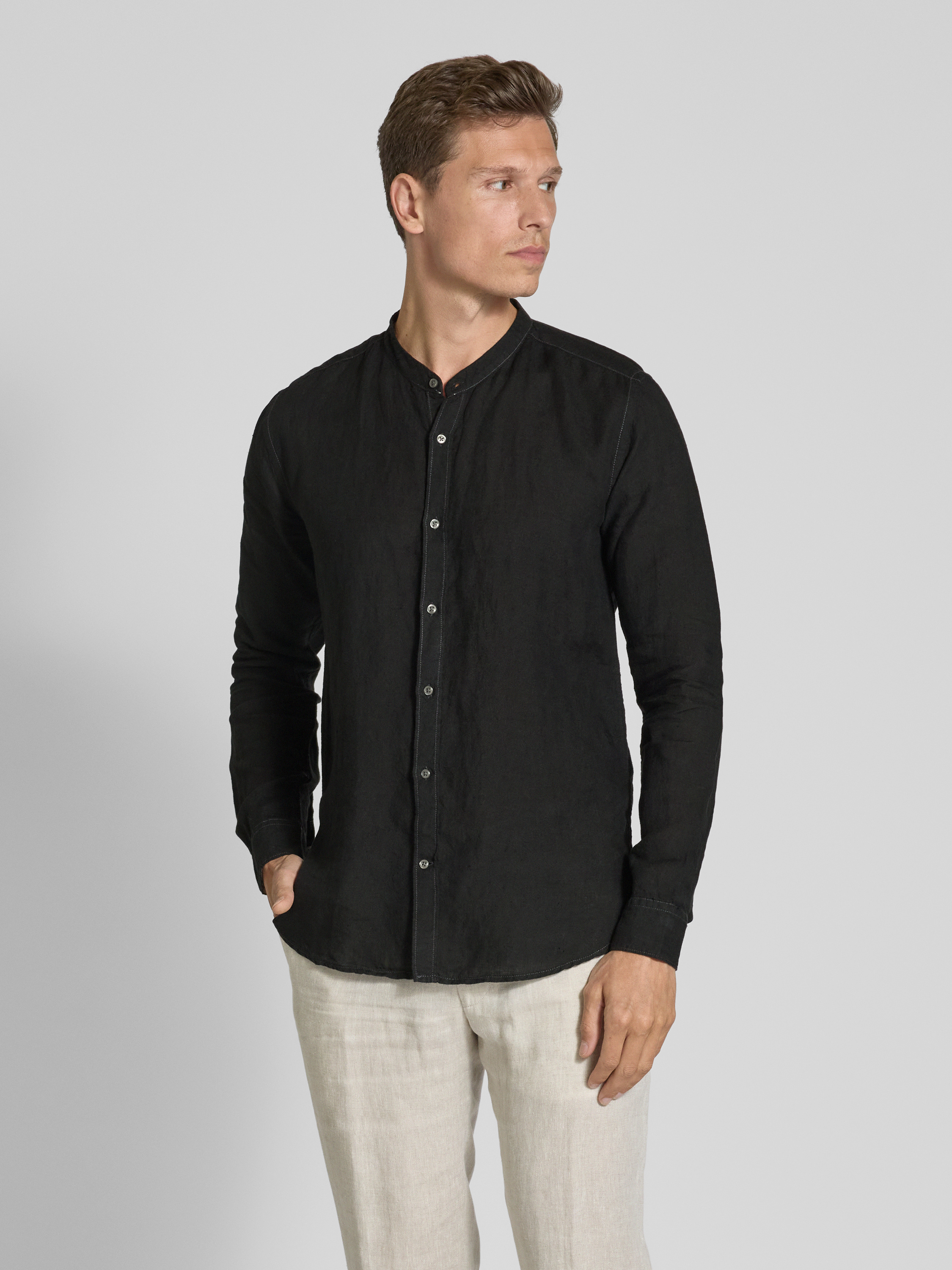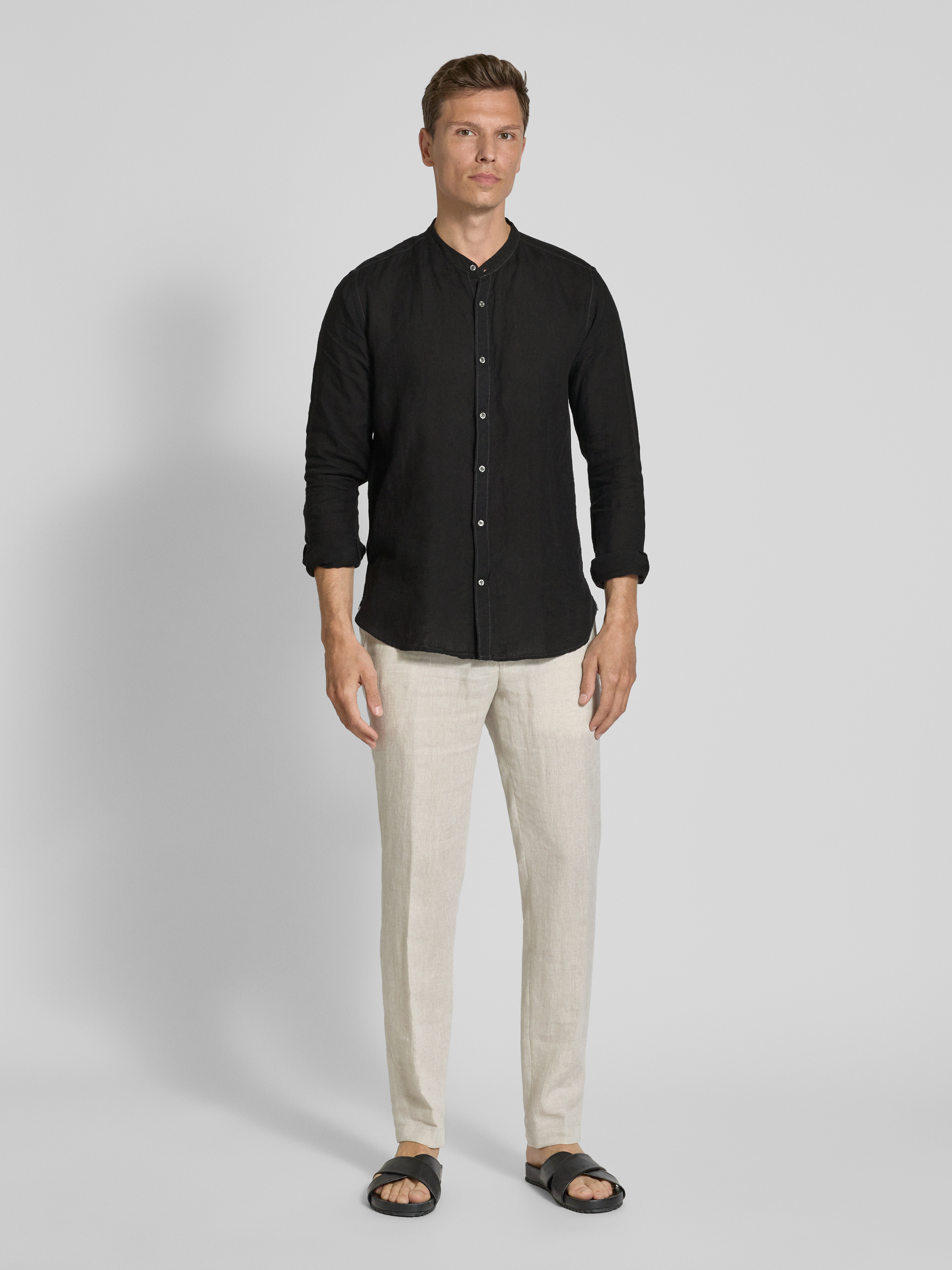 FIL NOIRRegular Fit Businesshemd aus reinem Leinen Modell 'ANCONA' in black