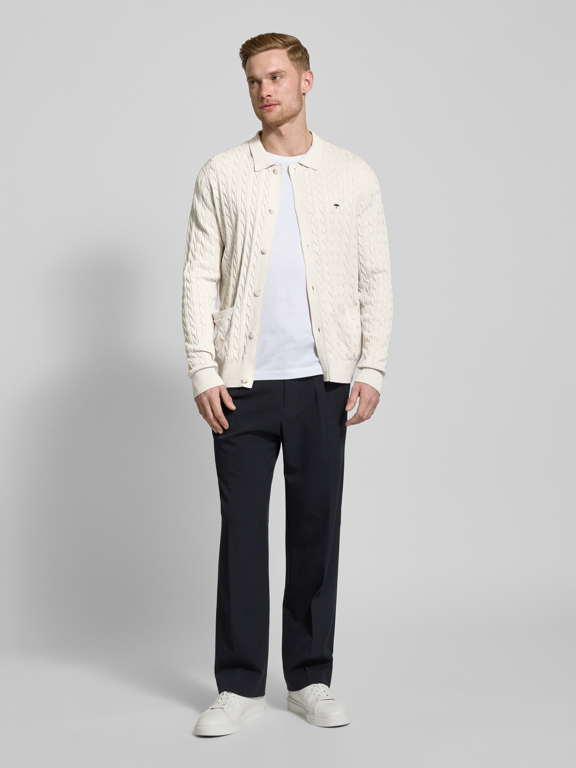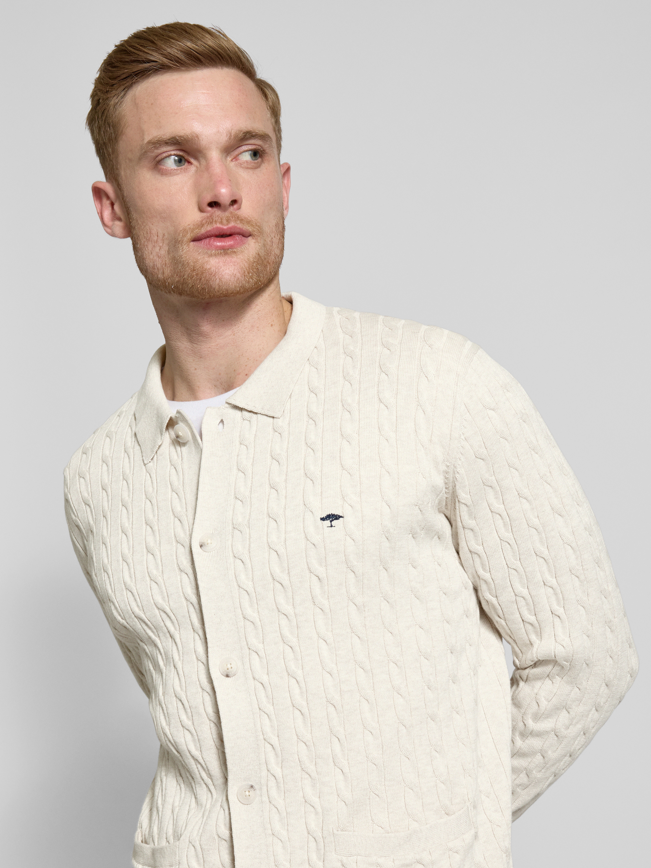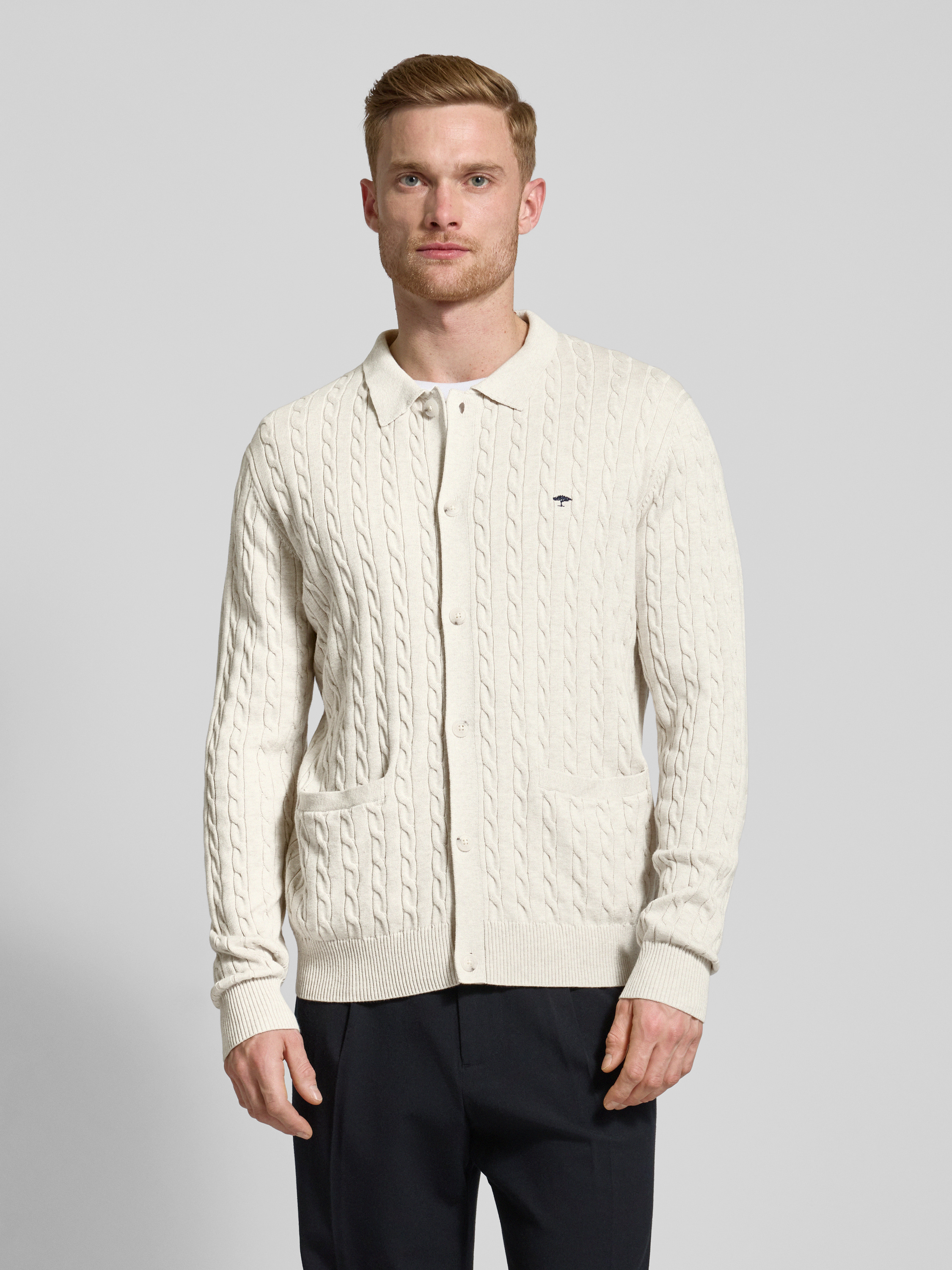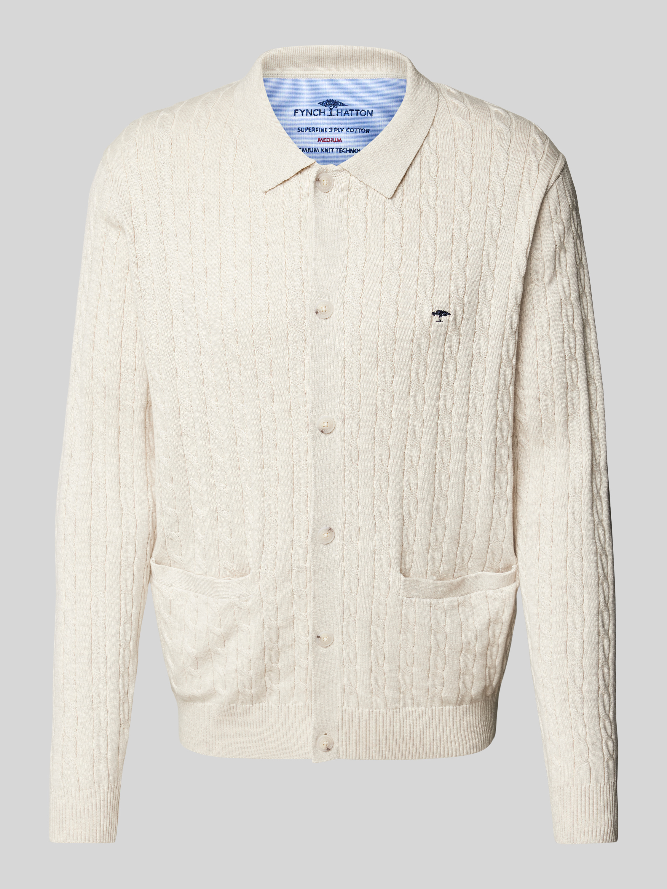 Der Fynch-Hatton Cardigan mit Zopfmuster aus reiner Baumwolle bietet mit seinem lockeren Schnitt und dem Umlegekragen angenehmen Tragekomfort. Das durchdachte Design mit seitlichen Taschen und durchgehender Knopfleiste macht ihn vielseitig einsetzbar. Das dezente Logo-Stitching verleiht eine stilvolle Note.