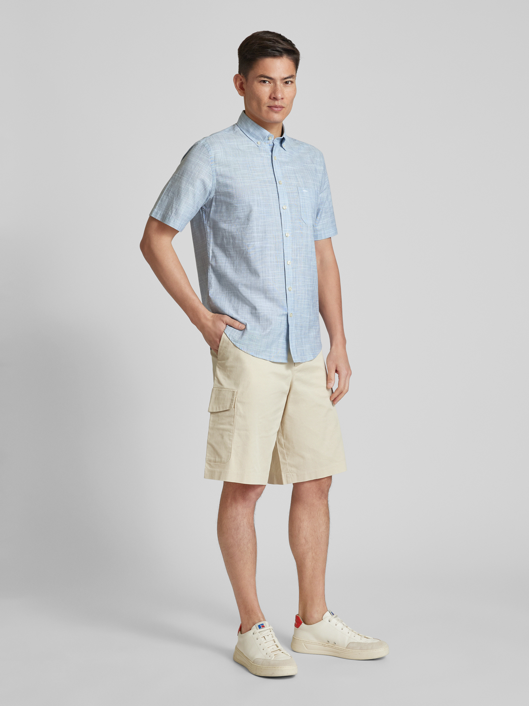 Das Freizeithemd 'Summer' von Fynch-Hatton ist aus reiner Baumwolle gefertigt und bietet durch seinen Regular Fit eine bequeme Passform. Das Allover-Muster verleiht dem Hemd eine lebendige Optik, während der Button-Down-Kragen dem klassischen Design eine moderne Note gibt. Eine Brusttasche ergänzt das Kurzarmhemd funktional.