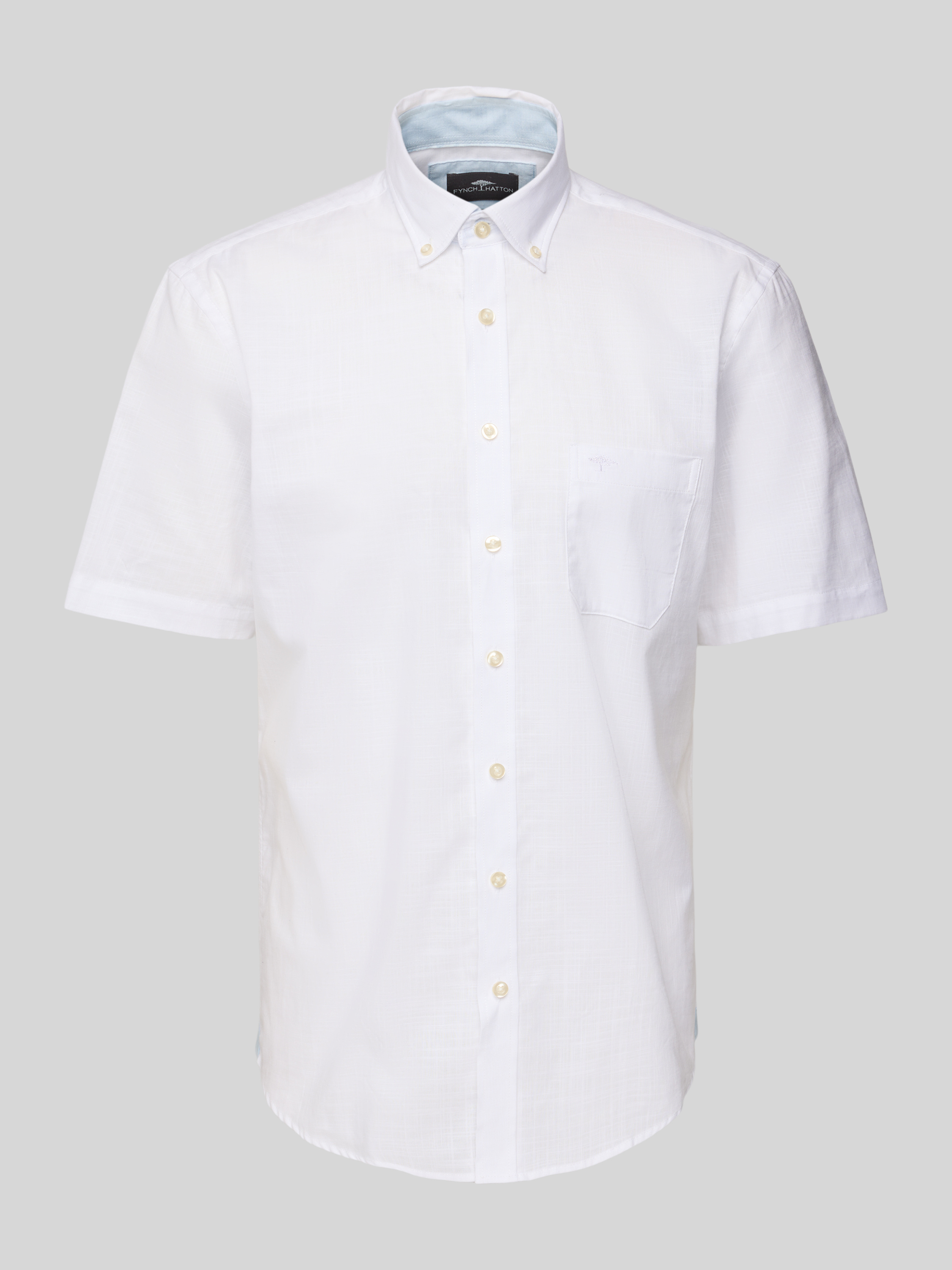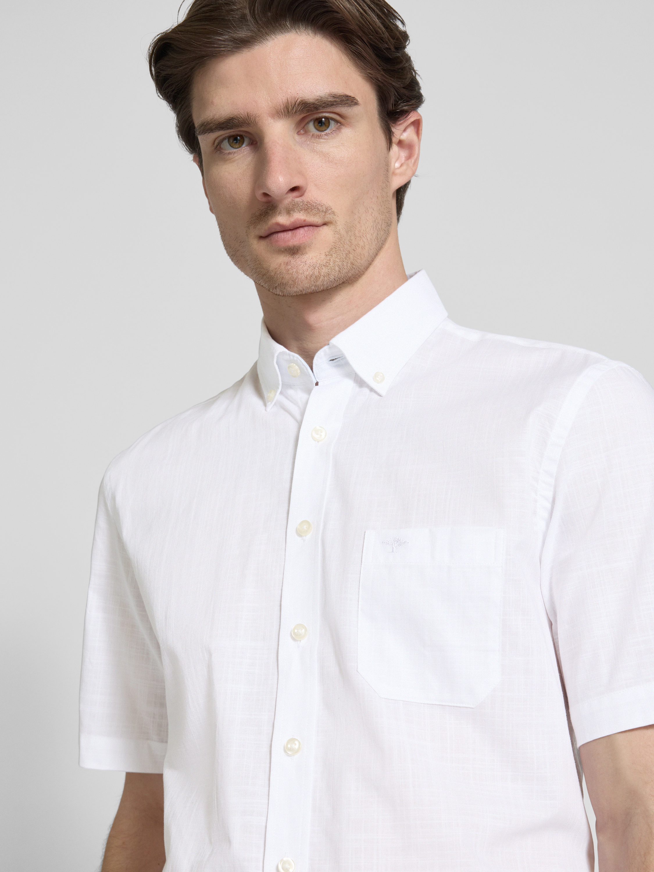 Das Freizeithemd von Fynch-Hatton aus reiner Baumwolle verbindet angenehmen Tragekomfort mit einem entspannten Stil. Der Regular Fit und der Button-Down-Kragen schaffen eine lässige Silhouette, während die Brusttasche praktische Funktionalität bietet. Ideal für warme Tage dank des kurzärmeligen Designs.