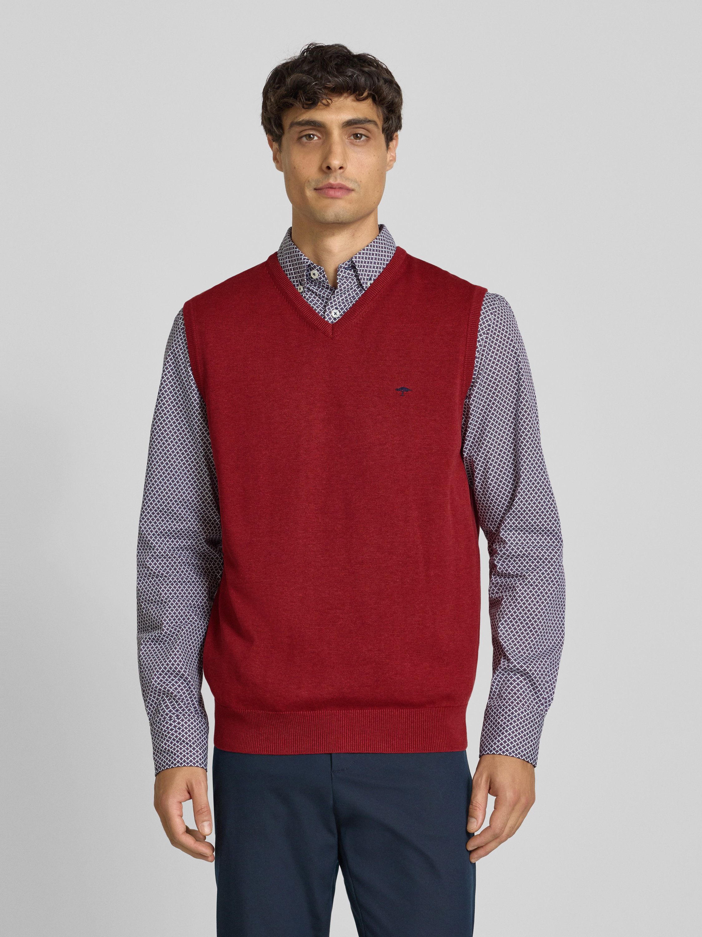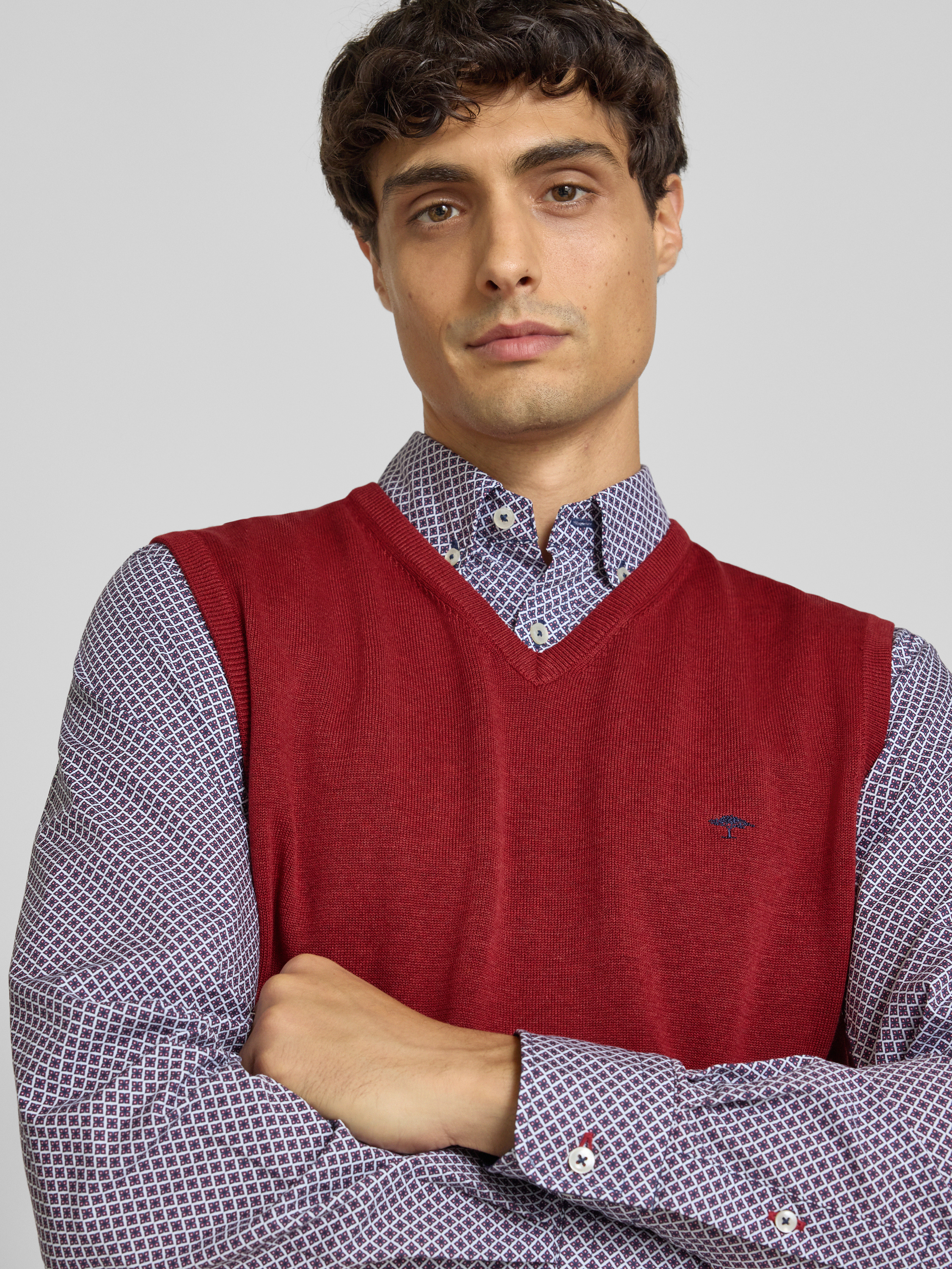 Fynch-HattonPullunder mit Logo-Detail Modell 'Slipover Superfine' in dunkelrot