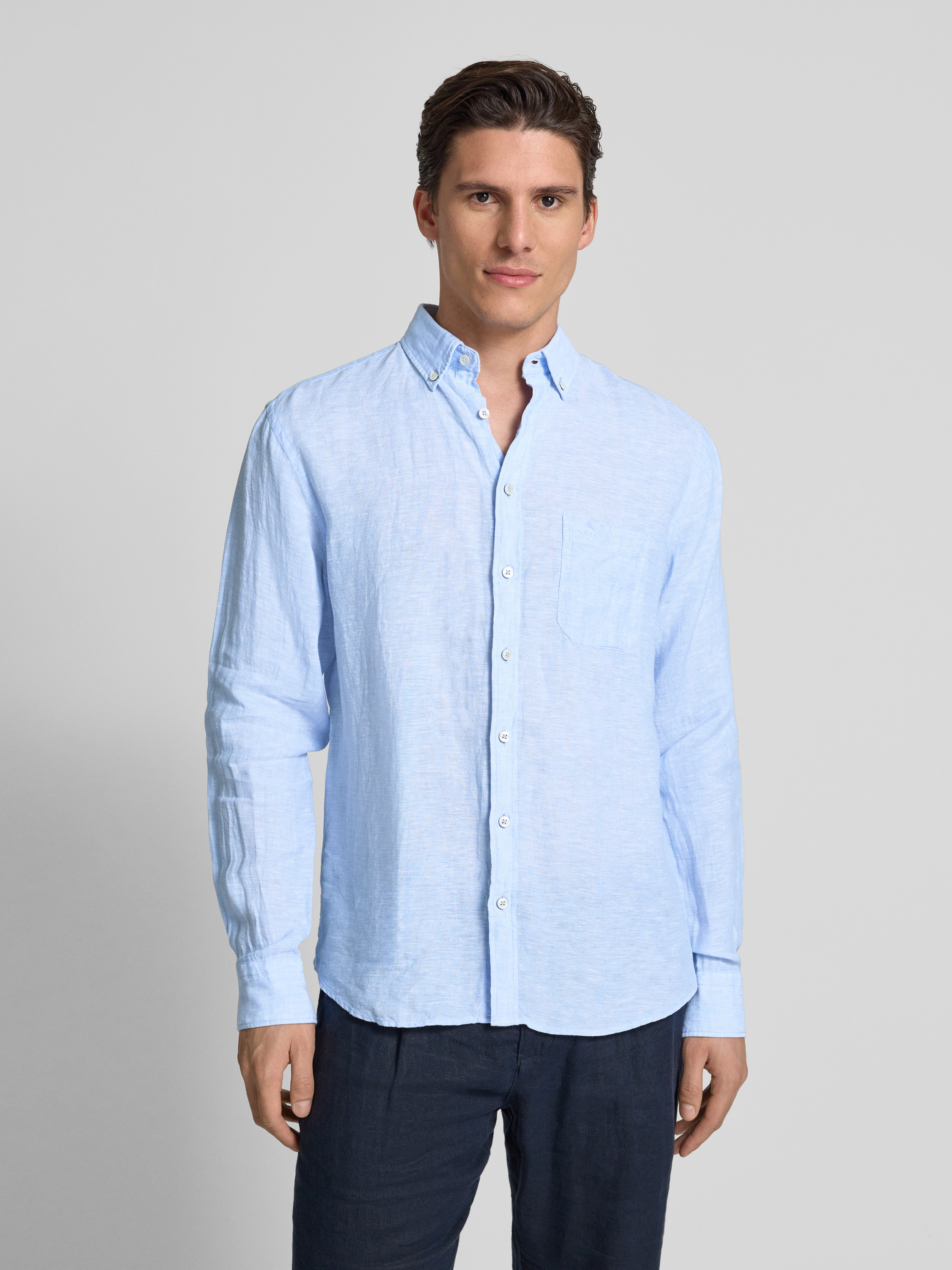 Fynch-HattonRegular Fit Leinenhemd mit Button-Down-Kragen in hellblau
