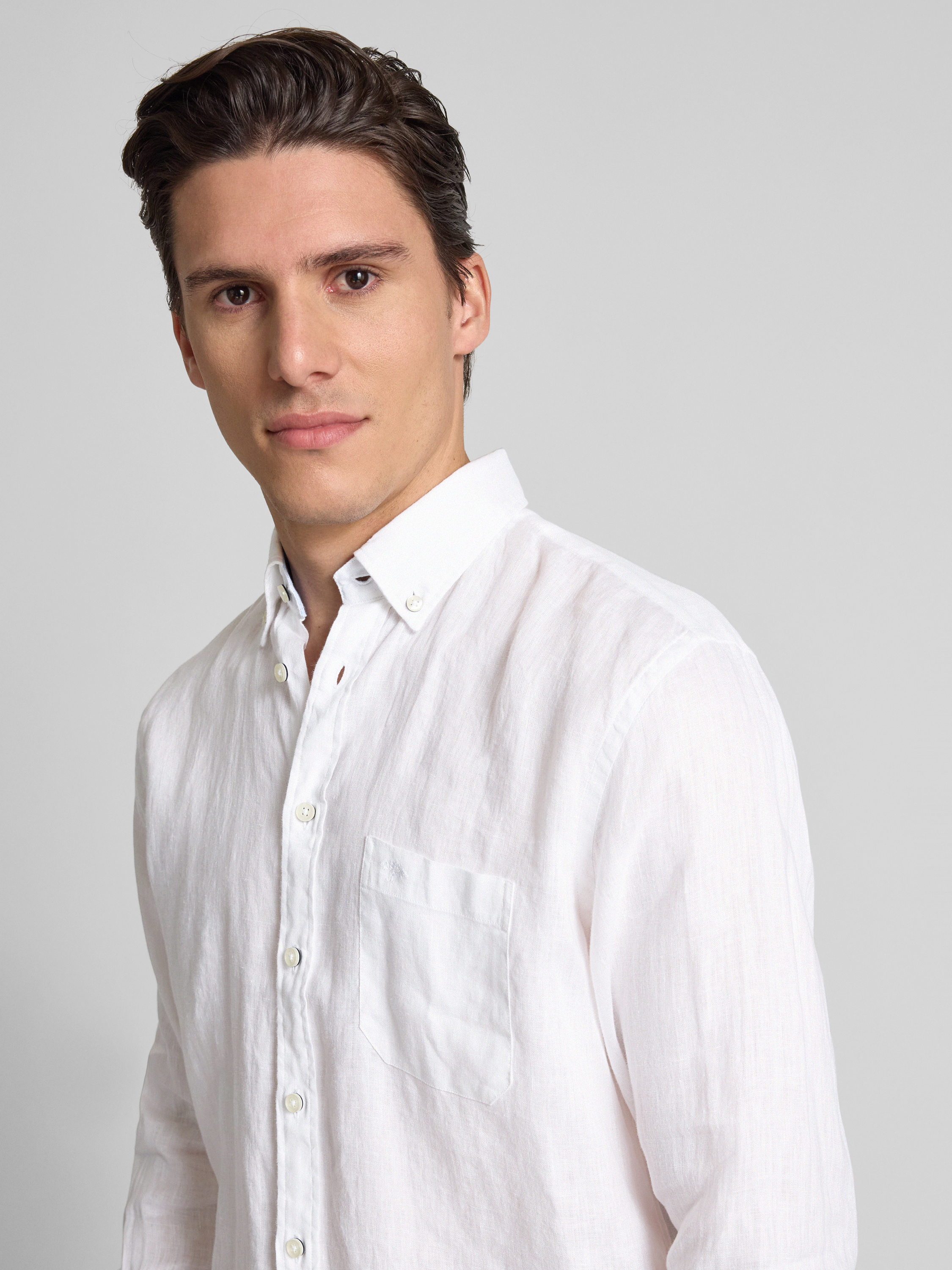 Das Herrenhemd von Fynch-Hatton aus reinem Leinen bietet mit seinem Regular Fit und dem eleganten Button-Down-Kragen einen zeitlosen Look. Die durchgehende Knopfleiste und die praktische Brusttasche verleihen dem Hemd Funktionalität. Leinen sorgt für angenehmen Tragekomfort und Atmungsaktivität.