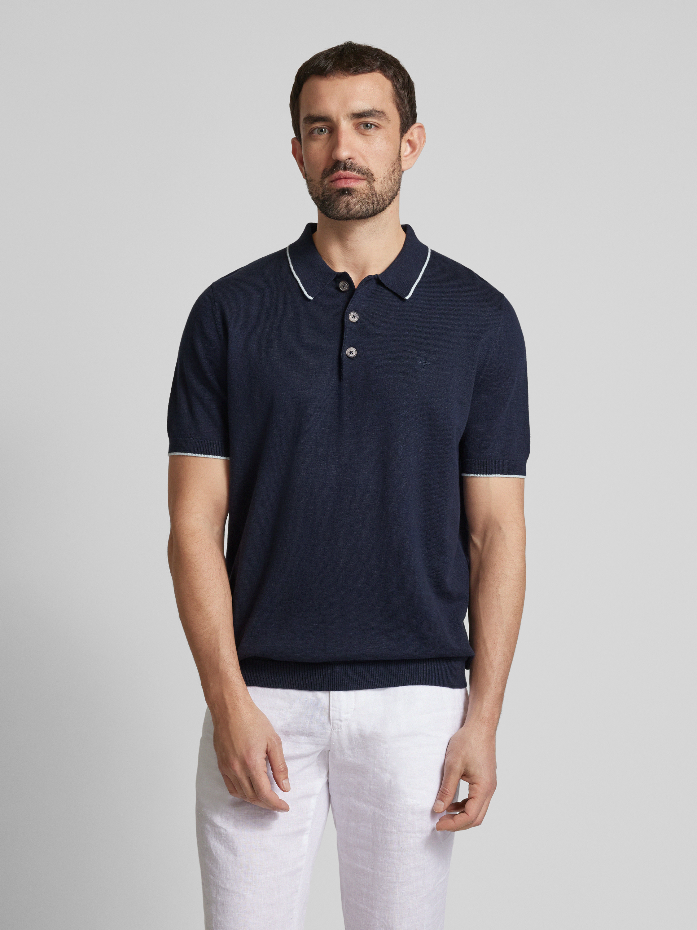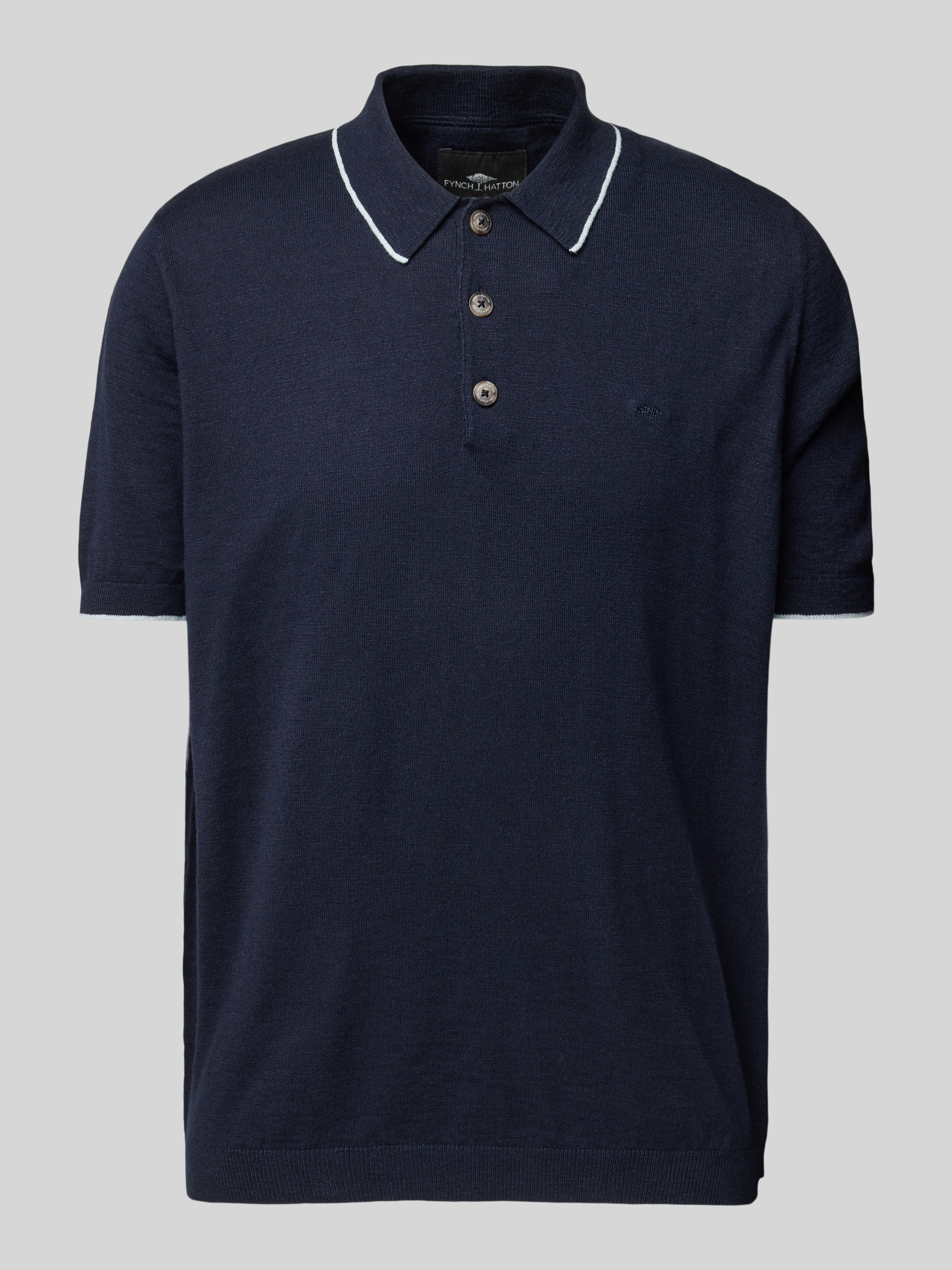 Fynch-HattonRegular Fit Poloshirt aus Baumwoll-Leinen-Mix in marine