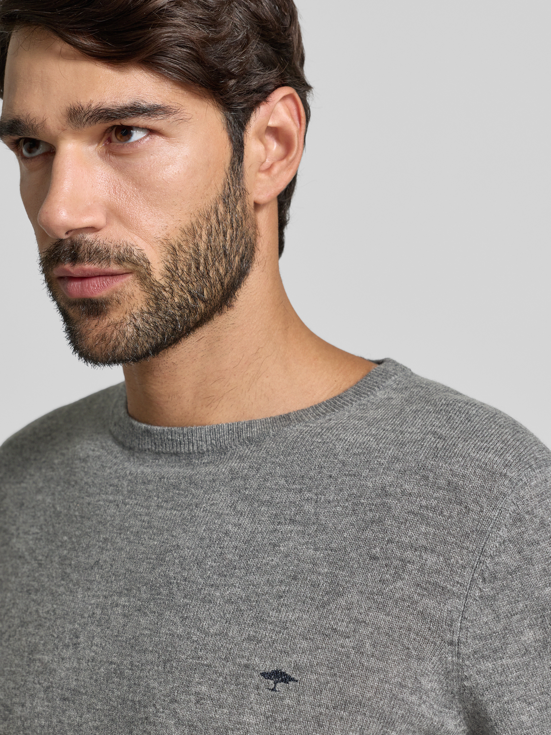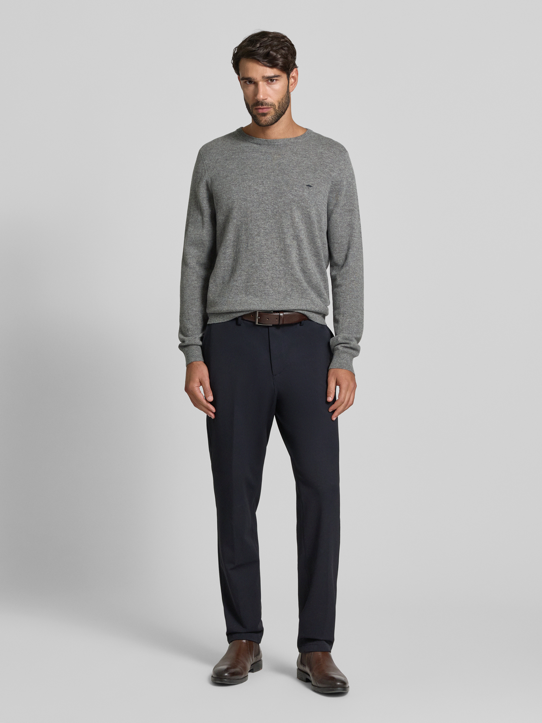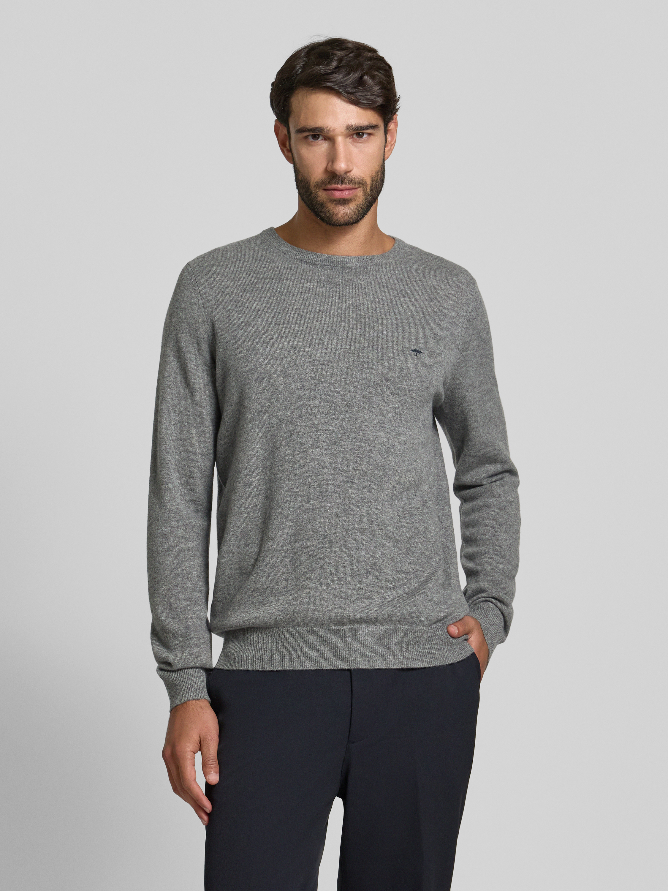 Fynch-HattonRegular Fit Pullover mit Kaschmir-Anteil Modell 'Merino' in mittelgrau