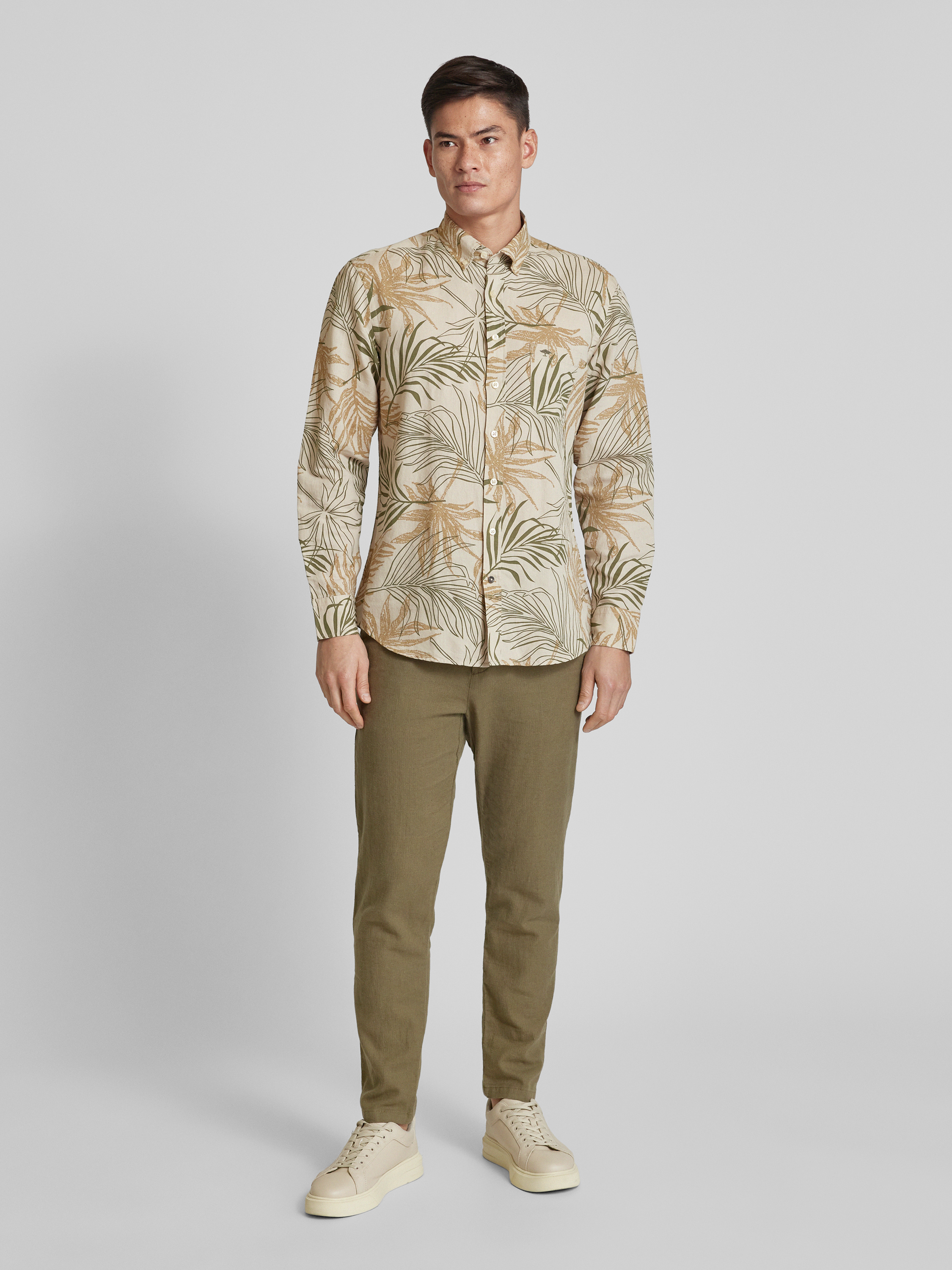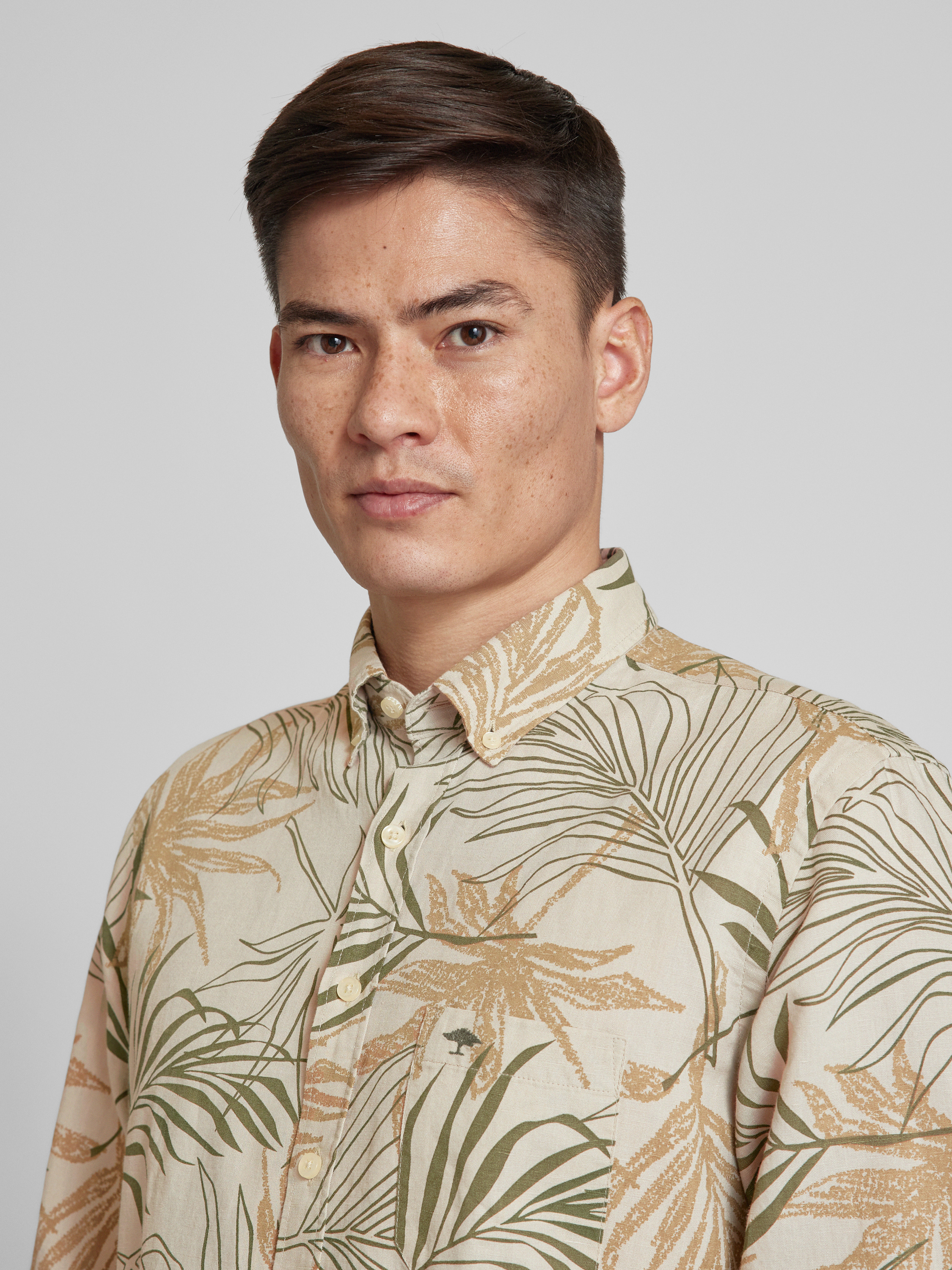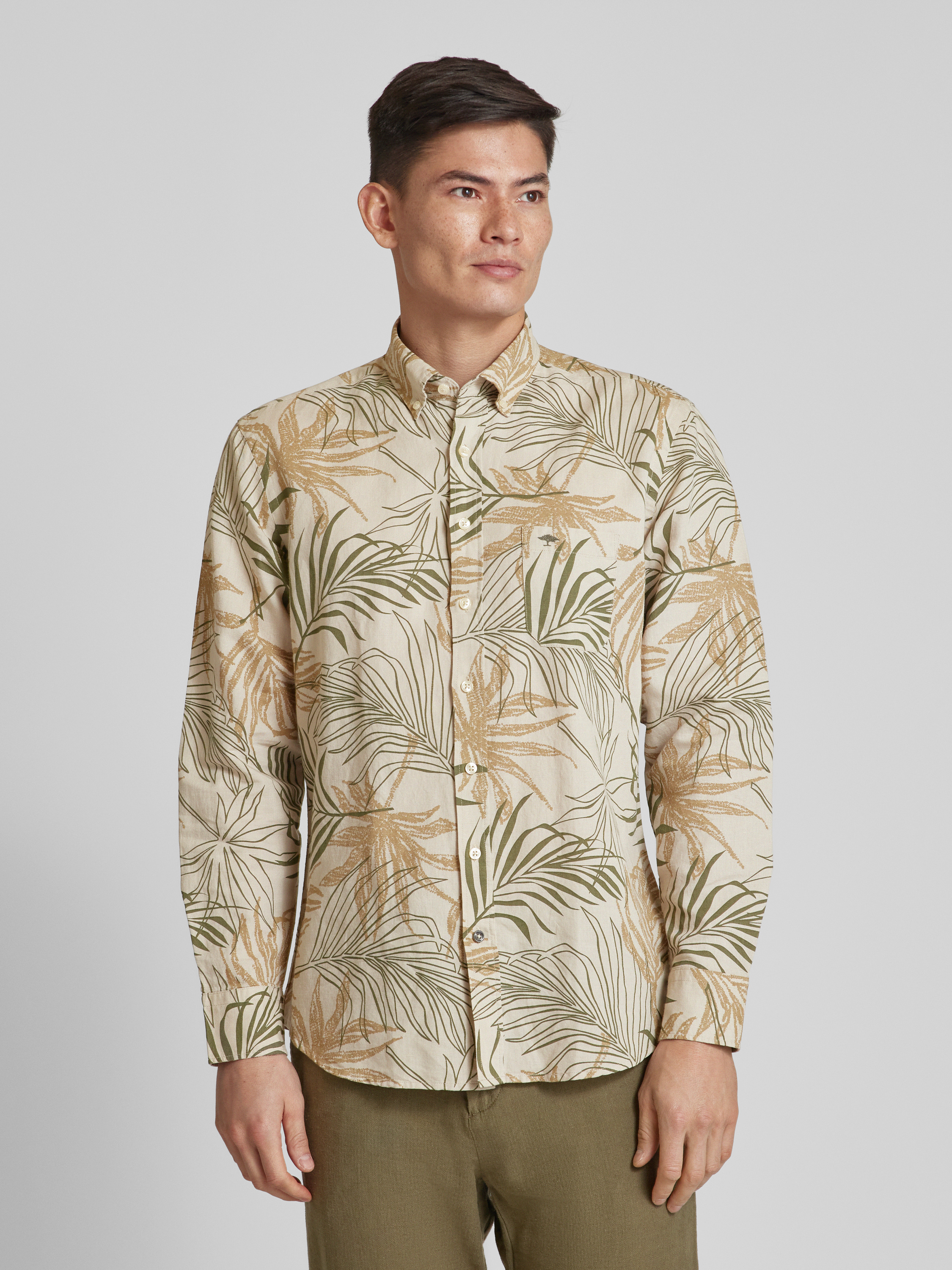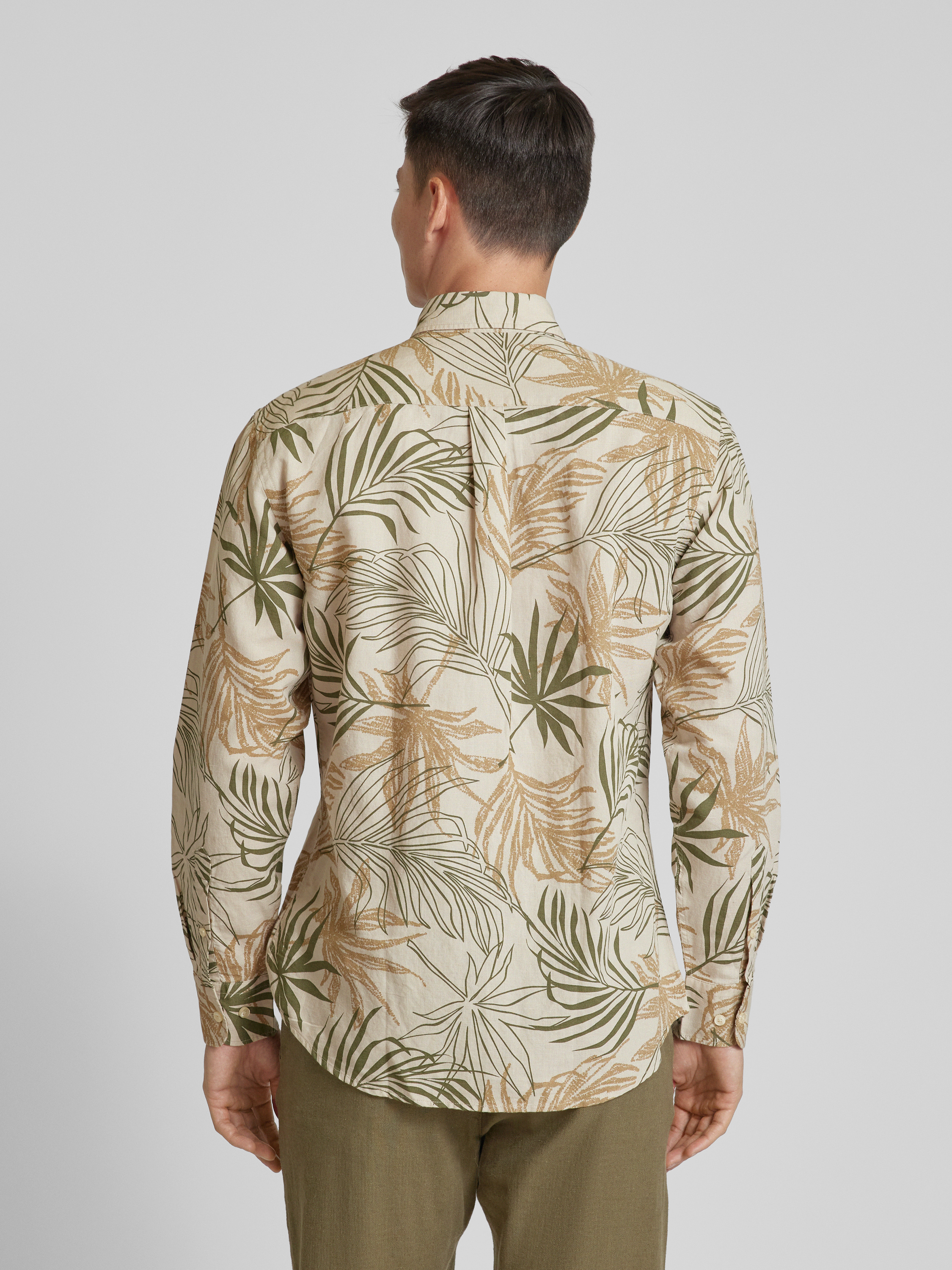 Das Freizeithemd von Fynch-Hatton, gefertigt aus einem hochwertigen Leinen-Mix, kombiniert Leichtigkeit mit einem eleganten Slim Fit. Das Allover-Muster und der klassische Button-Down-Kragen verleihen jedem Outfit eine raffinierte Note. Eine praktische Brusttasche rundet das Design funktional ab.