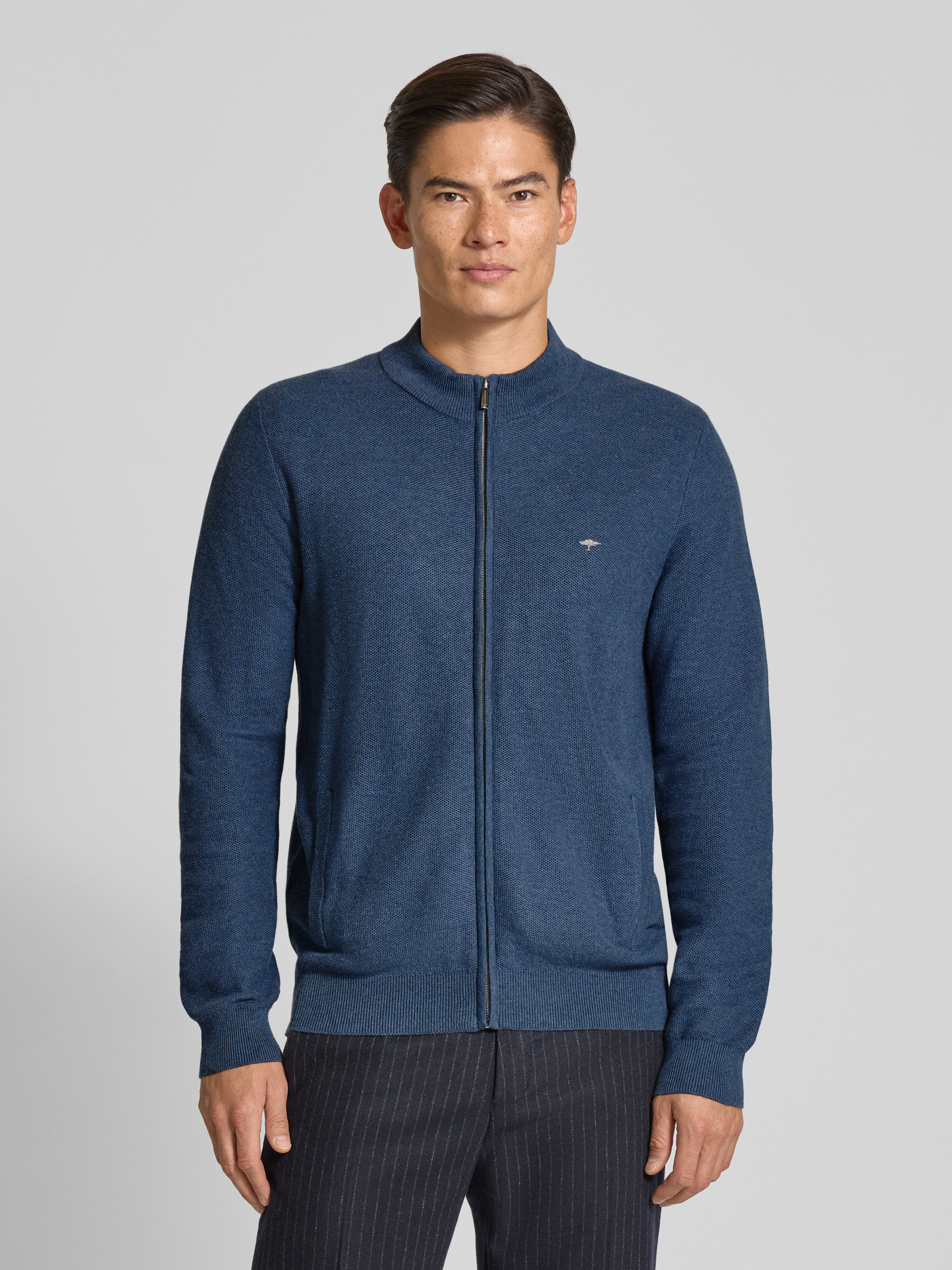 Die Herren-Strickjacke von Fynch-Hatton besteht aus reiner Baumwolle und liegt angenehm auf der Haut. Durch den geraden Schnitt mit Stehkragen entsteht ein klassischer Look, der vielseitig kombiniert werden kann. Dezentes Logo-Stitching rundet das Gesamtbild unaufdringlich ab.