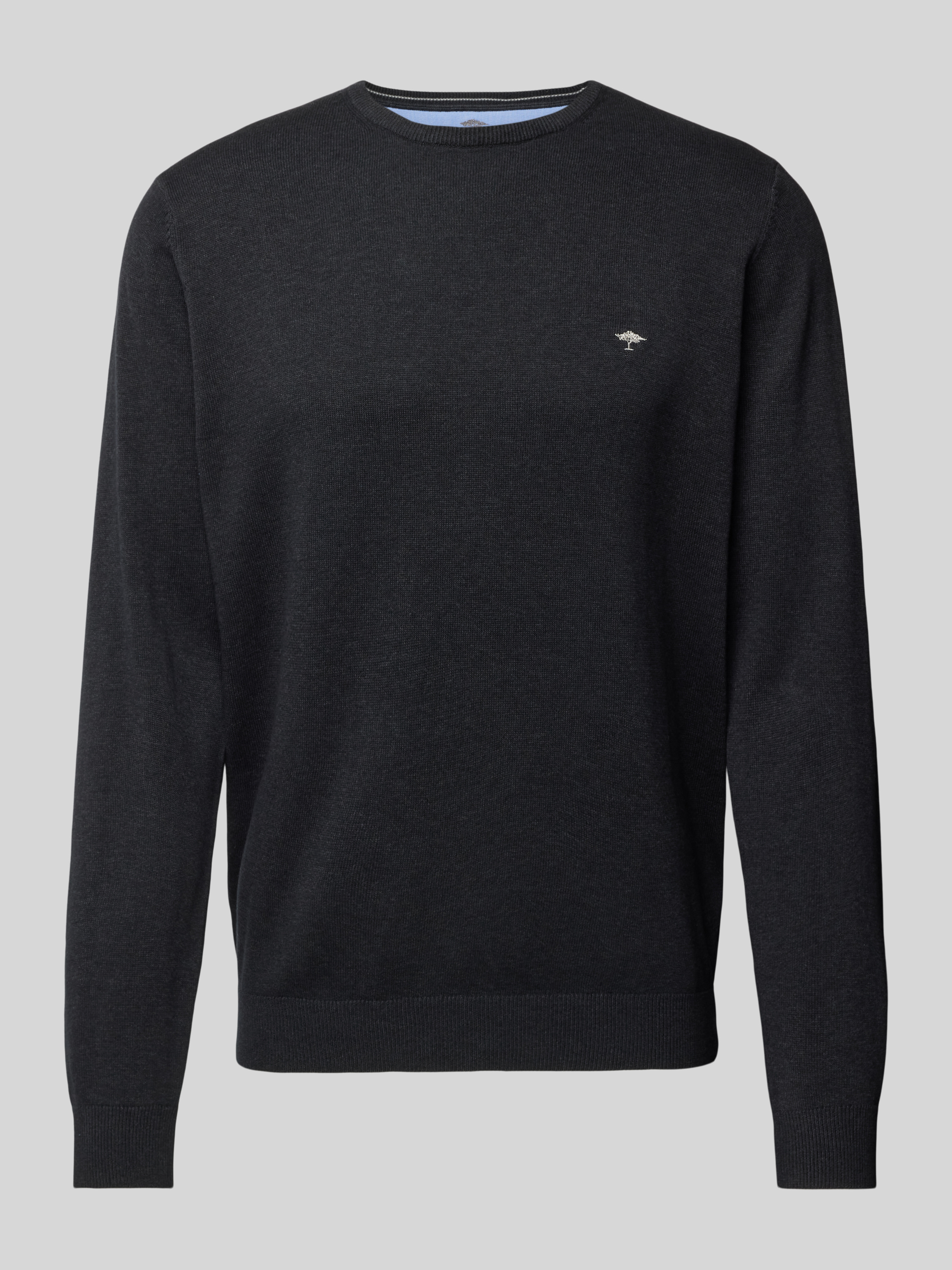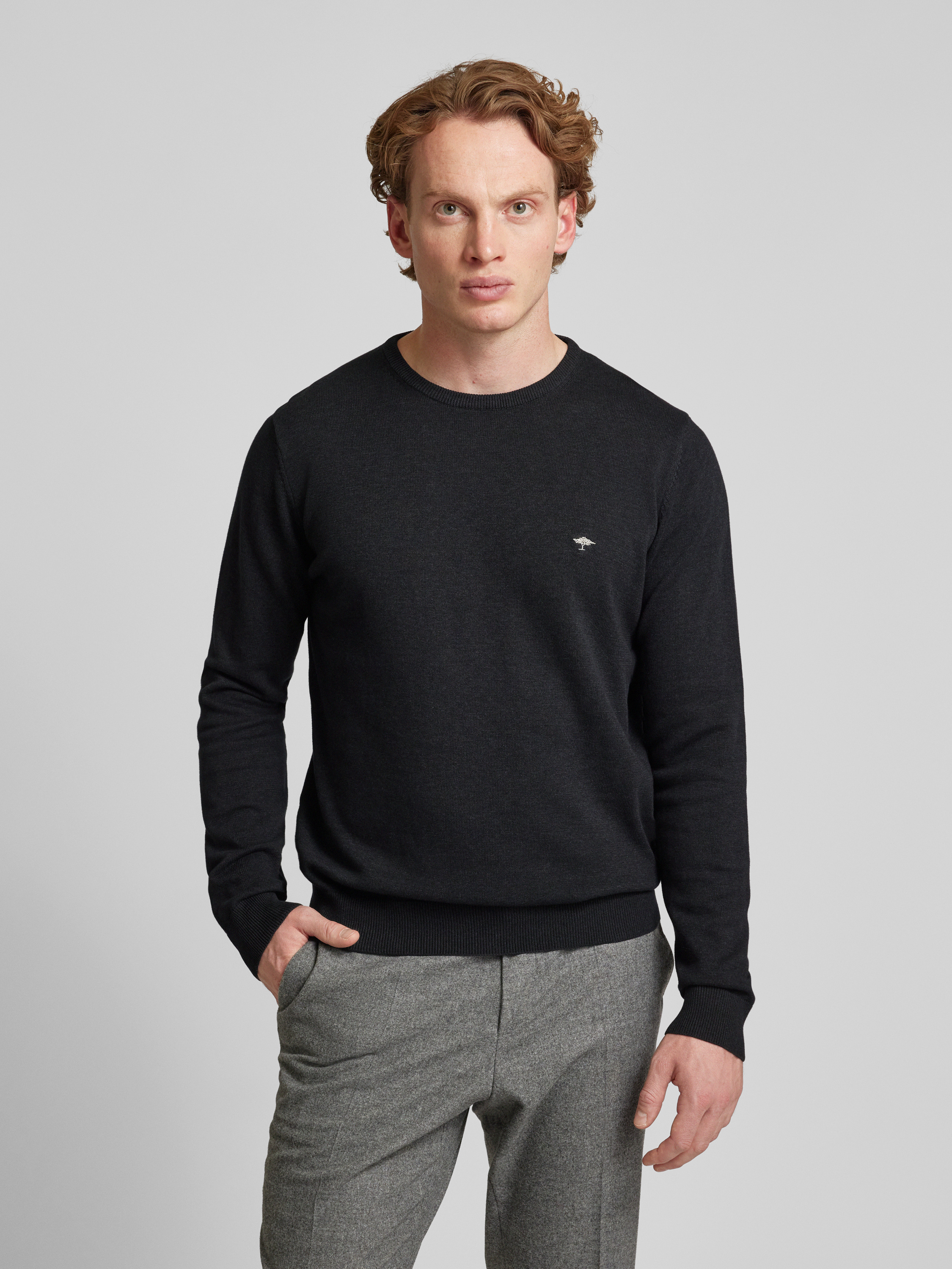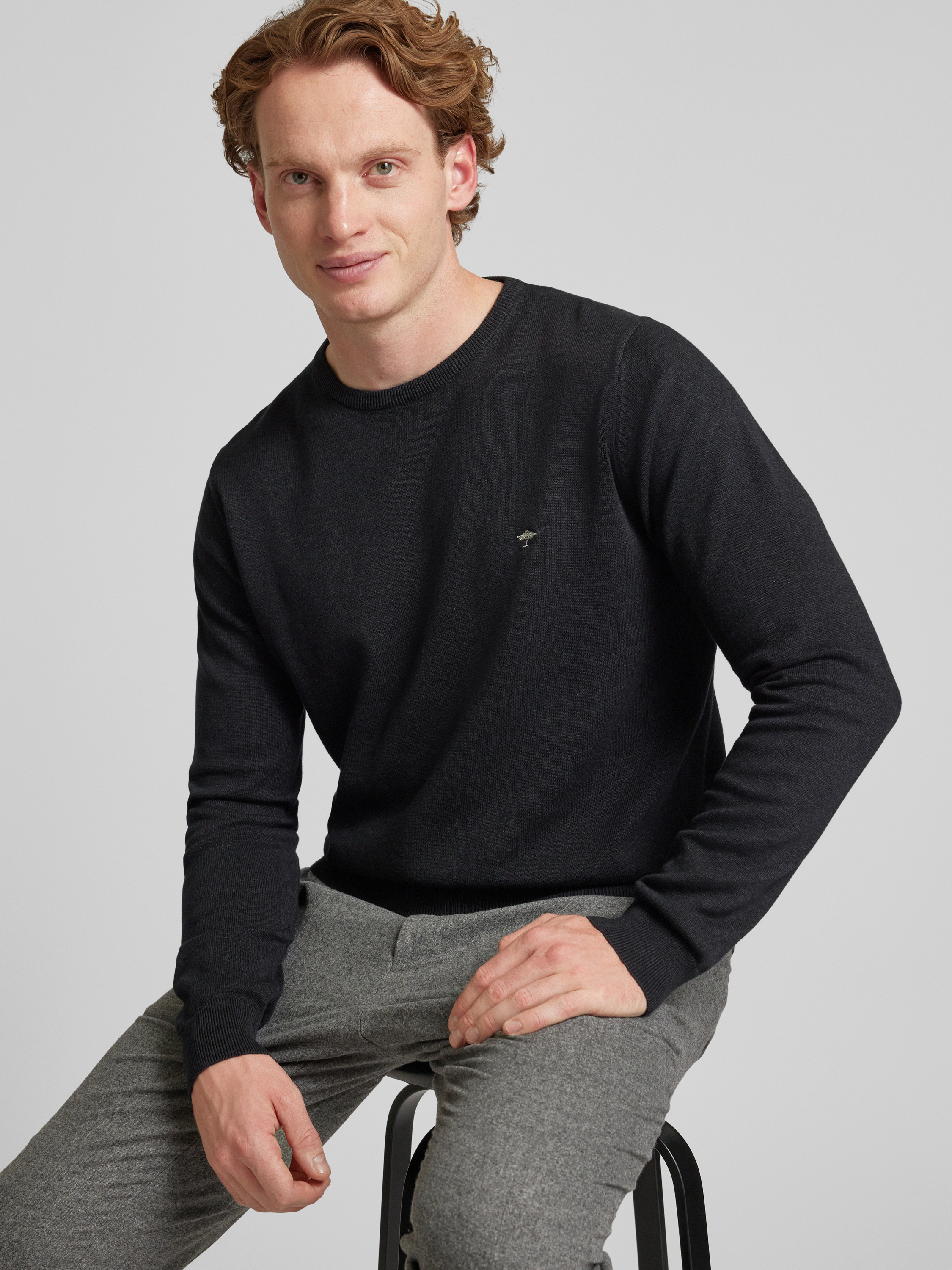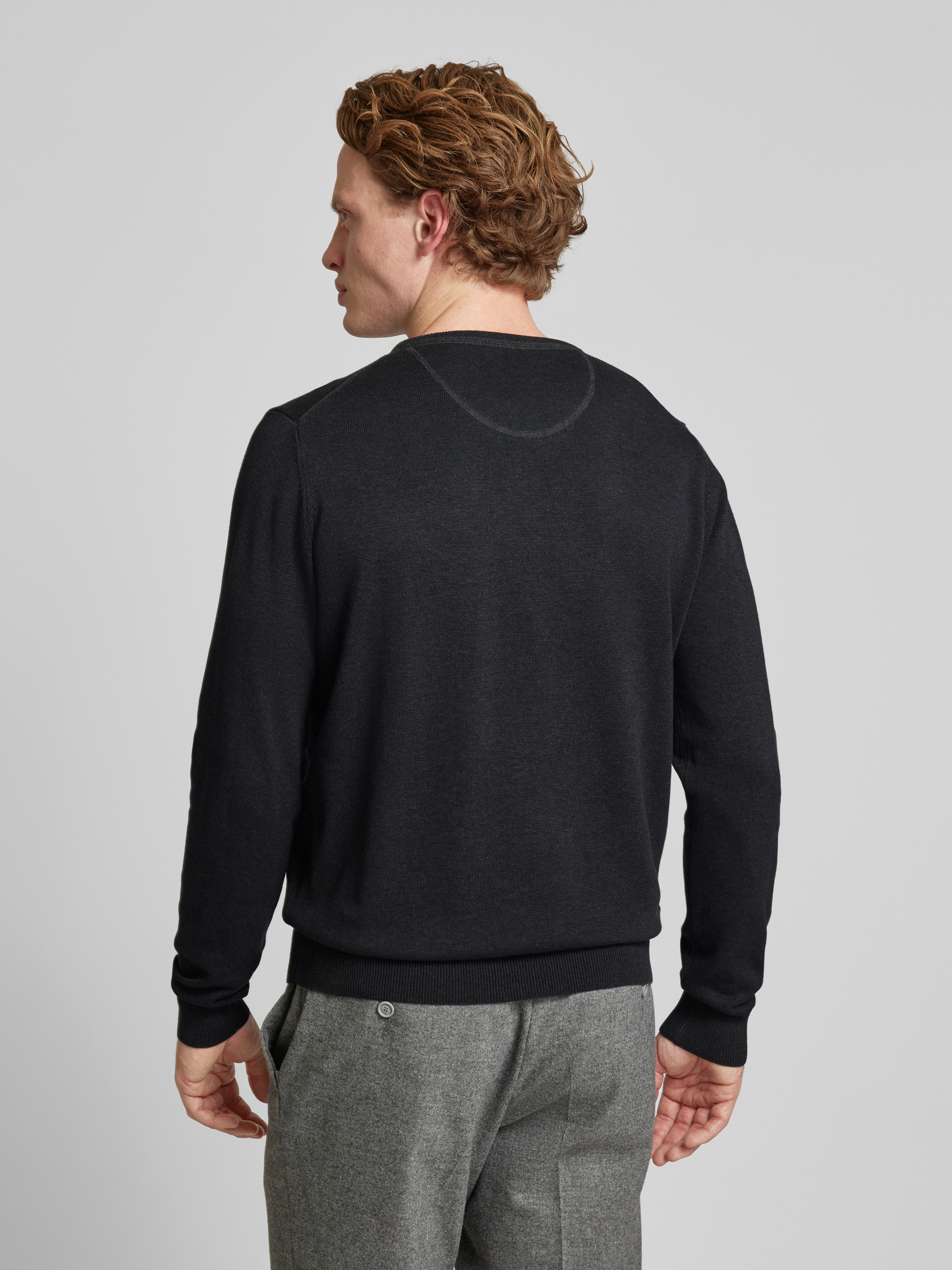 Fynch-HattonStrickpullover mit Label-Stitching Modell 'Superfine' in anthrazit melange