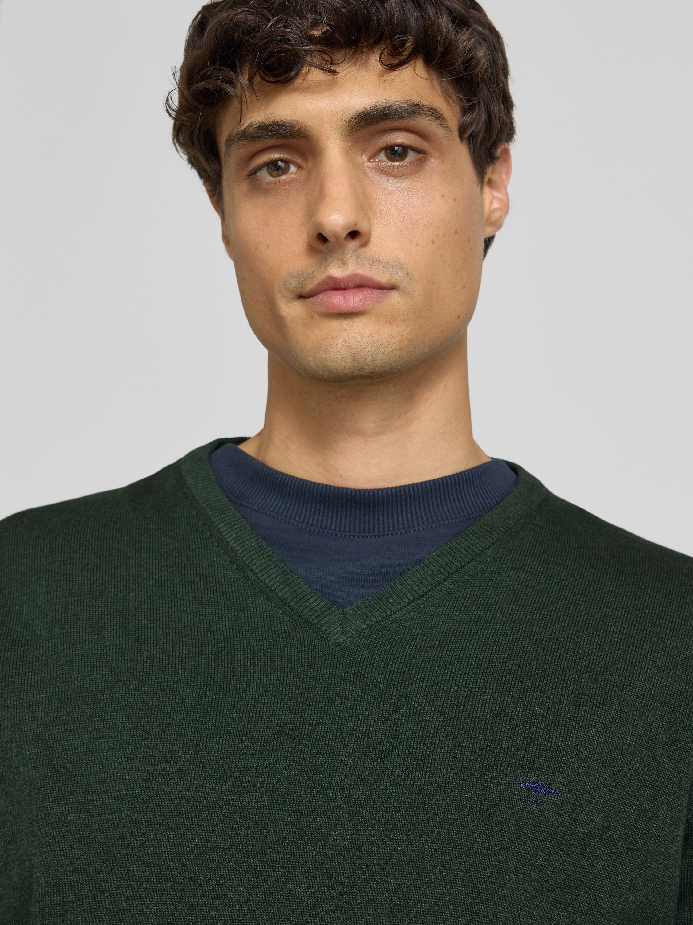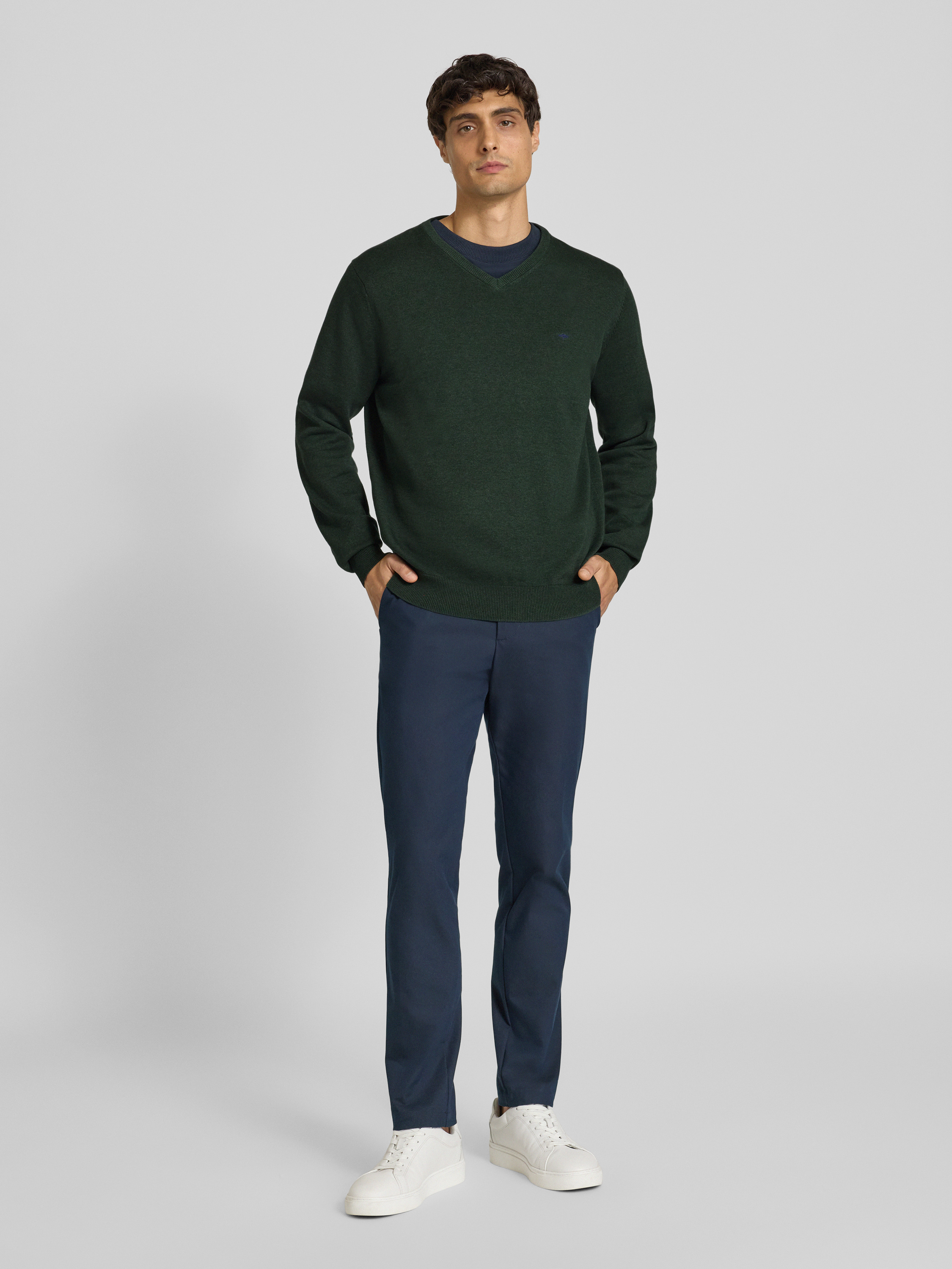 Der Herren Strickpullover von Fynch-Hatton liegt dank reiner Baumwolle angenehm auf der Haut und sorgt durch seine körpernahe Passform für einen gepflegten Auftritt. Ein V-Ausschnitt ergänzt das klassische Design, während das dezente Logo-Detail einen unaufdringlichen Akzent setzt. Dieses Modell eignet sich sowohl für den Alltag als auch für entspannte Stunden.