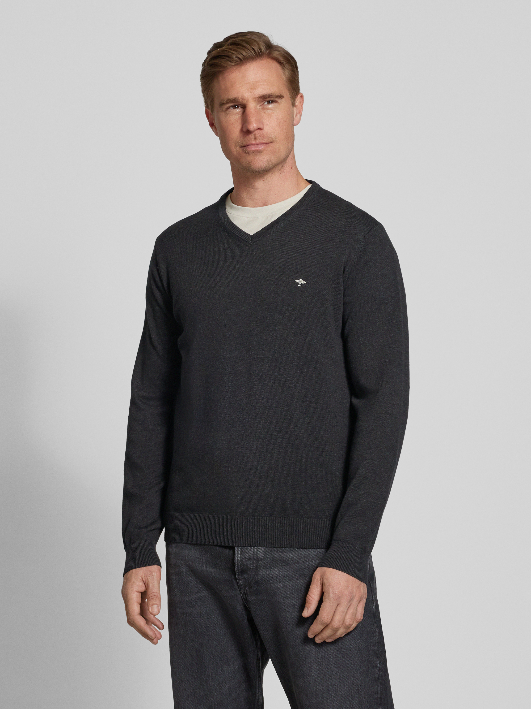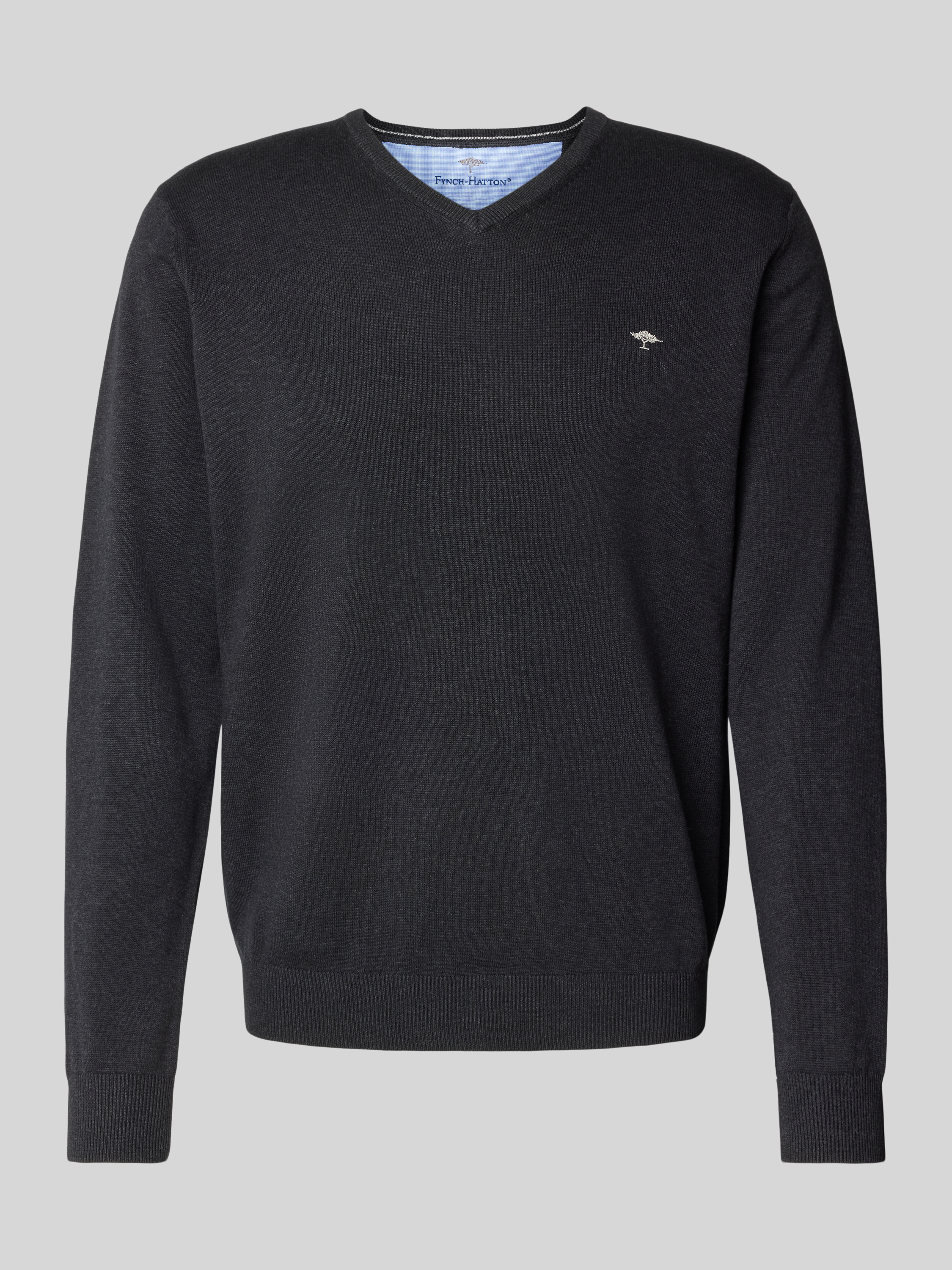 • Fynch-Hatton Strickpullover mit Logo-Stitching Anthrazit