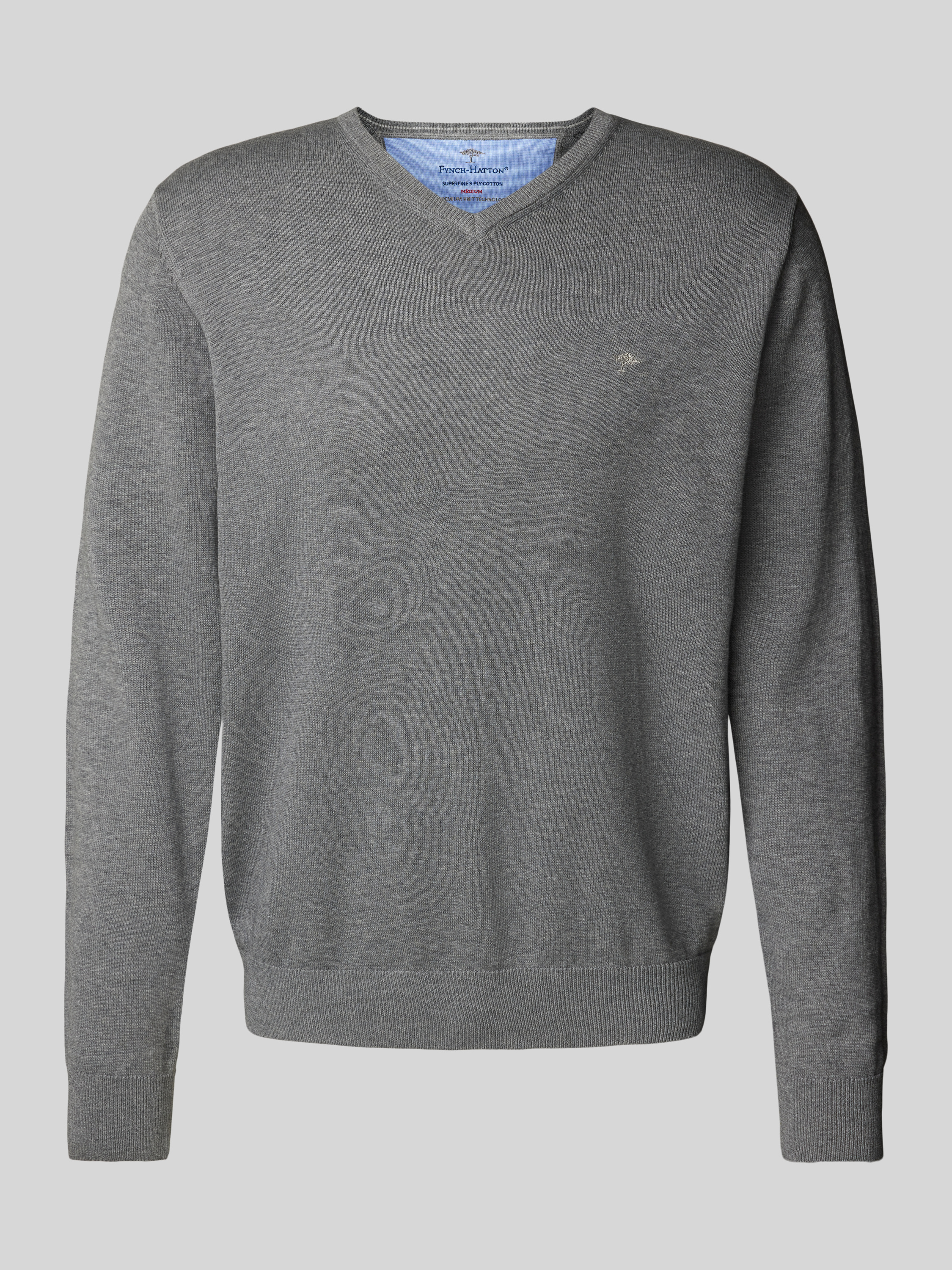Fynch-HattonStrickpullover mit Logo-Stitching in silber melange