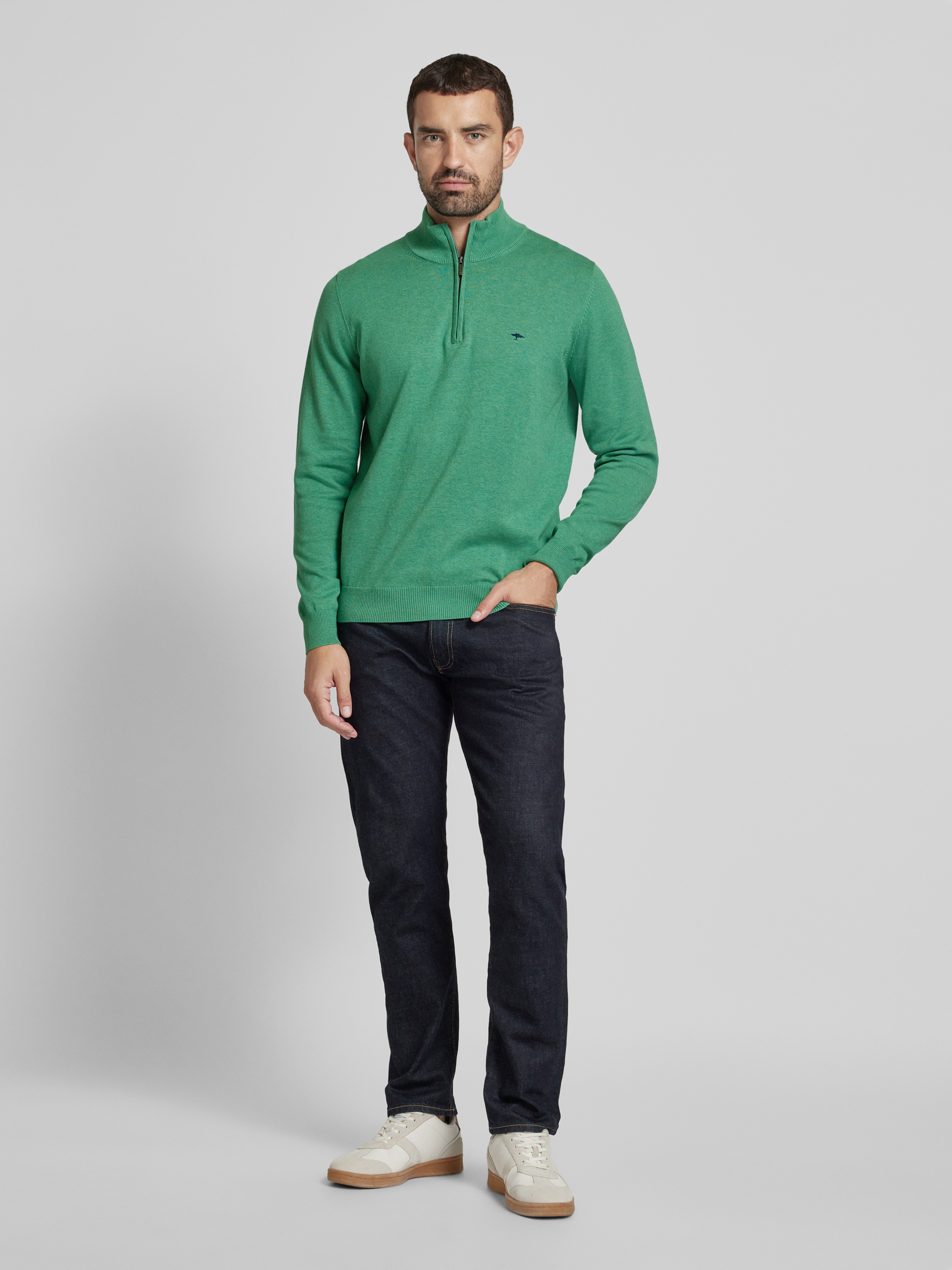 Fynch-HattonStrickpullover mit Troyer-Kragen in hellgruen