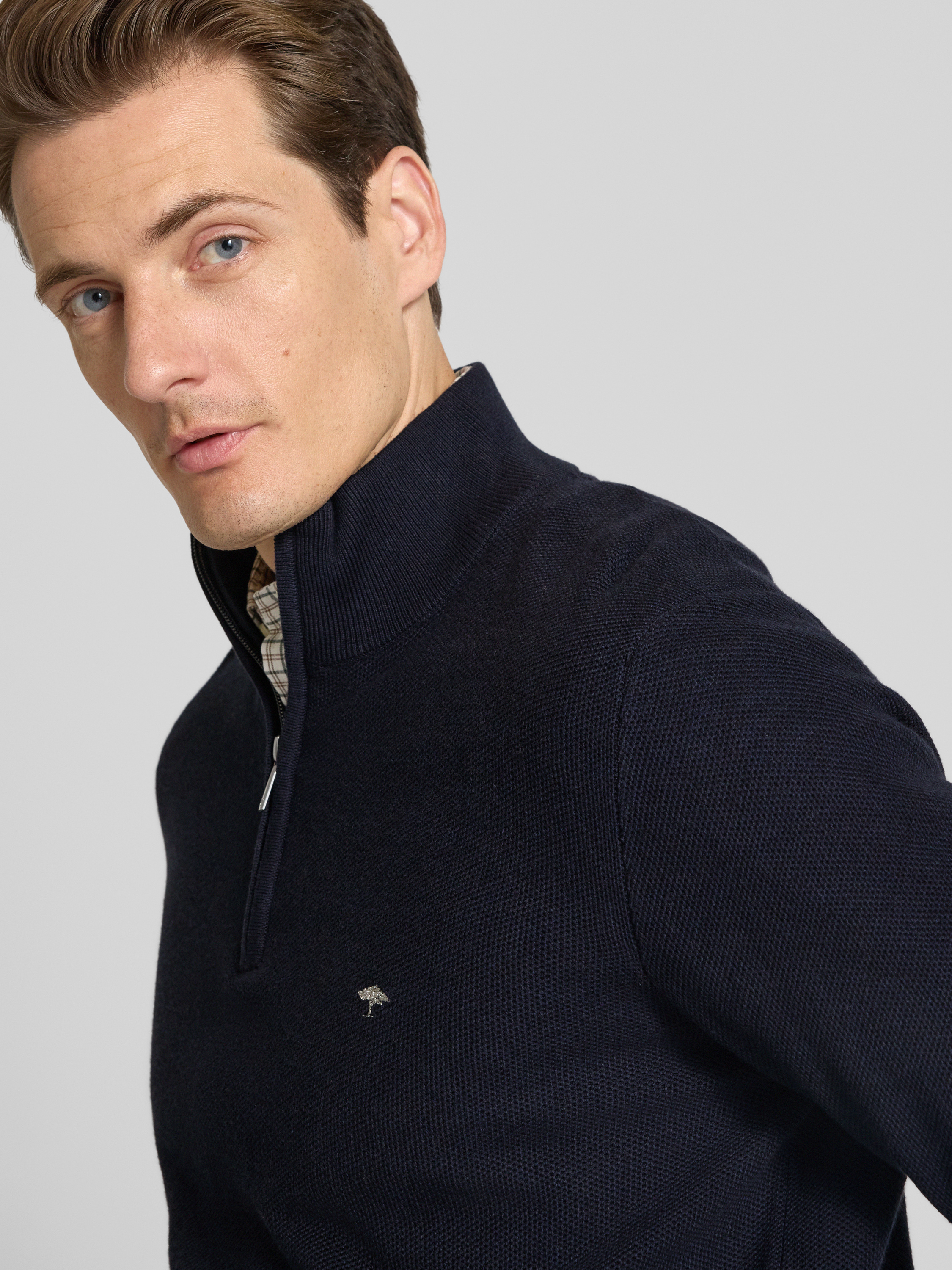 • Fynch-Hatton Strickpullover mit Troyer-Kragen Marine
