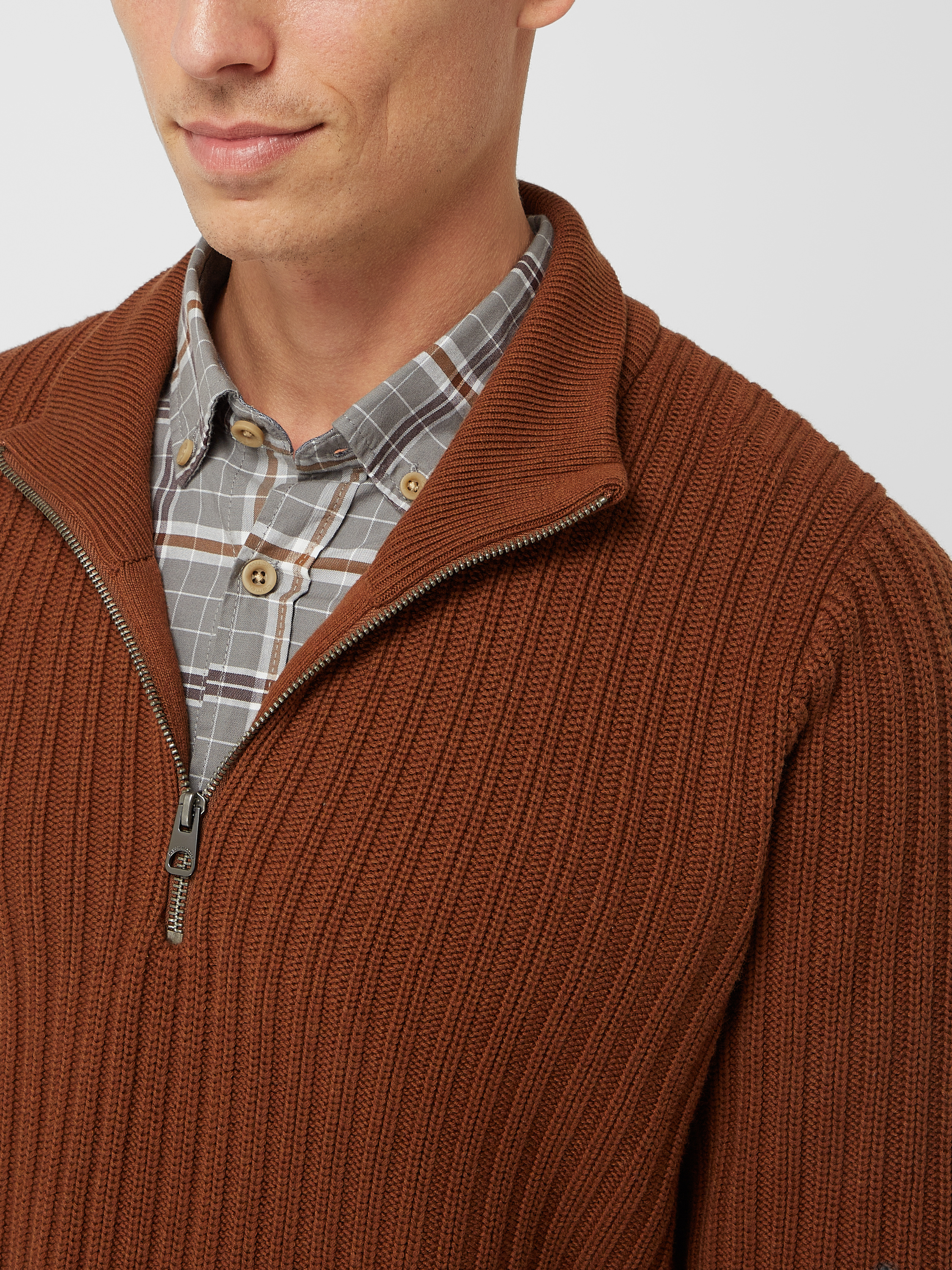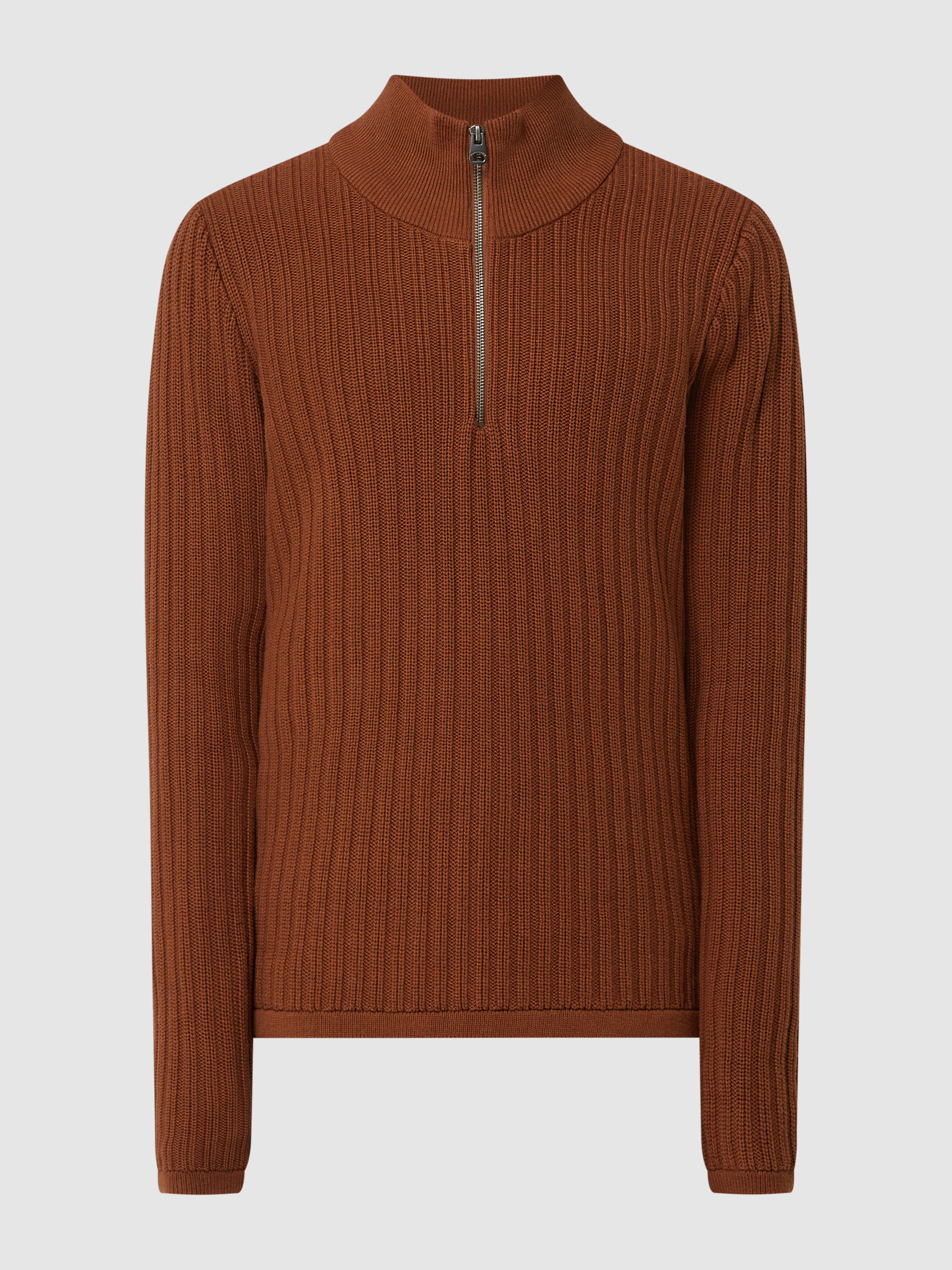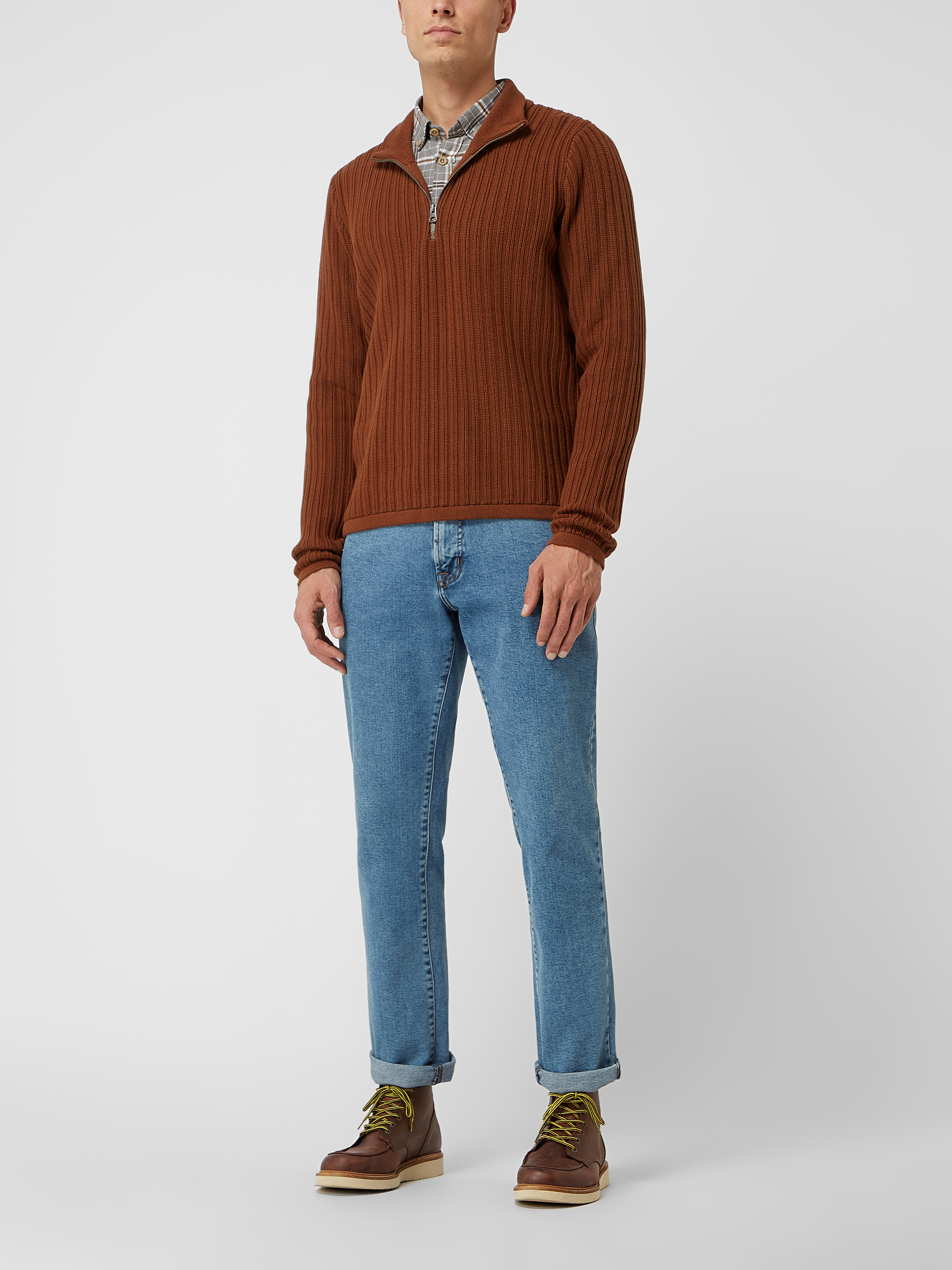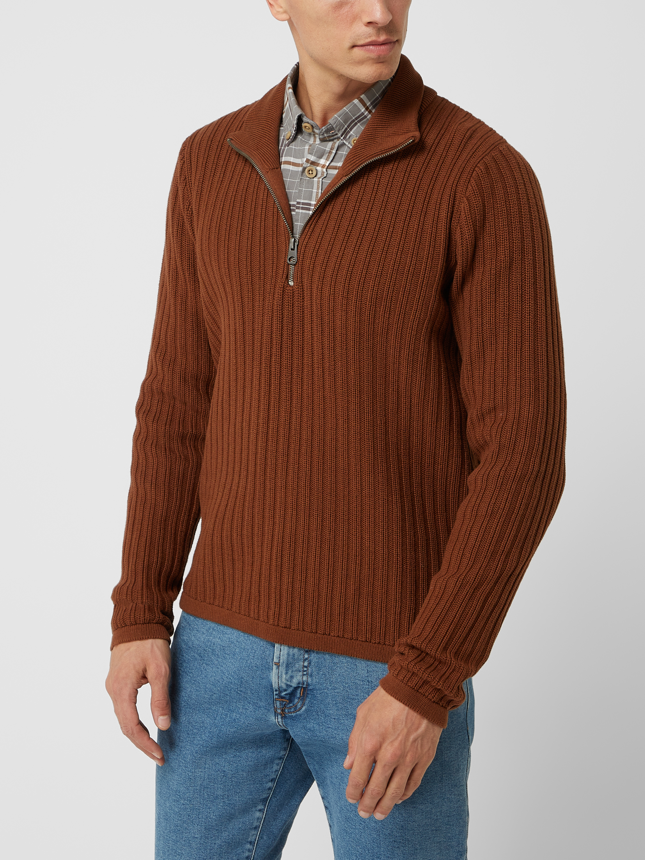 Der Troyer von Fynch-Hatton ist aus reiner Baumwolle gefertigt. Er kommt in gerader Passform mit Rippenstruktur und kurzem Reißverschluss.