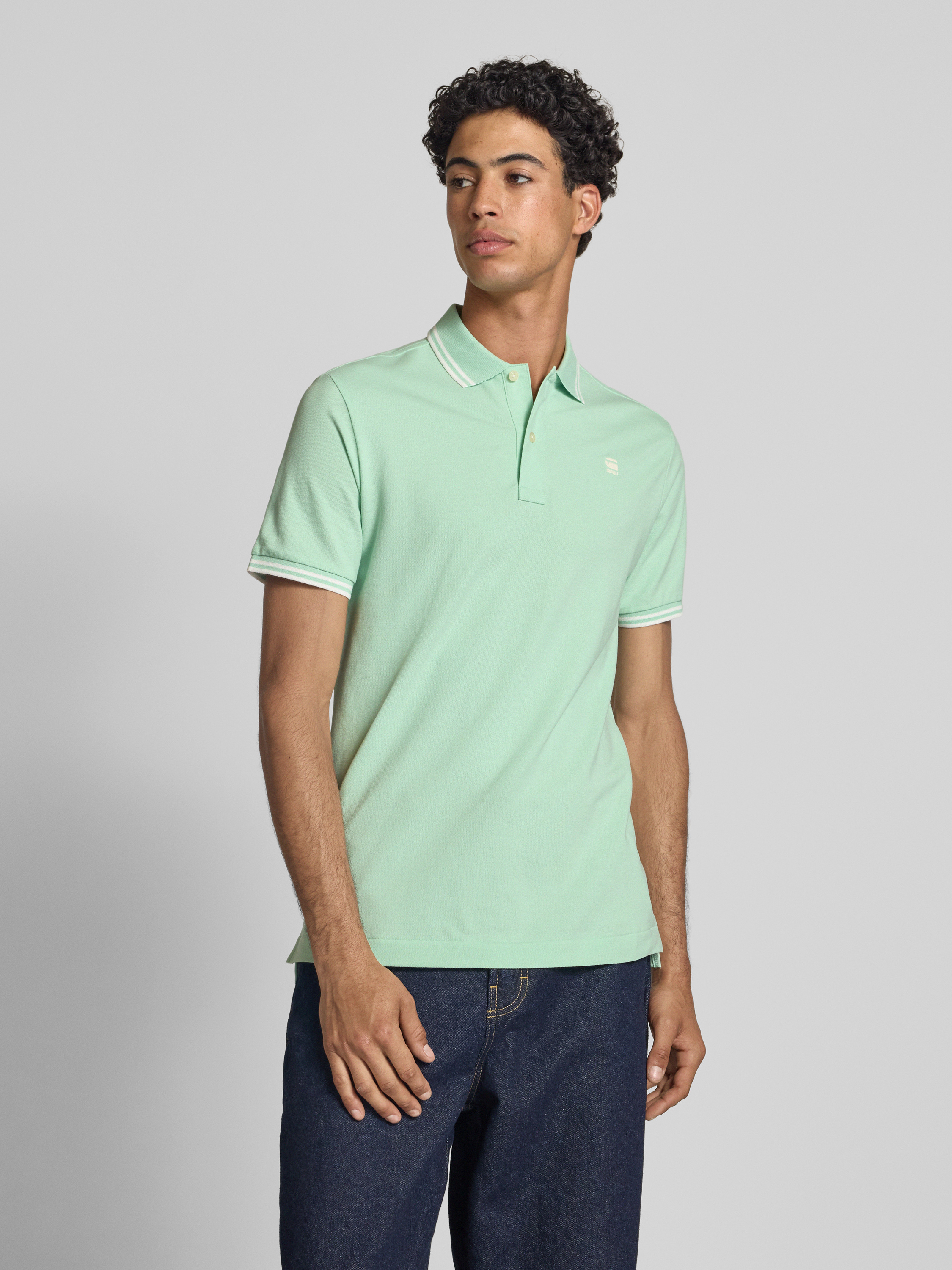 G-Star RawSlim Fit Poloshirt mit Label-Stitching Modell 'Dunda' in tuerkis