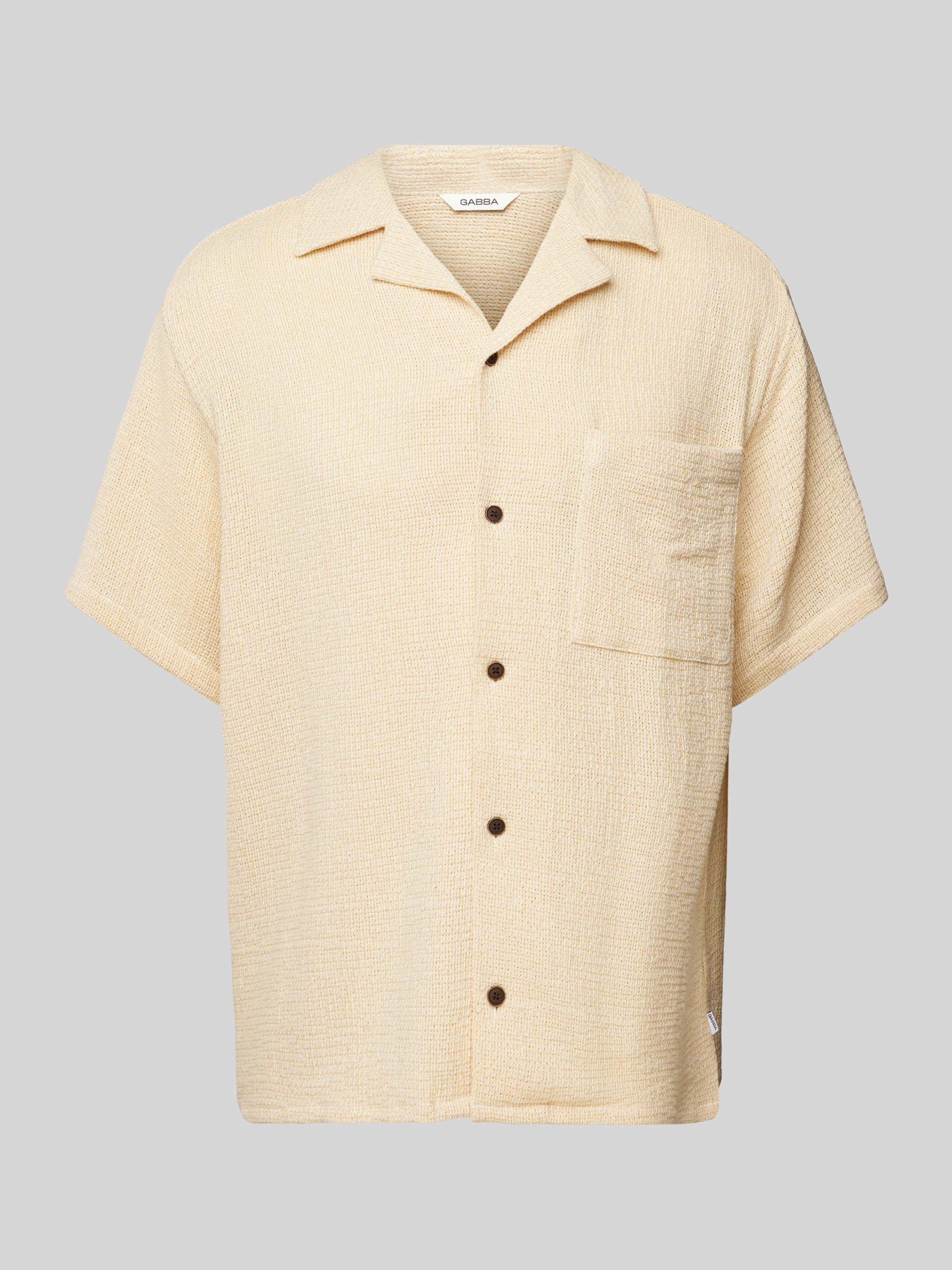 Das Herren Freizeithemd von GABBA, Modell 'Gos Griglia Resort', eignet sich durch seinen Regular Fit und den luftigen Baumwoll-Mix ideal für entspannte Tage. Mit seinem unifarbenen Design und dem klassischen Reverskragen lässt es sich vielseitig kombinieren. Die praktische Brusttasche bietet zusätzlichen Komfort.