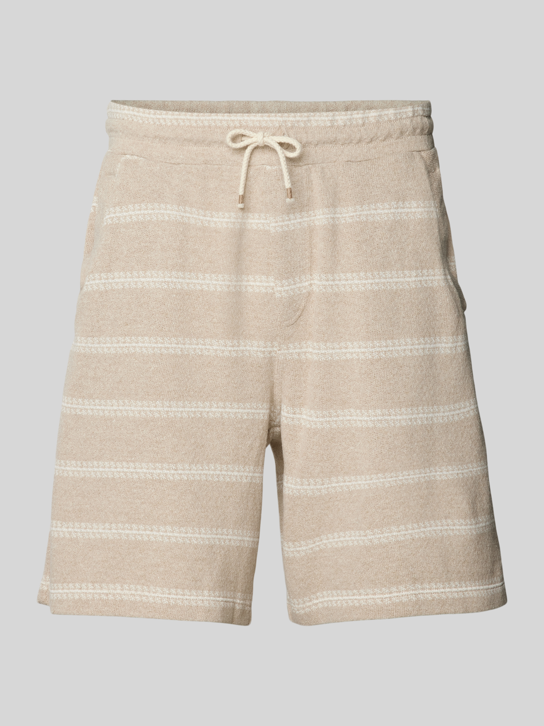 Die Regular Fit Shorts mit Streifenmuster von GABBA, Modell 'Fede Win', eignen sich ideal für entspannte Tage. Der Baumwoll-Mix bietet ein angenehmes Tragegefühl, während der elastische Bund mit Tunnelzug für Flexibilität sorgt. Seitliche Eingrifftaschen runden das funktionale Design ab.