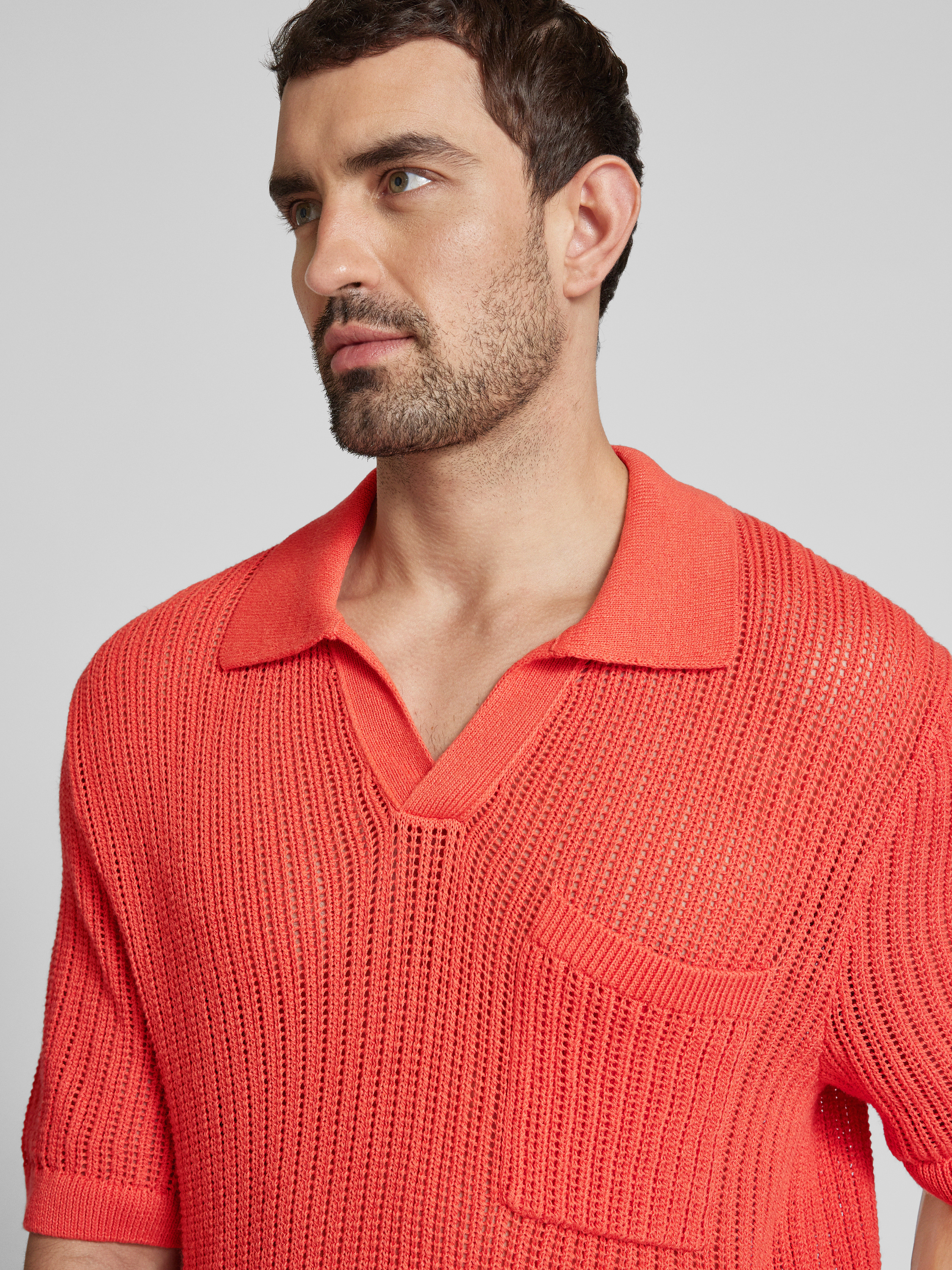 GantPoloshirt aus Leinen-Mix in unifarbenem Design in orange