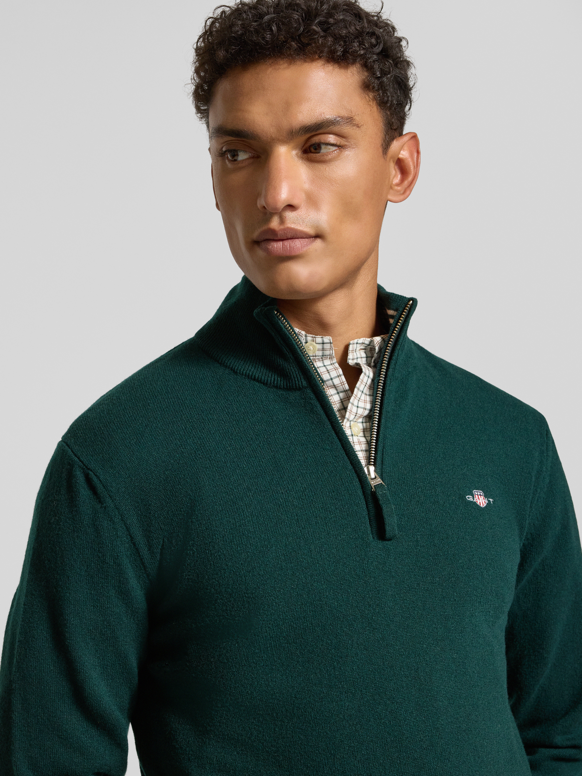 GantRegular Fit Pullover mit Strick-Optik aus reiner Lammwolle in dunkelgruen