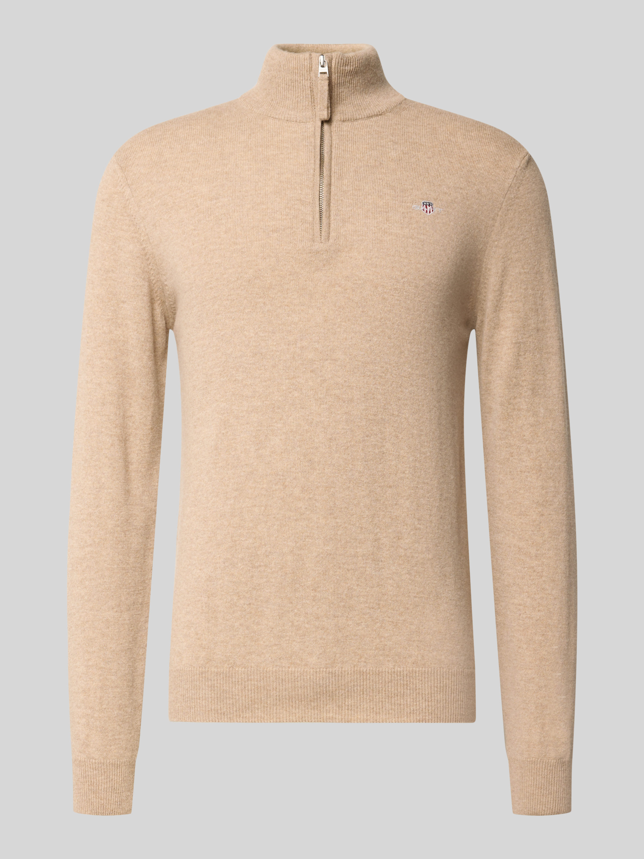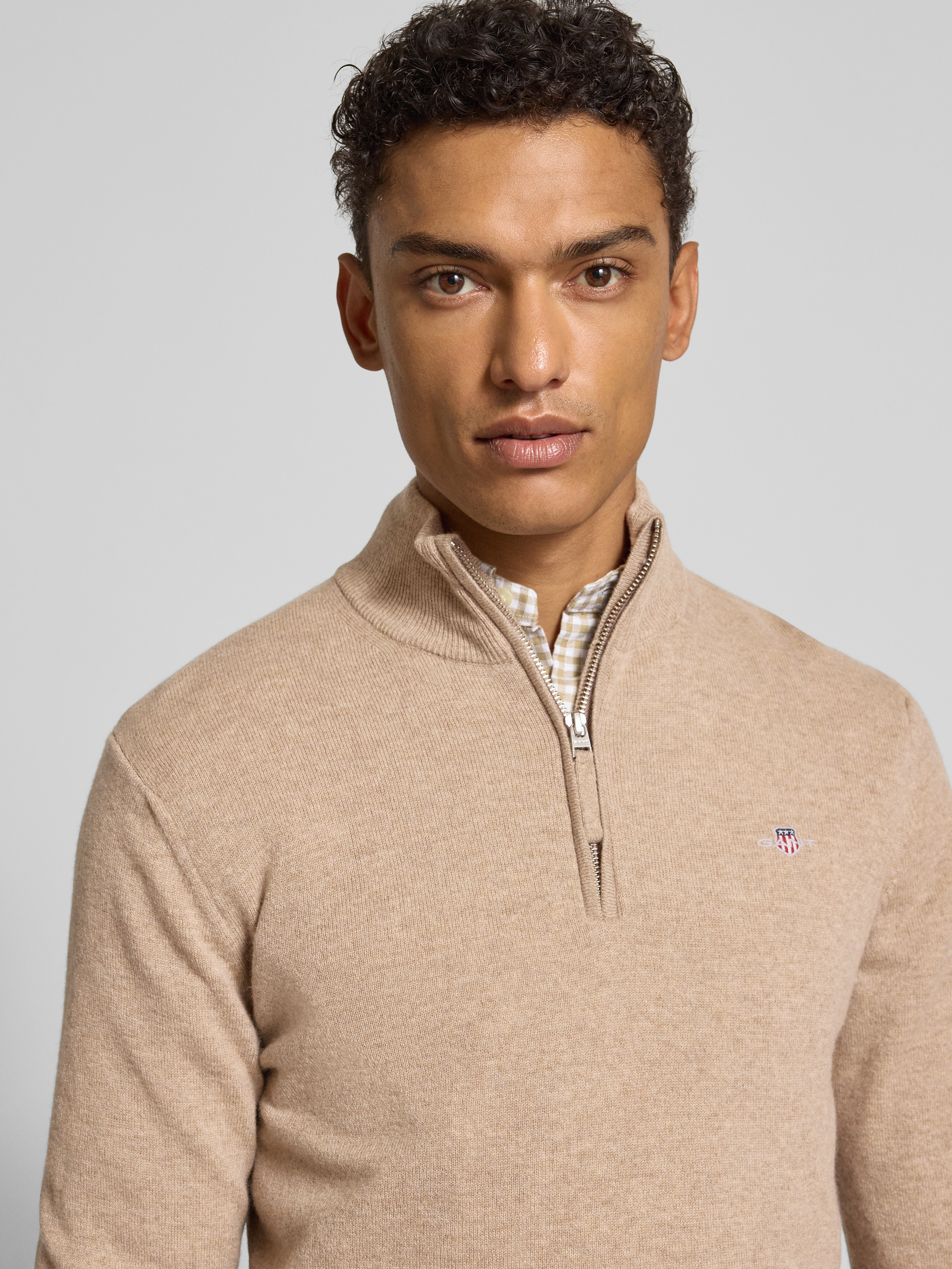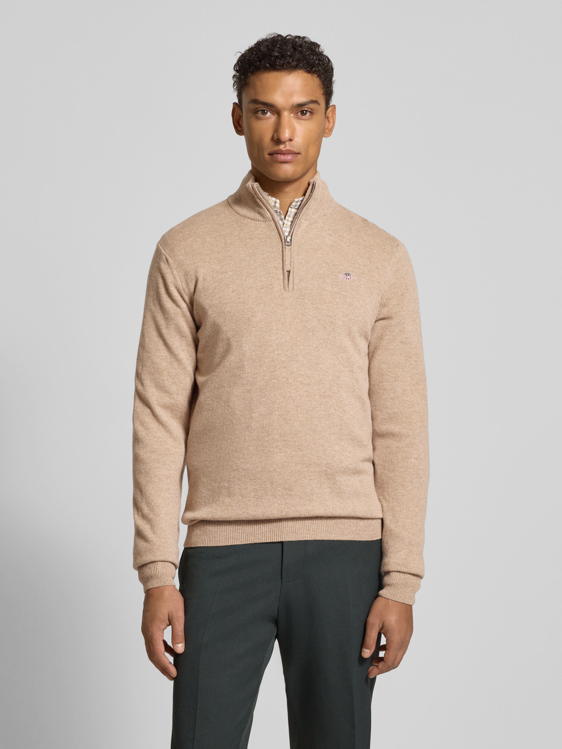GantRegular Fit Pullover mit Strick-Optik aus reiner Lammwolle in sand melange