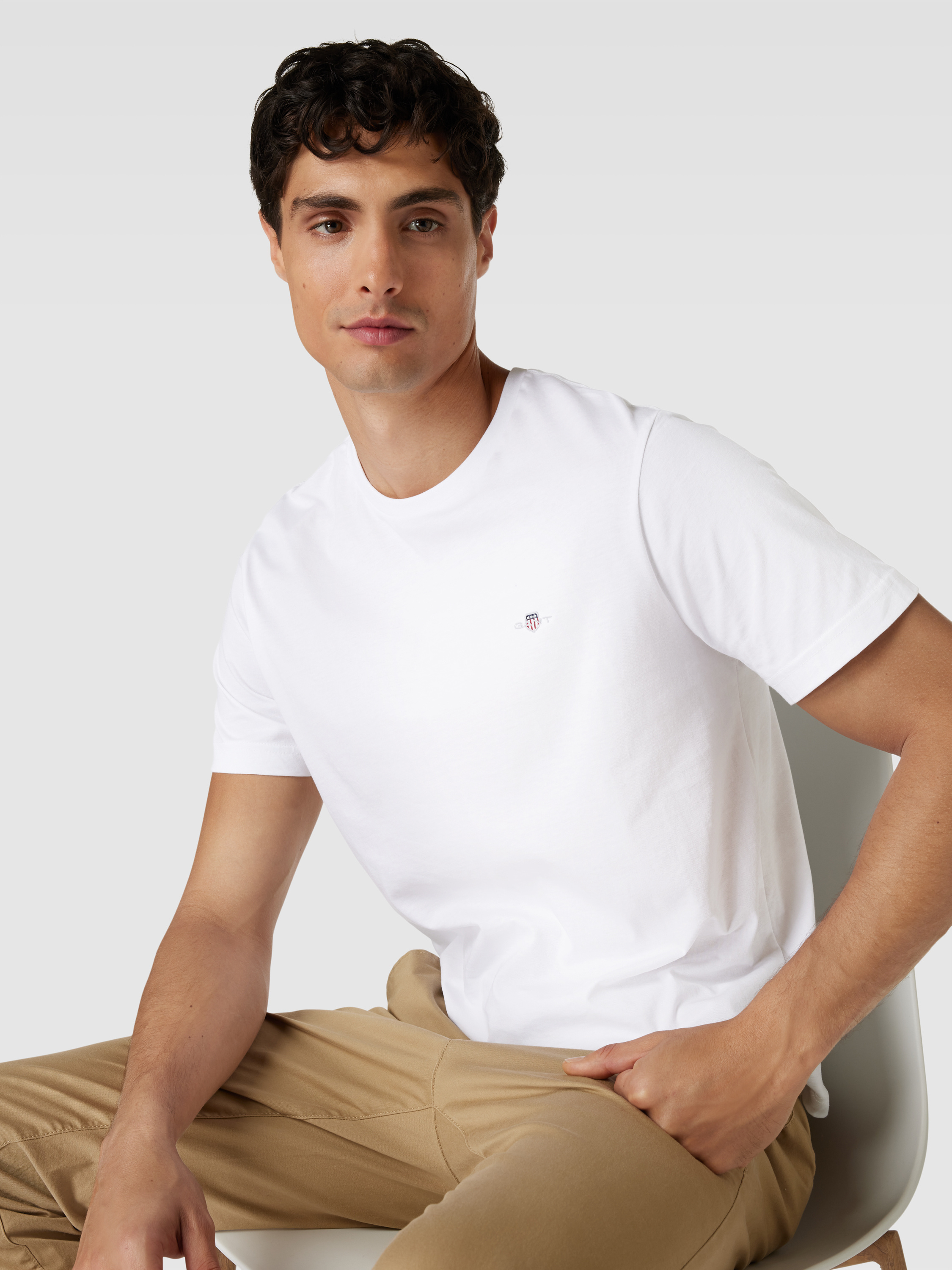 Das Herren T-Shirt von GANT, Modell 'SHIELD', aus reiner Baumwolle kombiniert Komfort mit einem schlichten, unifarbenen Design. Dank des Regular Fits und des klassischen Rundhalsausschnitts eignet es sich ideal für vielseitige Alltagskombinationen. Ein dezentes Label-Stitching verleiht dem Shirt eine subtile Note.