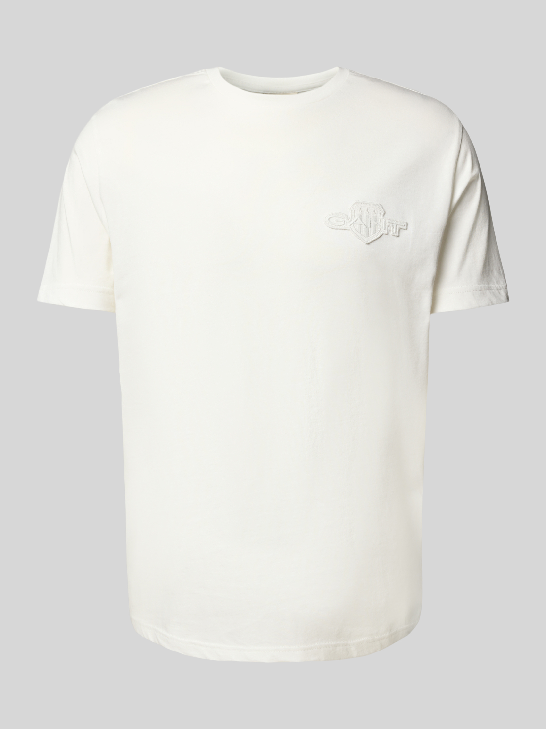 GantRegular Fit T-Shirt mit Label-Stitching und Rundhalsausschnitt in offwhite