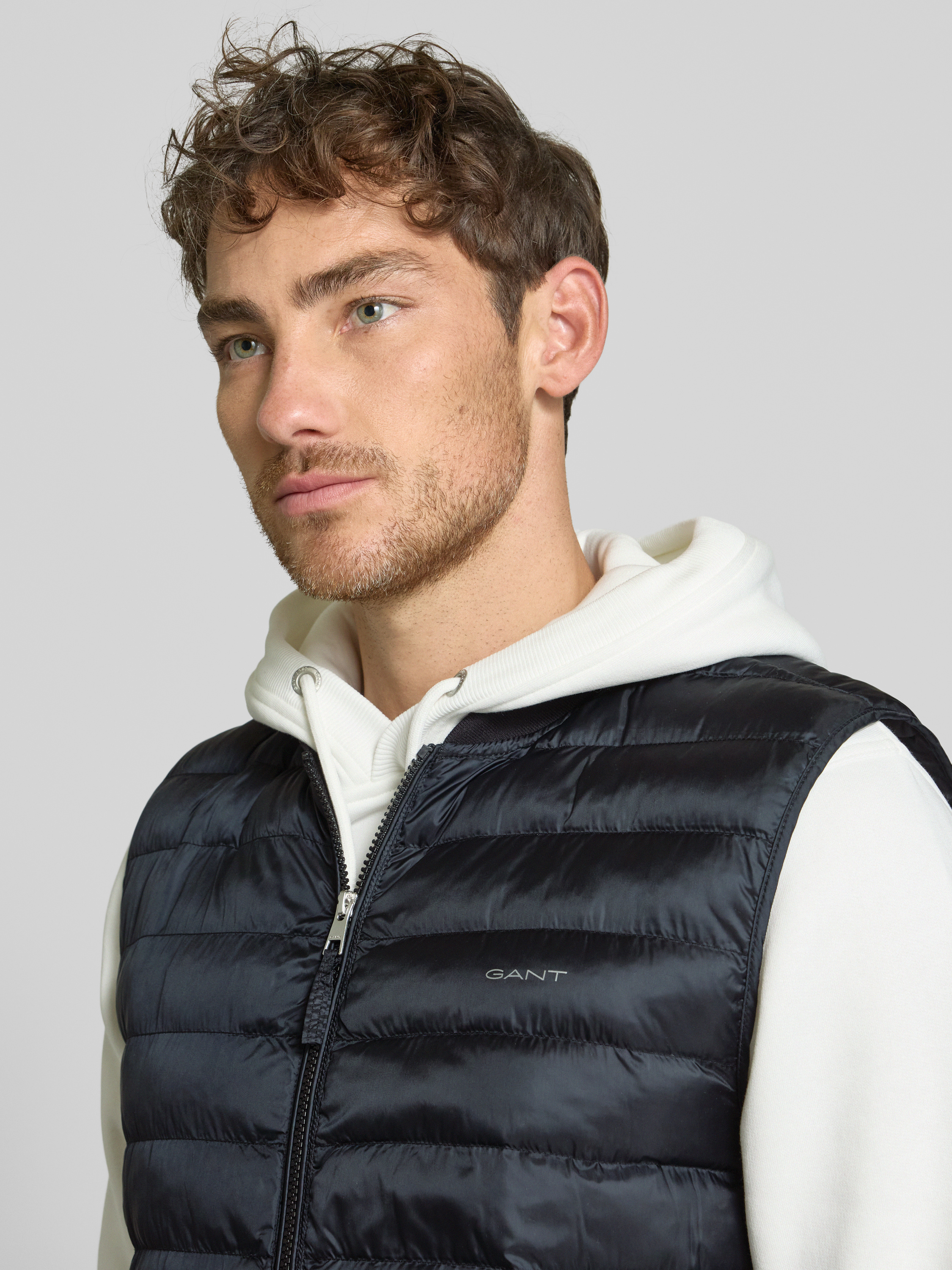 Die Herren Steppweste von Gant, geschnitten in einem geraden Stil, vereint Funktionalität und Komfort. Der Stehkragen bietet zusätzlichen Schutz, während die Eingrifftaschen Platz für Alltagsgegenstände schaffen. Der dezente Label-Print rundet das Design stilvoll ab und verleiht dem Träger eine elegante Note.