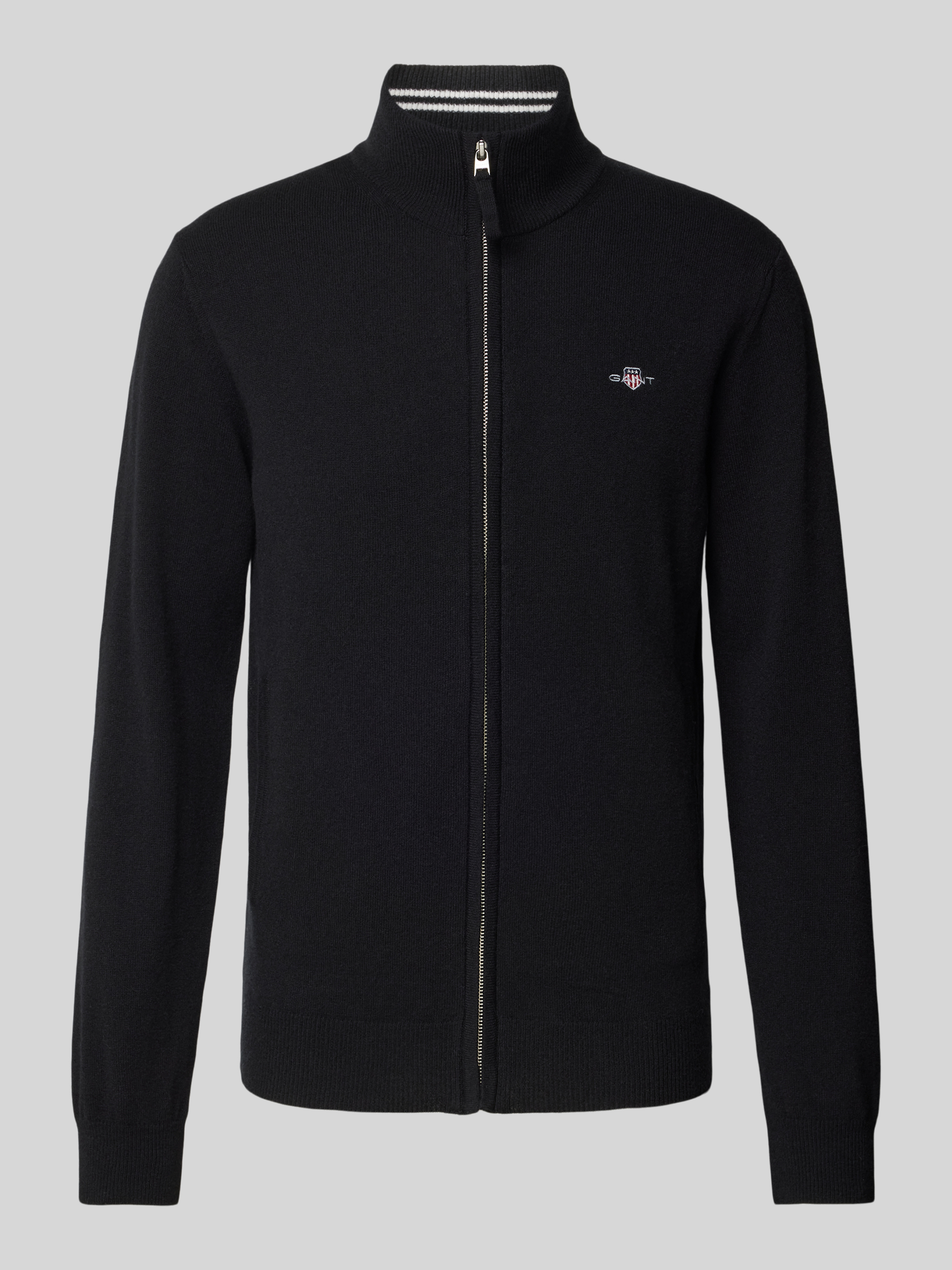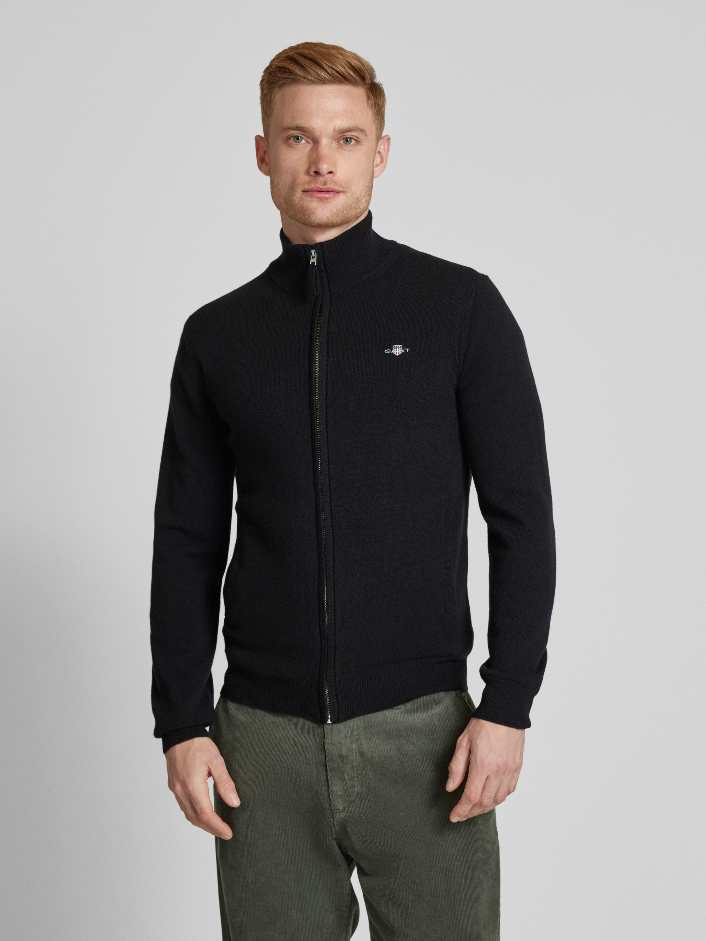 Die Herren Strickjacke von GANT kombiniert eine zeitlose Silhouette mit dem warmen Komfort reiner Lammwolle. Mit ihrem Regular Fit und dem praktischen Stehkragen eignet sie sich ideal für kühle Tage. Die Eingrifftaschen bieten zusätzliche Funktionalität und einen lässigen Look.