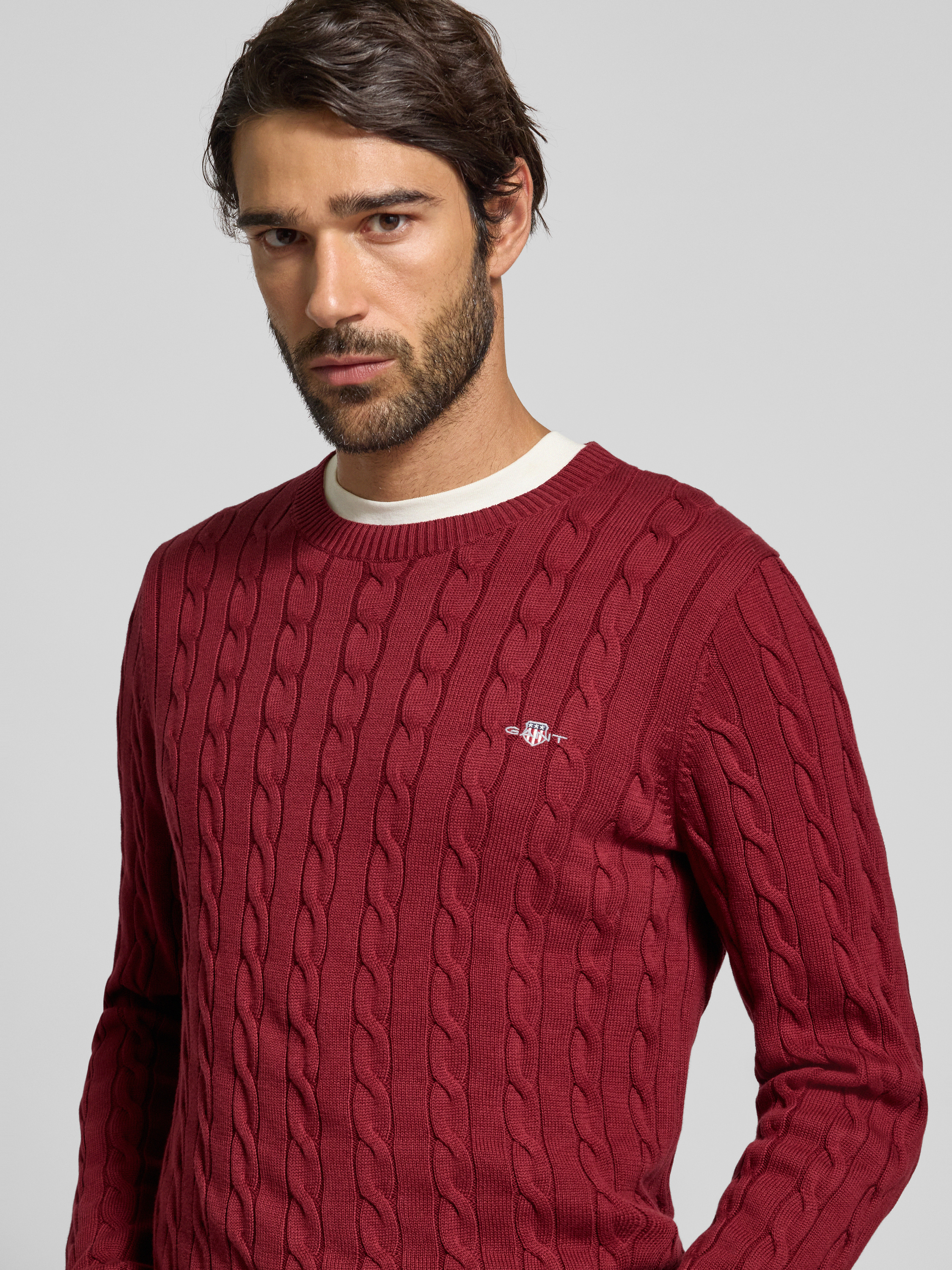 GantStrickpullover mit gerippten Abschlüssen in bordeaux