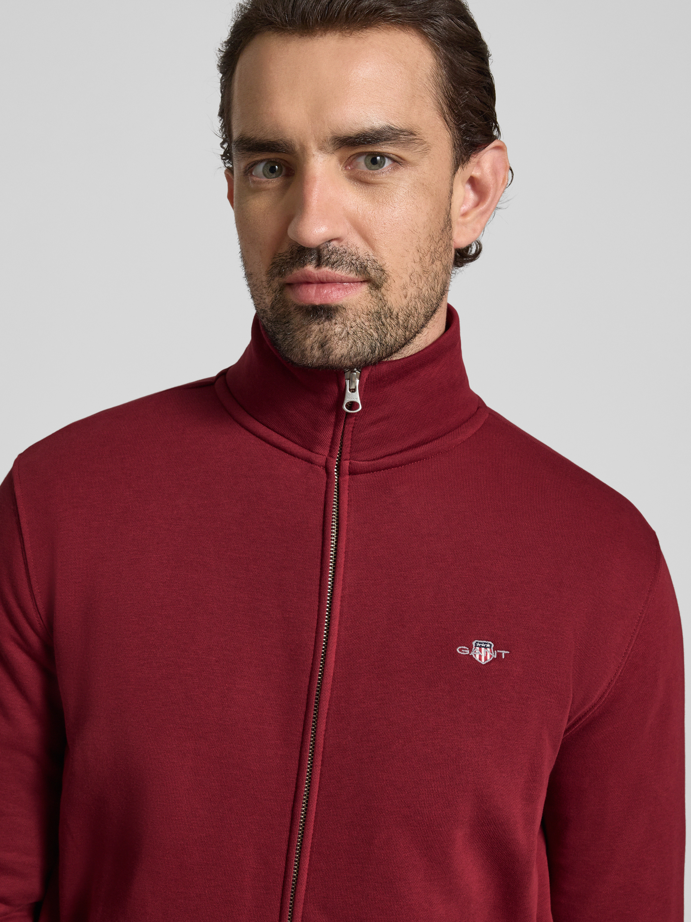 Die Herren Sweatjacke von Gant verbindet einen geraden Schnitt mit einem angenehm weichen Baumwoll-Mix, wodurch sie sich vielseitig kombinieren lässt. Ein Stehkragen sorgt für eine moderne Silhouette, während das dezente Label-Stitching einen sportlichen Akzent setzt. Durch das unkomplizierte Design eignet sich das Modell für verschiedenste Alltagsmomente.