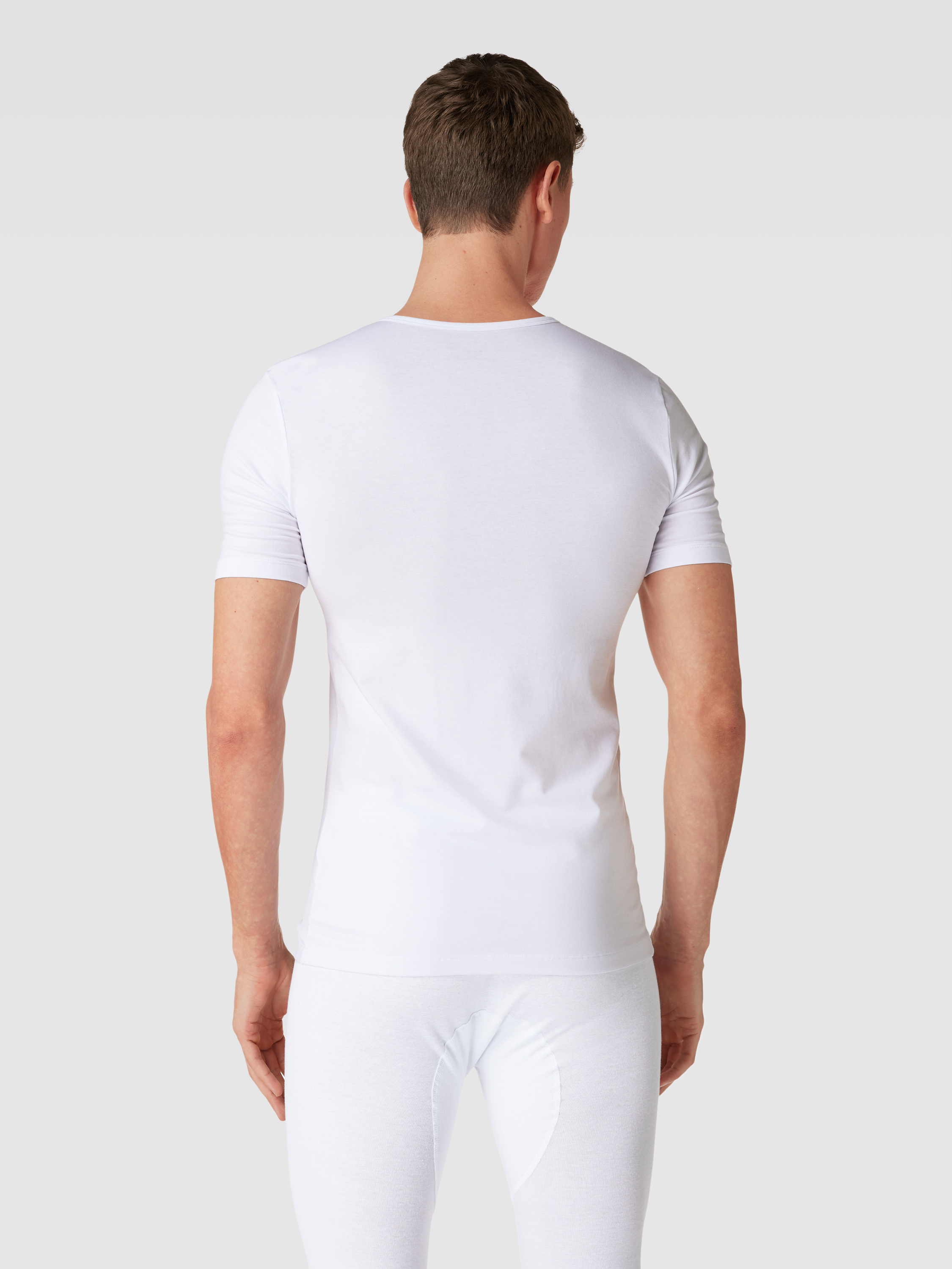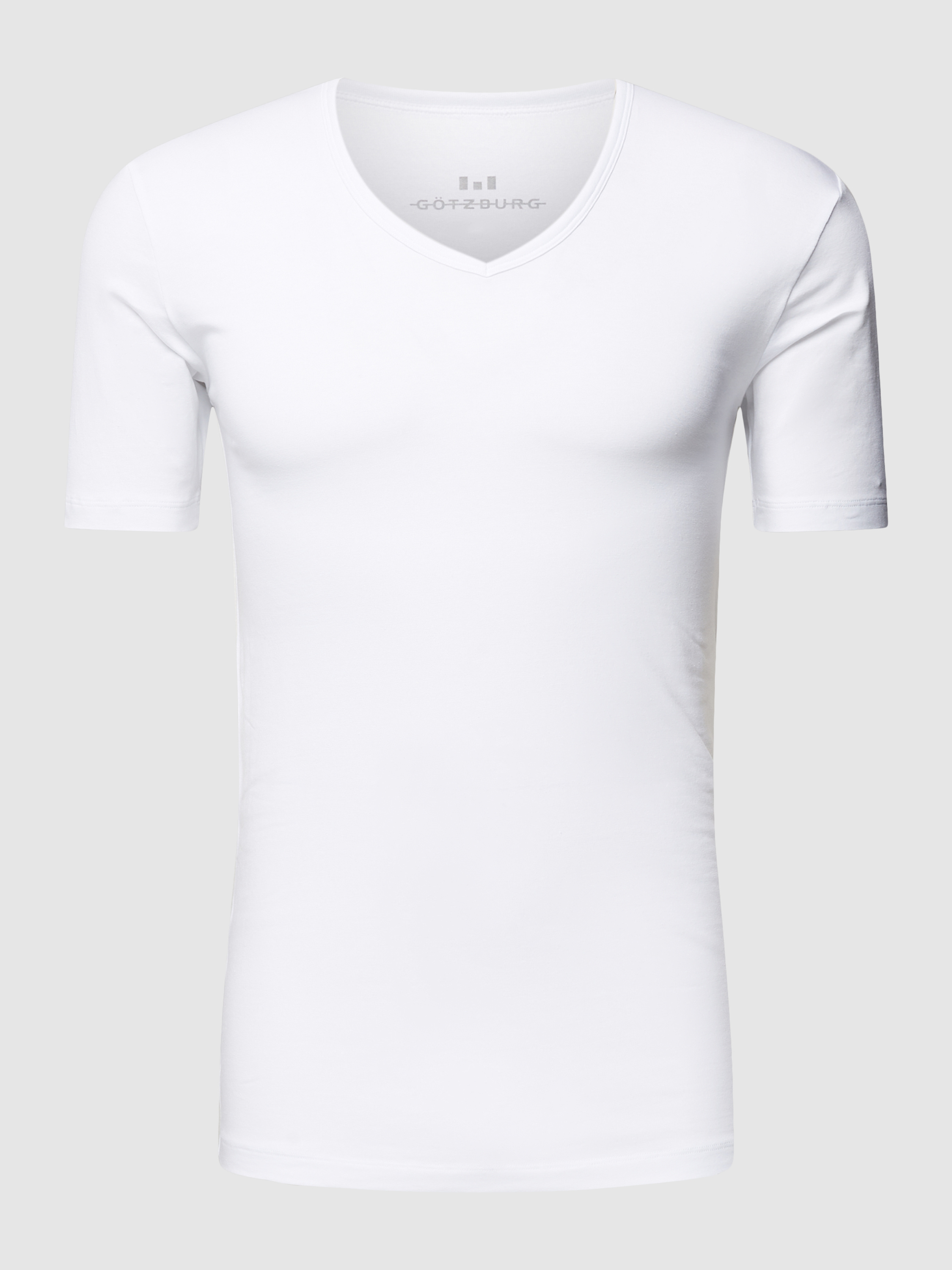 Das Herren Unterhemd von Götzburg Wäsche, Modell 'COMFORTCOTTON', kombiniert einen Baumwoll-Mix mit Stretch-Anteil für optimalen Tragekomfort. Dank des eng anliegenden Schnitts schmiegt es sich angenehm an den Körper an. Der V-Ausschnitt verleiht dem Design eine zeitlose Eleganz.