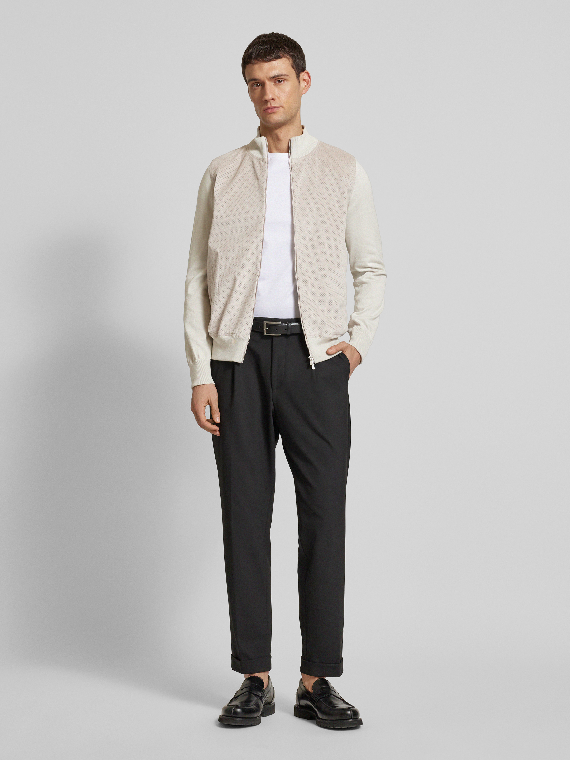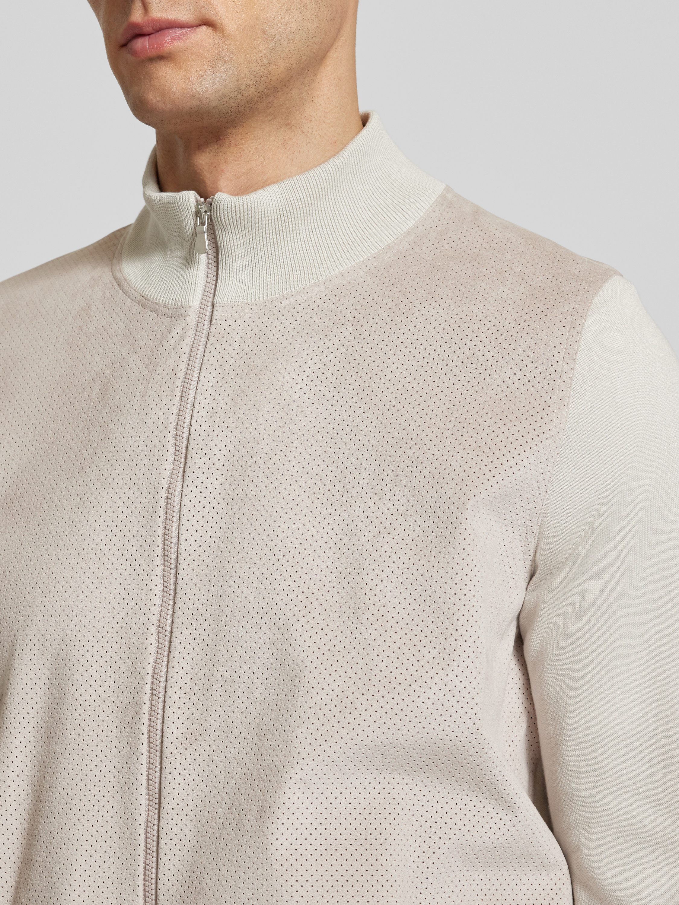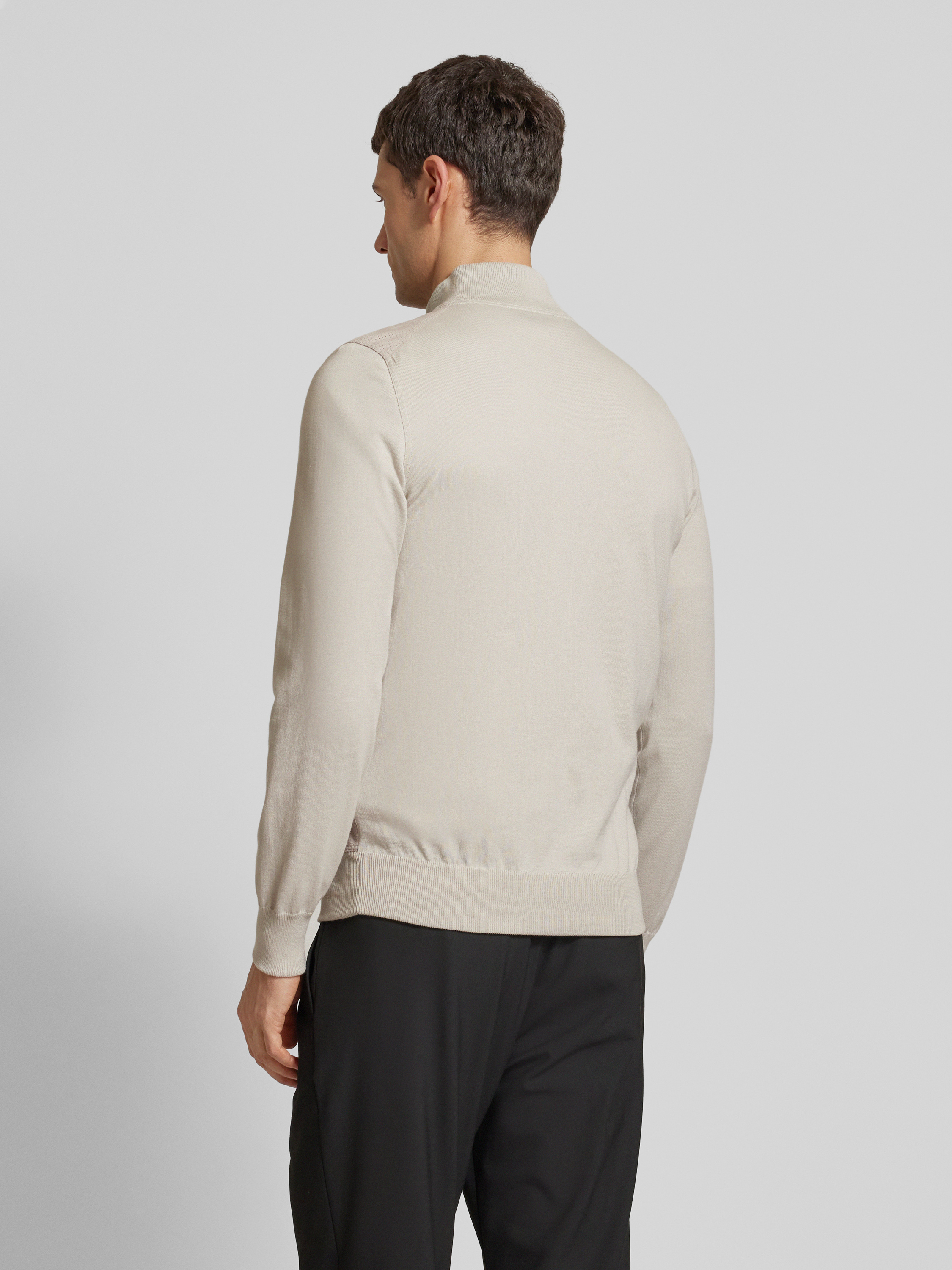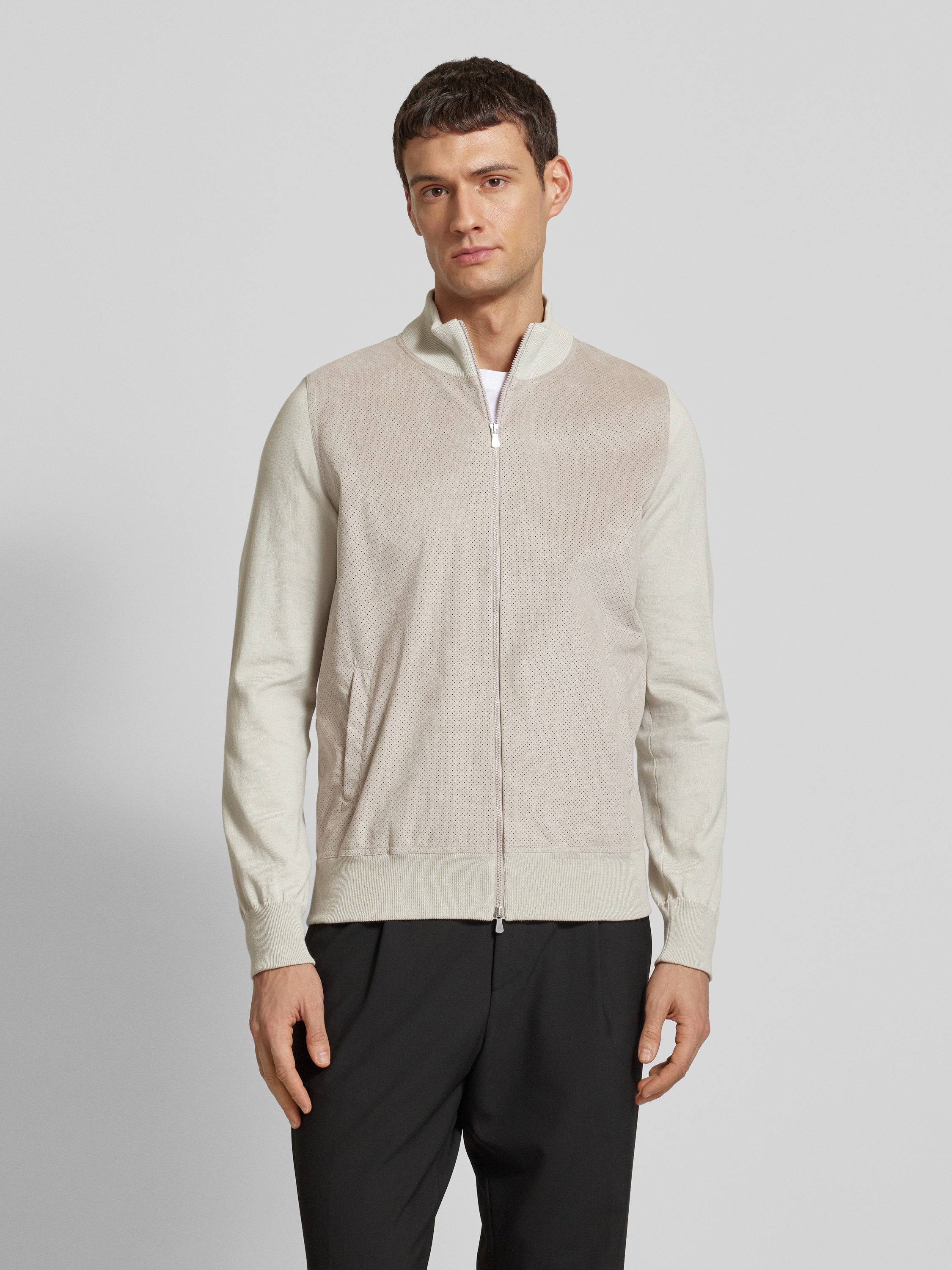 Die Herrenjacke von Gran Sasso kombiniert reine Baumwolle mit einem lockeren Schnitt und einem eleganten Stehkragen, was für eine angenehme Passform sorgt. Das atmungsaktive Lochmuster sorgt für Komfort und Stil, während Leistentaschen praktische Funktionalität bieten. Ideal für entspannte, stilvolle Tage.
