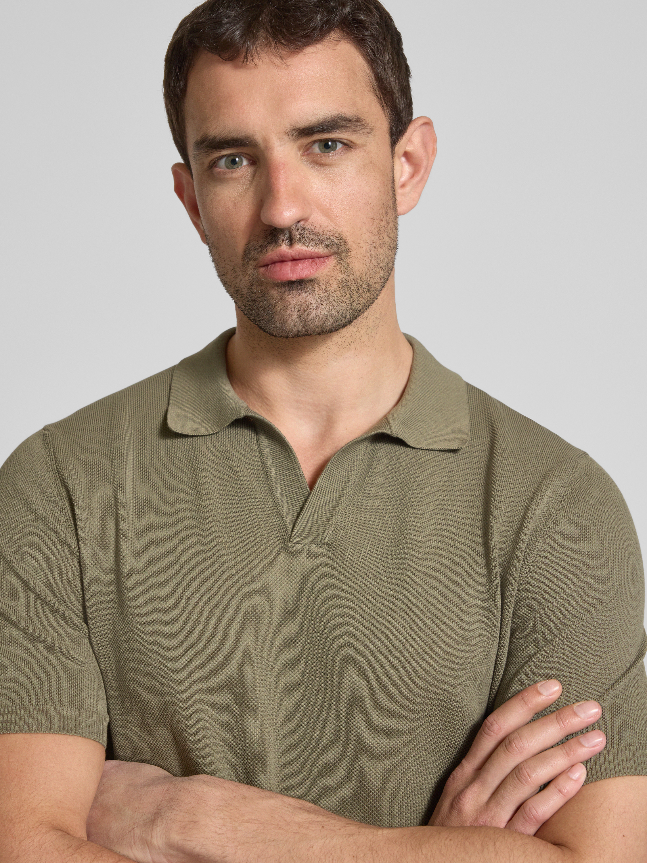 GRAN SASSORegular Fit Poloshirt mit V-Ausschnitt in oliv