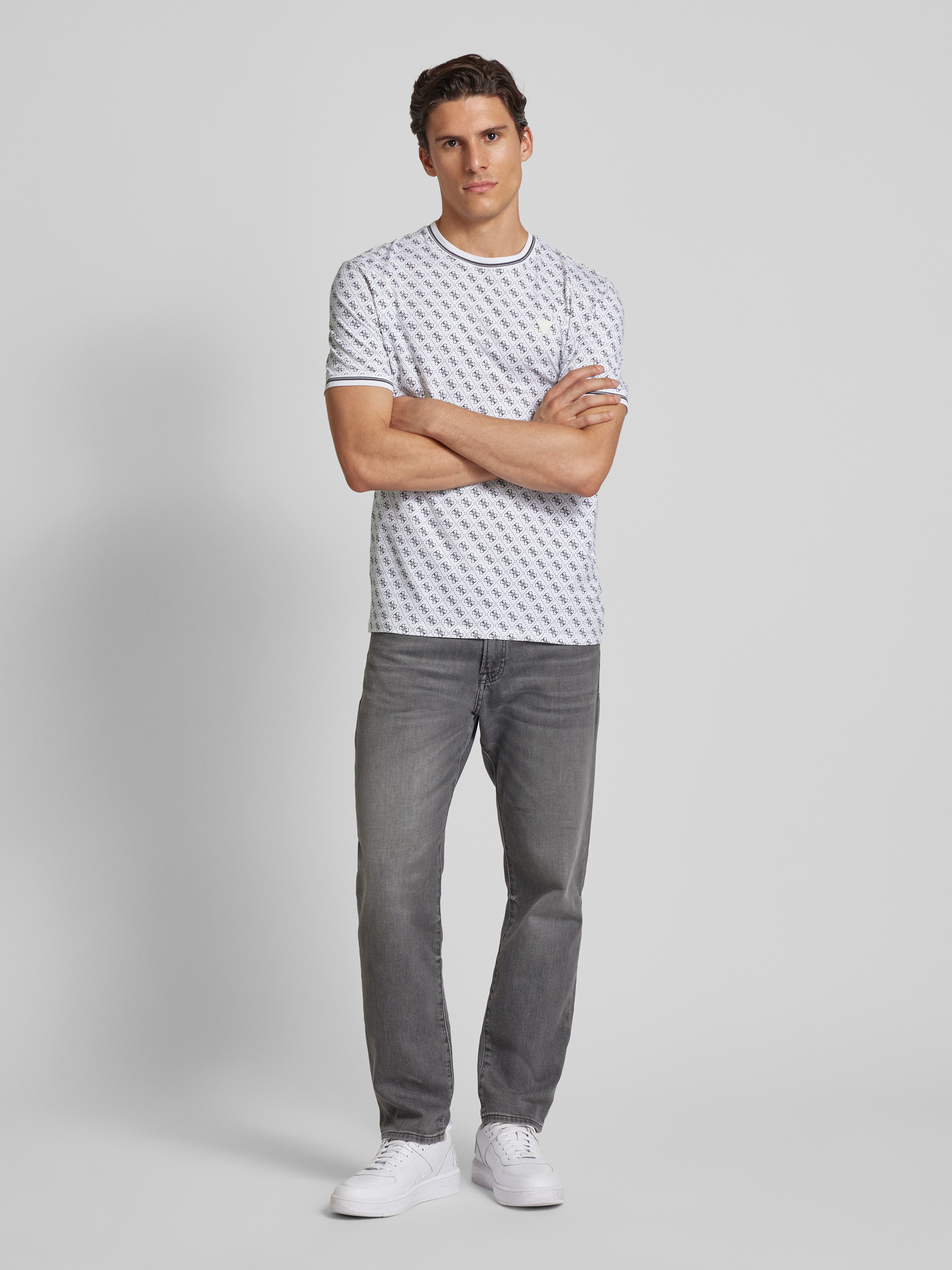 Das Herren T-Shirt von GUESS Activewear, Modell 'MARSHALL', kombiniert einen Baumwoll-Elasthan-Mix mit Regular Fit für angenehmen Tragekomfort. Durch den Rundhalsausschnitt und elastische Ärmelabschlüsse eignet es sich ideal für alltägliche Aktivitäten. Der Mix aus Funktionalität und Stil rundet jedes Outfit ab.