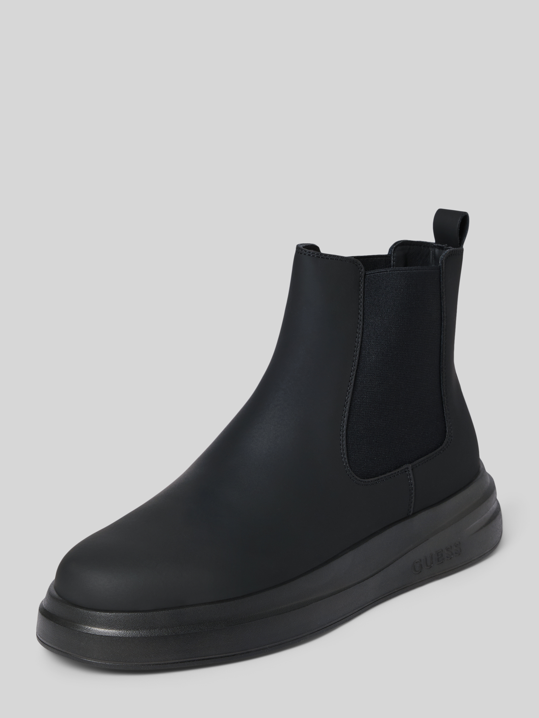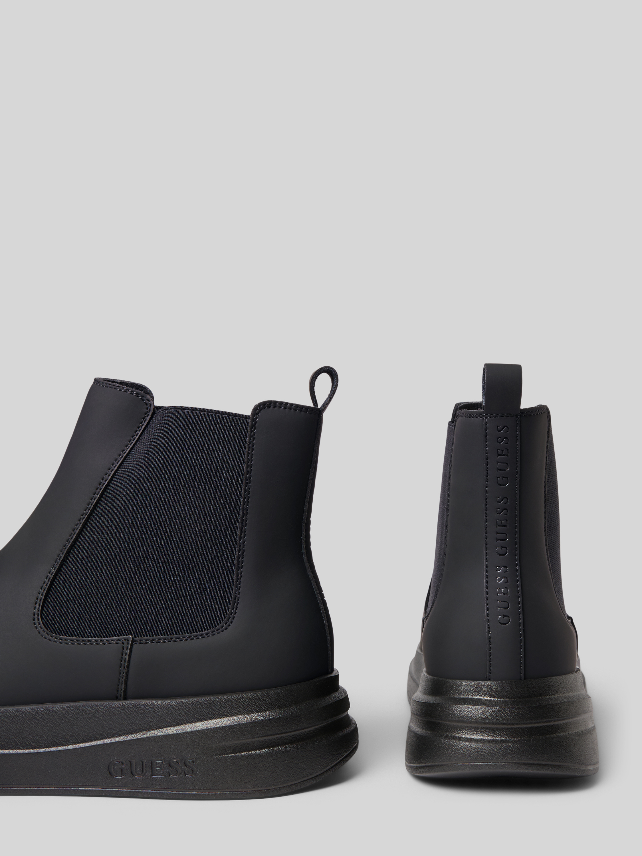 Die Herren Boots von Guess im Modell 'ELKO' kombinieren einen Leder-Textil-Mix mit abgerundeter Spitze und Schlupfform, wodurch ein angenehmes Tragegefühl entsteht. Dank der elastischen Einsätze passt sich der Schuh flexibel an verschiedene Fußformen an. So eignet sich dieser Schuh für vielfältige Alltagsaktivitäten und unterschiedliche Outfits.