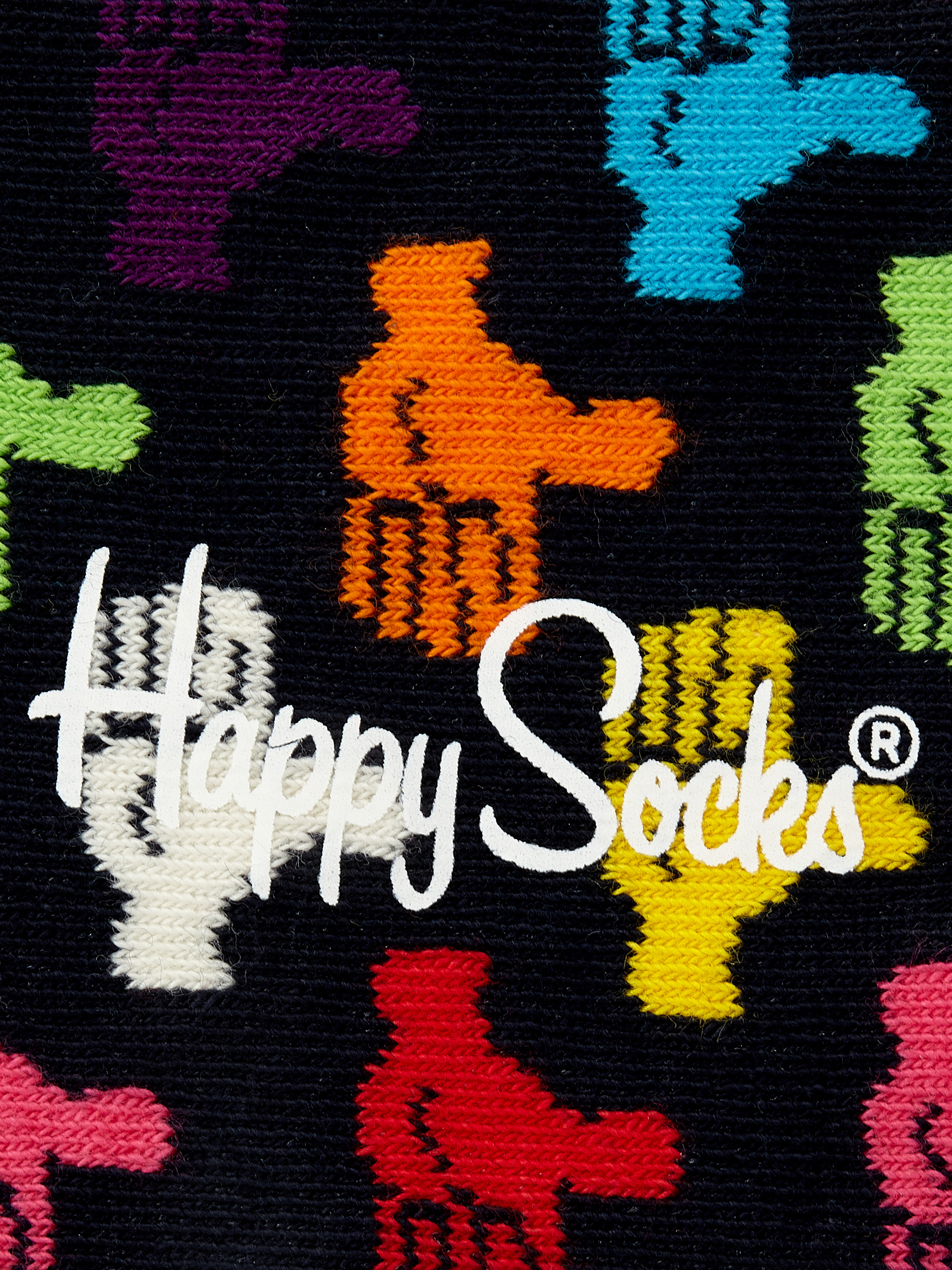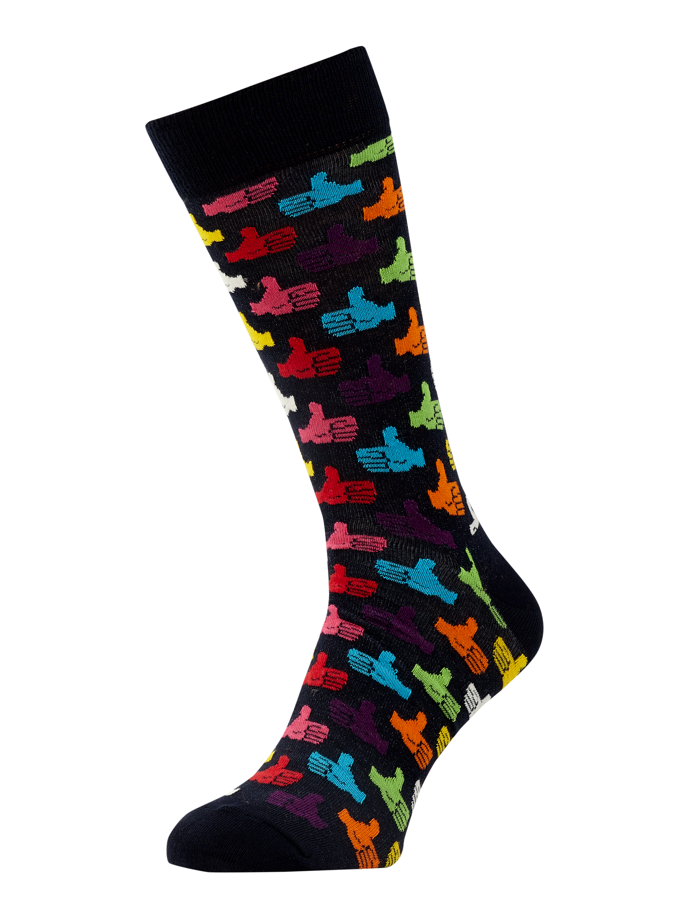 Die Socken mit Allover-Muster von Happy Socks verbinden stilvolle Optik mit hohem Tragekomfort. Gefertigt aus einer weichen Baumwollmischung mit Stretch-Anteil, passen sie sich angenehm dem Fuß an. Das auffällige Muster bringt Farbe in den Alltag, während die Rippenbündchen für sicheren Halt sorgen.