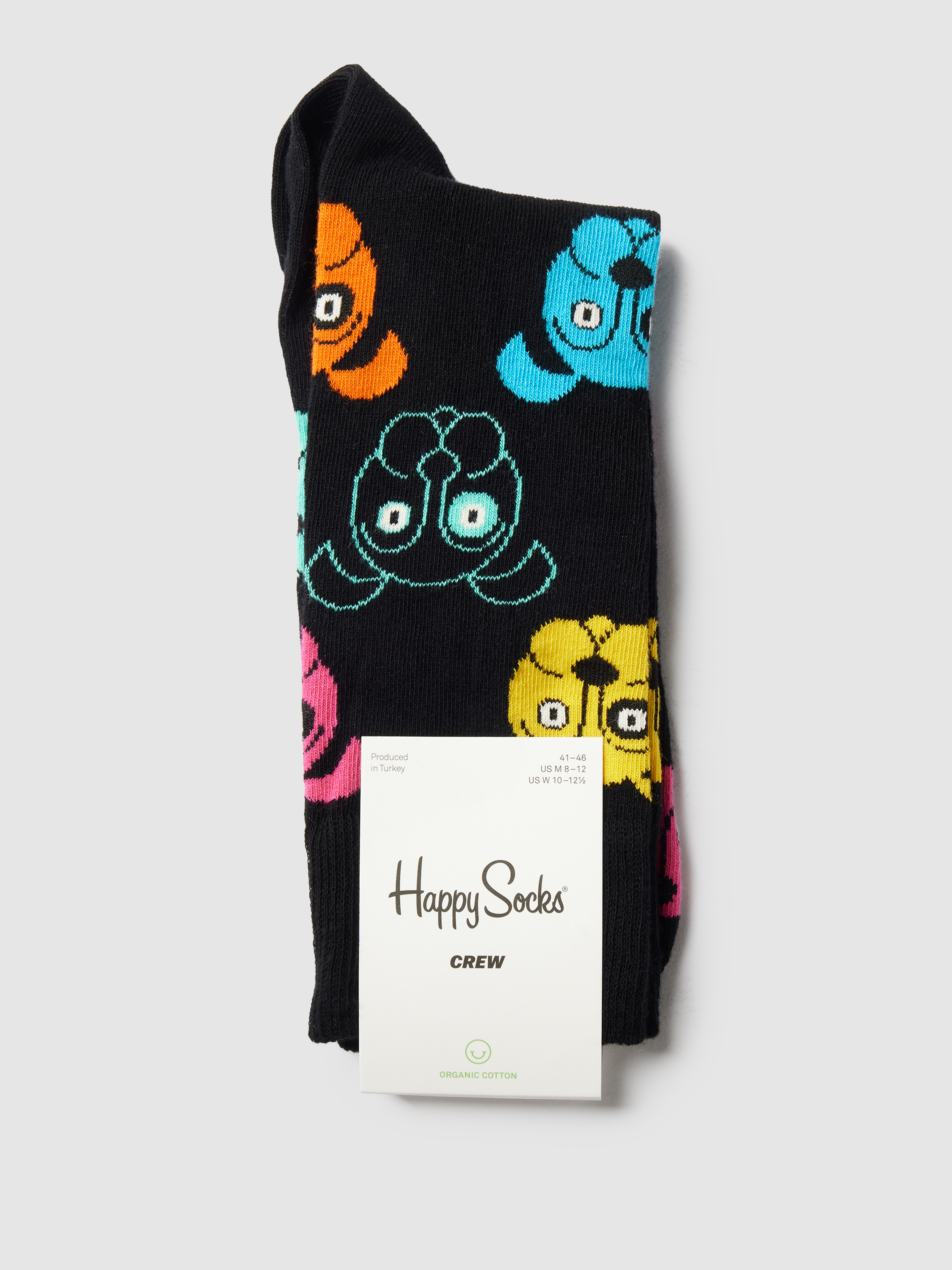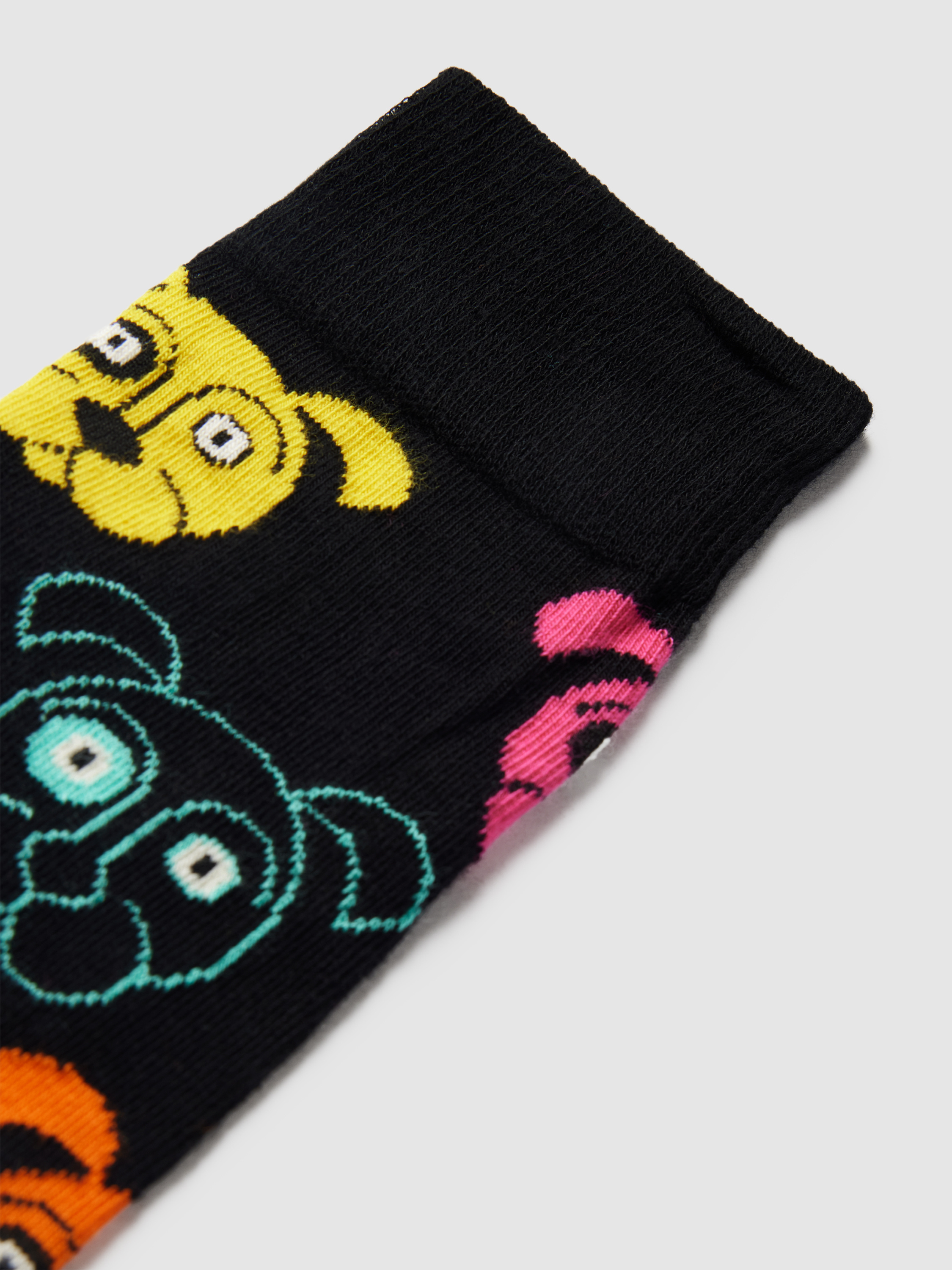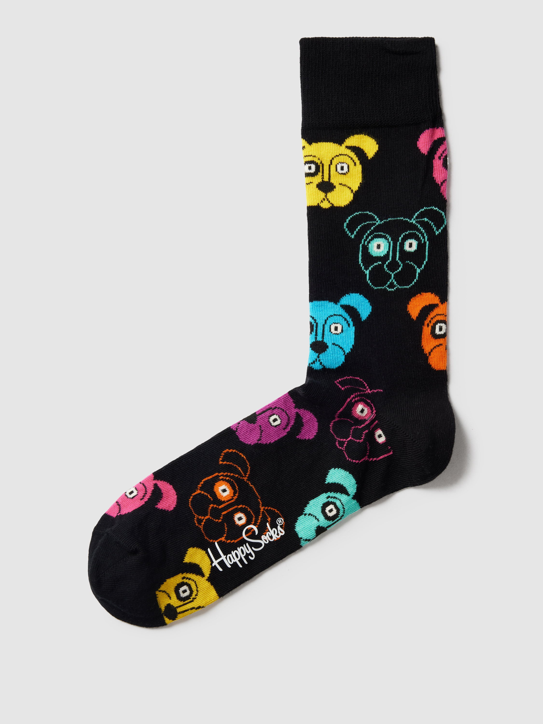 Die Herren Socken von Happy Socks, Modell 'Dog', zeichnen sich durch ihren bequemen Baumwoll-Mix aus, der dank des Stretch-Anteils für optimalen Tragekomfort sorgt. Mit ihrem lebendigen Allover-Muster bringen sie Farbe in den Alltag. Der gerippte Abschluss garantiert einen sicheren Sitz ohne Verrutschen.