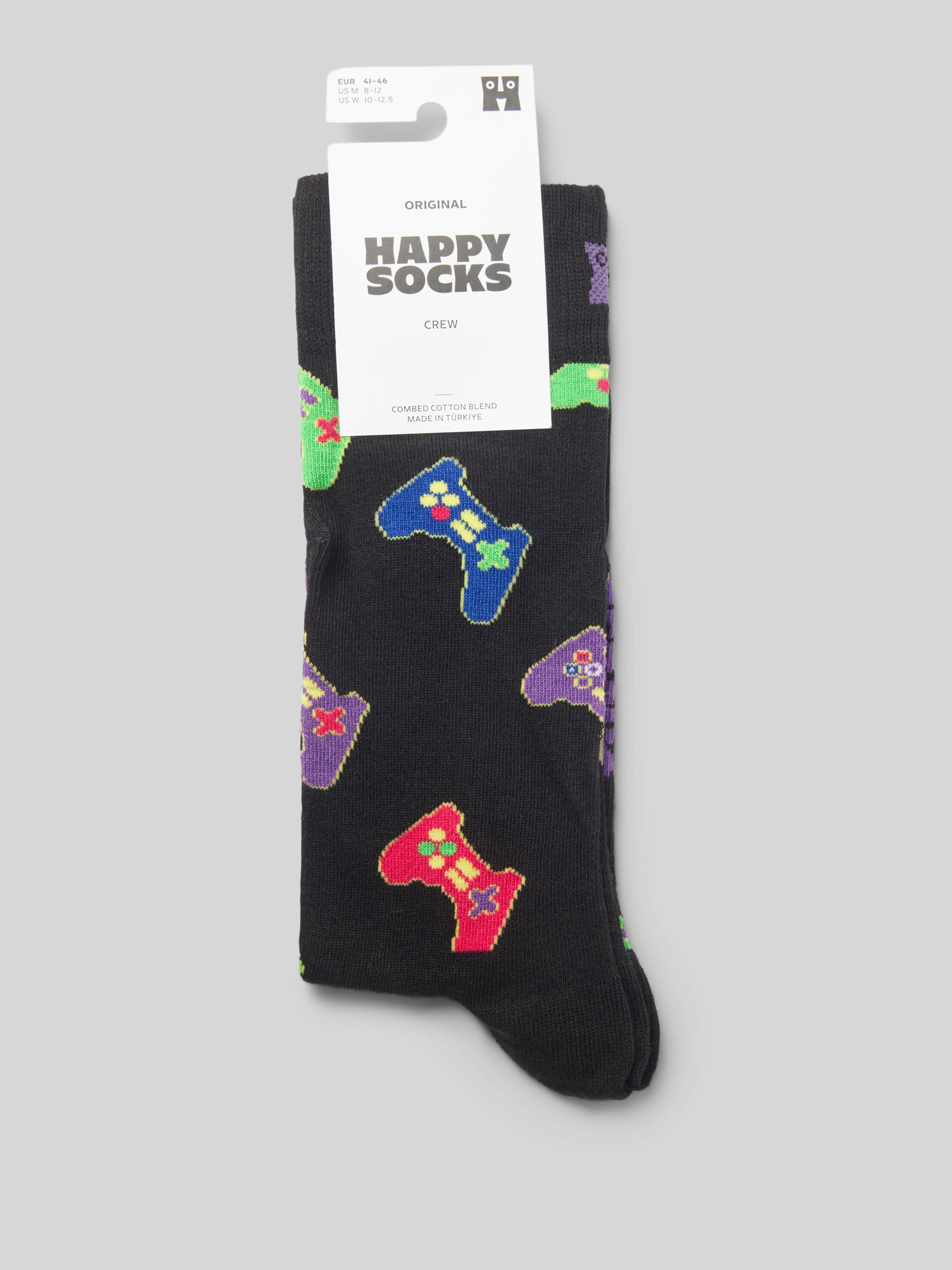 Die Socken von Happy Socks vereinen Komfort und Stil durch einen Baumwoll-Mix mit Stretch-Anteil. Der körpernahe Schnitt sorgt für eine angenehme Passform, während der gerippte Abschluss Halt bietet. Der auffällige Label-Print setzt zudem modische Akzente im Alltag.